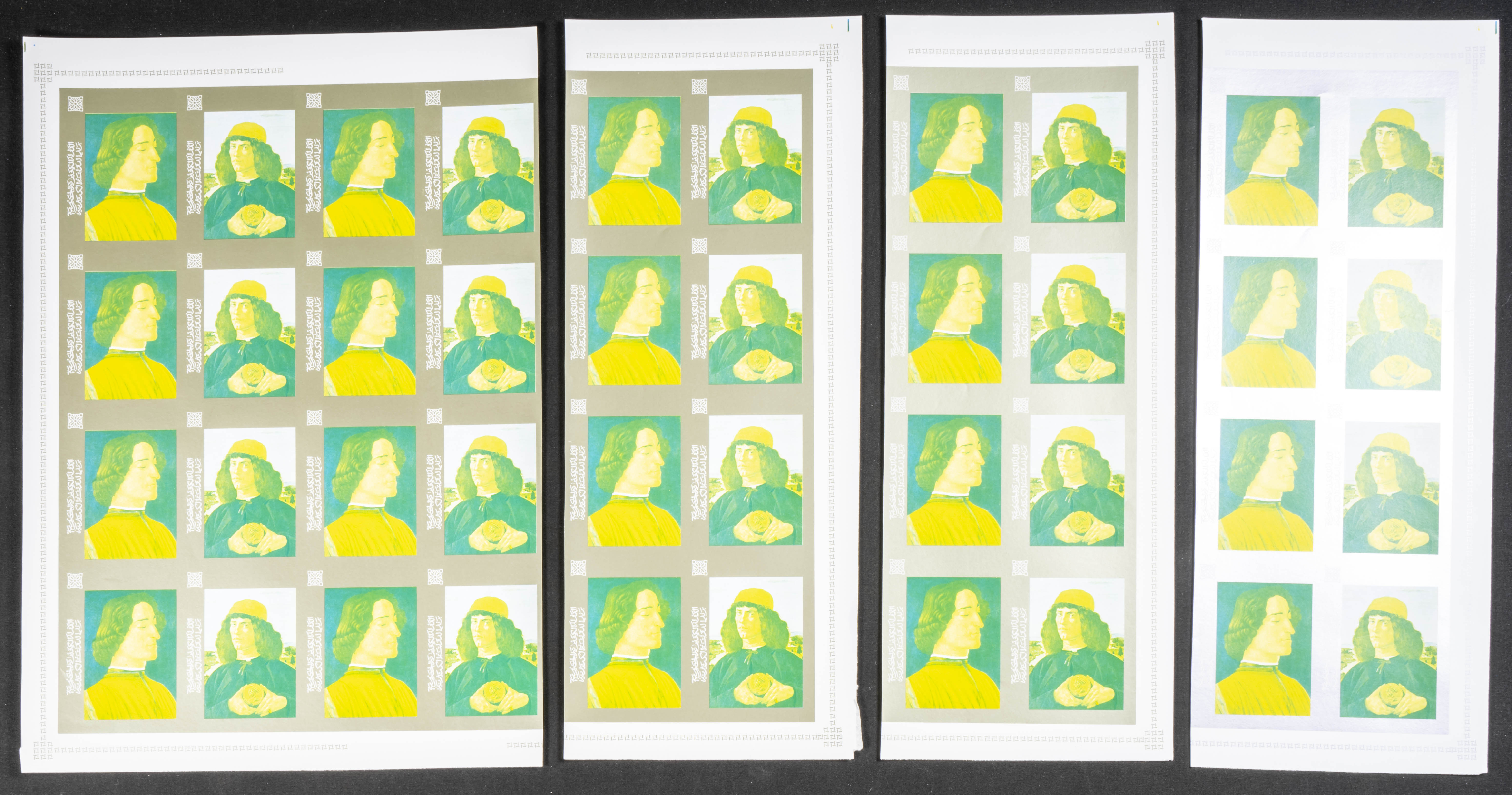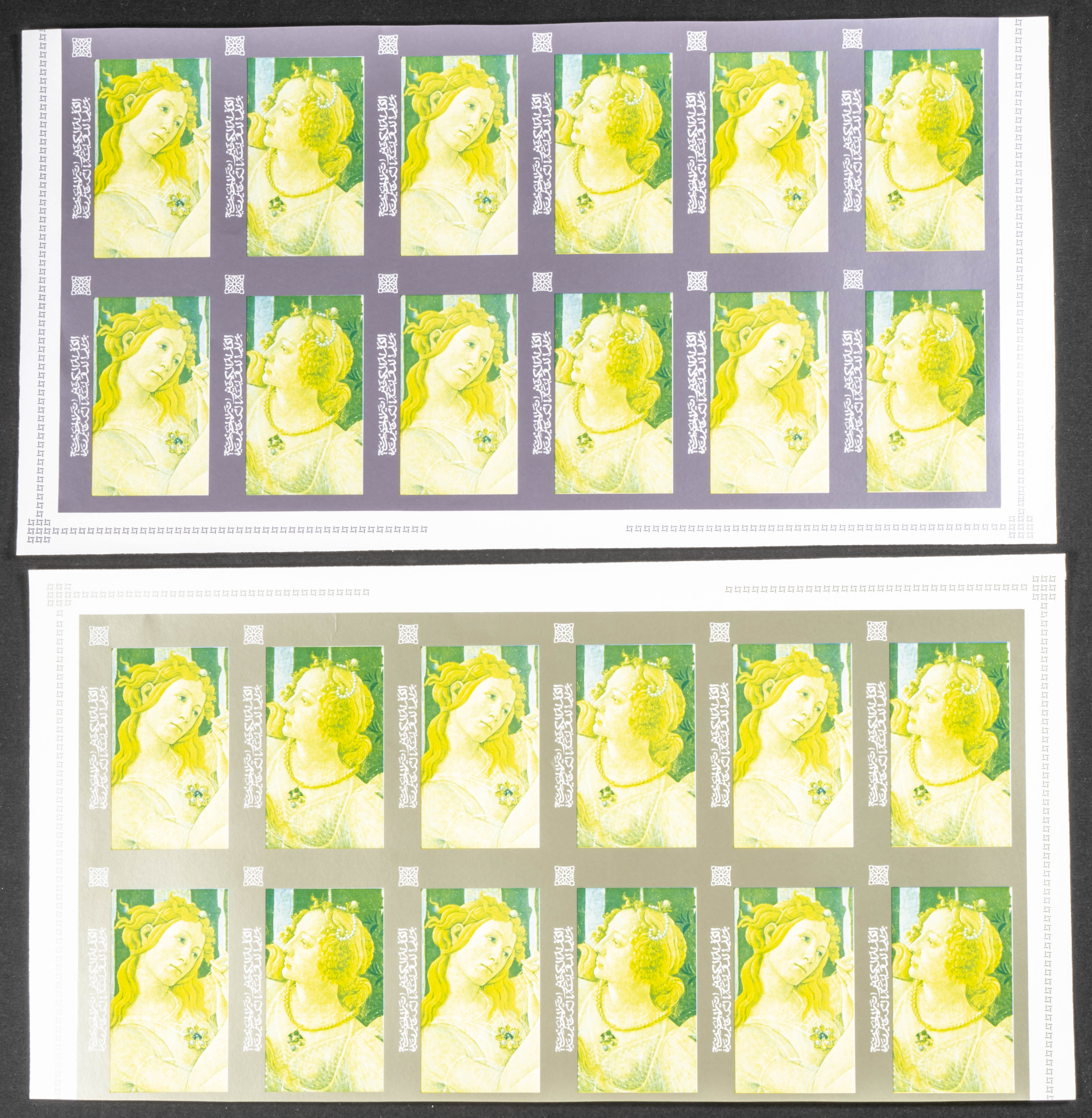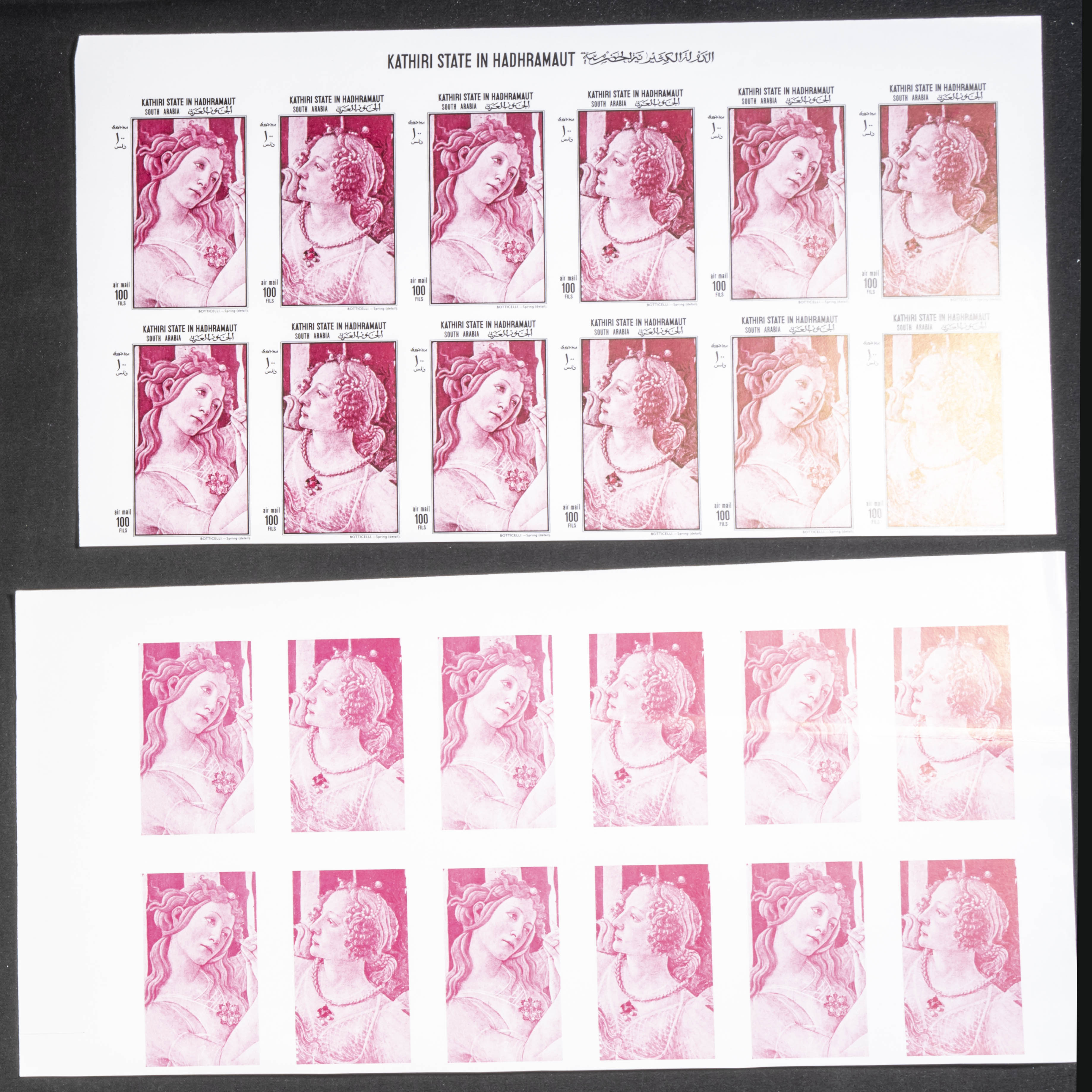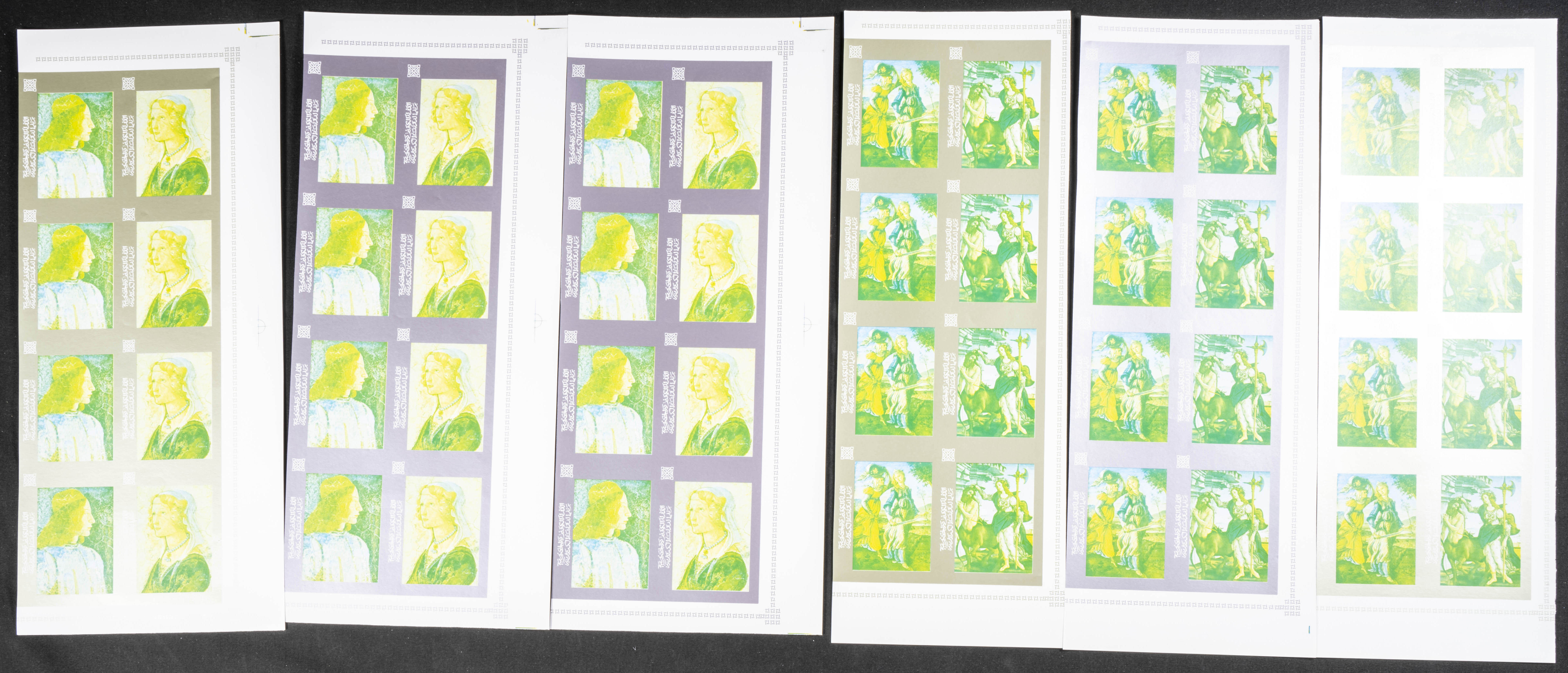 ★★1967. Paintings by Botticelli. Group of progressive plate proofs of the set. (Michel: 184/91). TO EXAM.