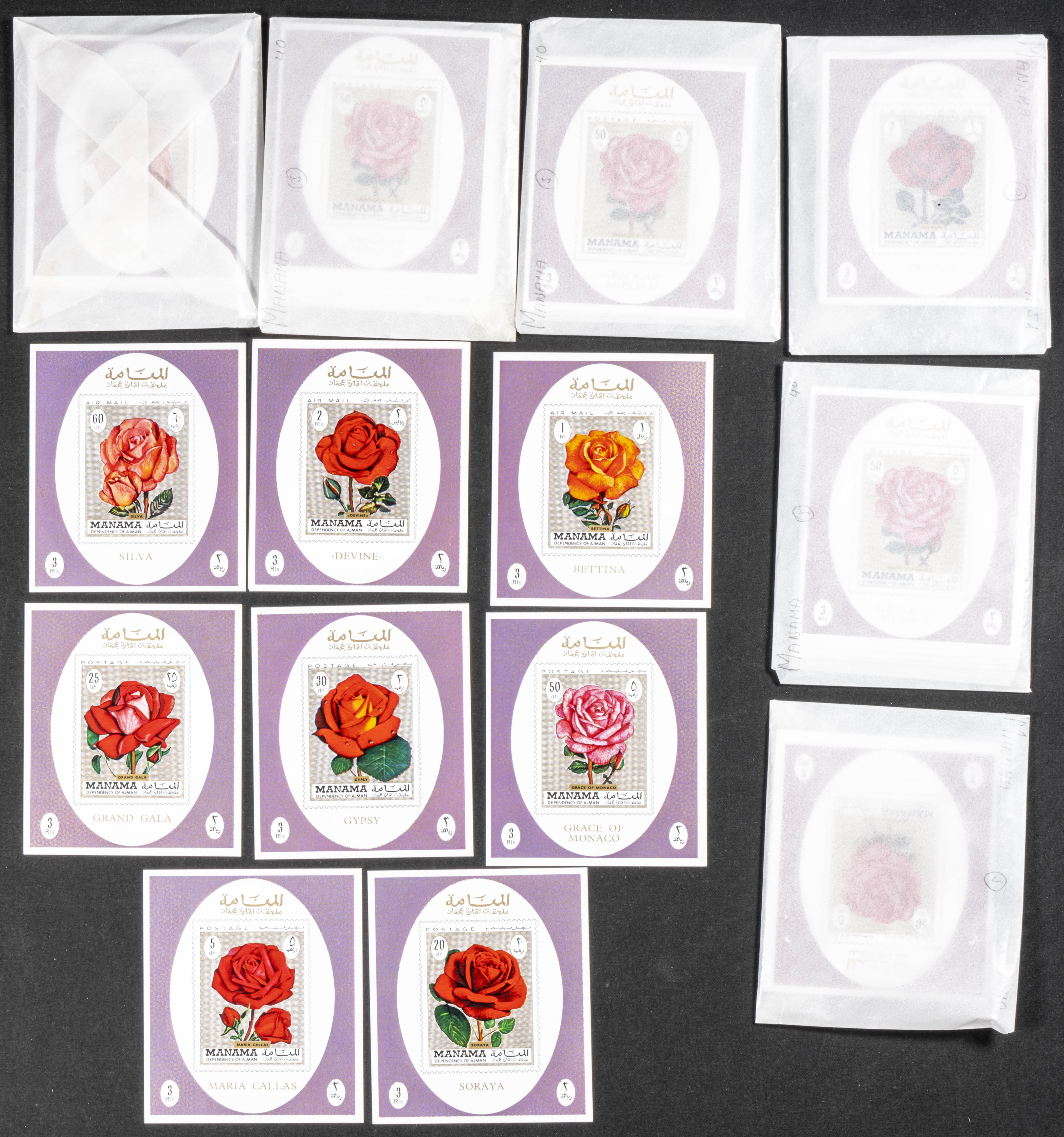 ★★1971. Roses. Group of complete set IMPERFORATED on individual sheets. (Michel: 411A/F). TO EXAM.