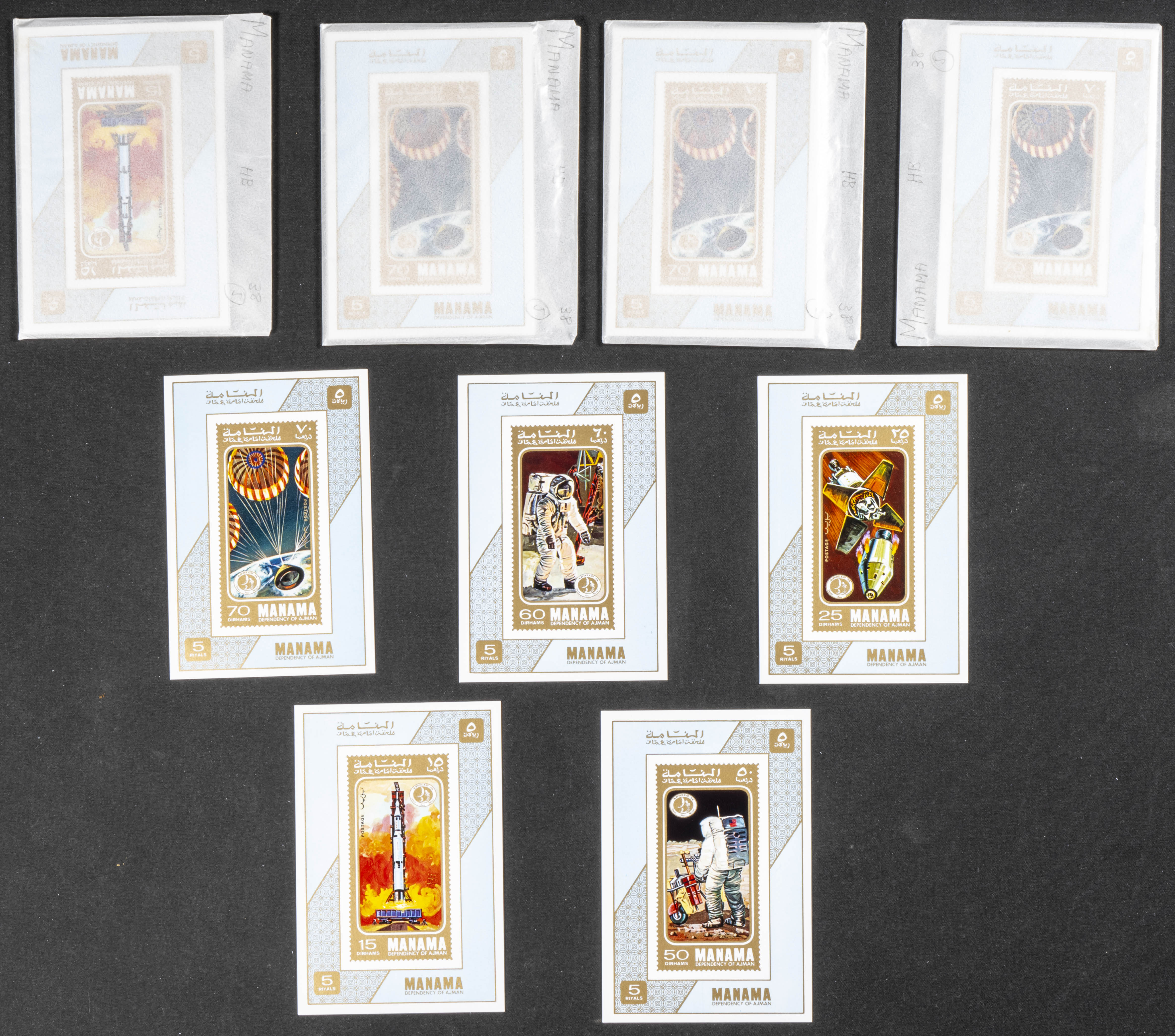 ★★1971. Apollo 14. Group of complete set IMPERFORATED on individual sheets. (Michel: 412/17). TO EXAM.