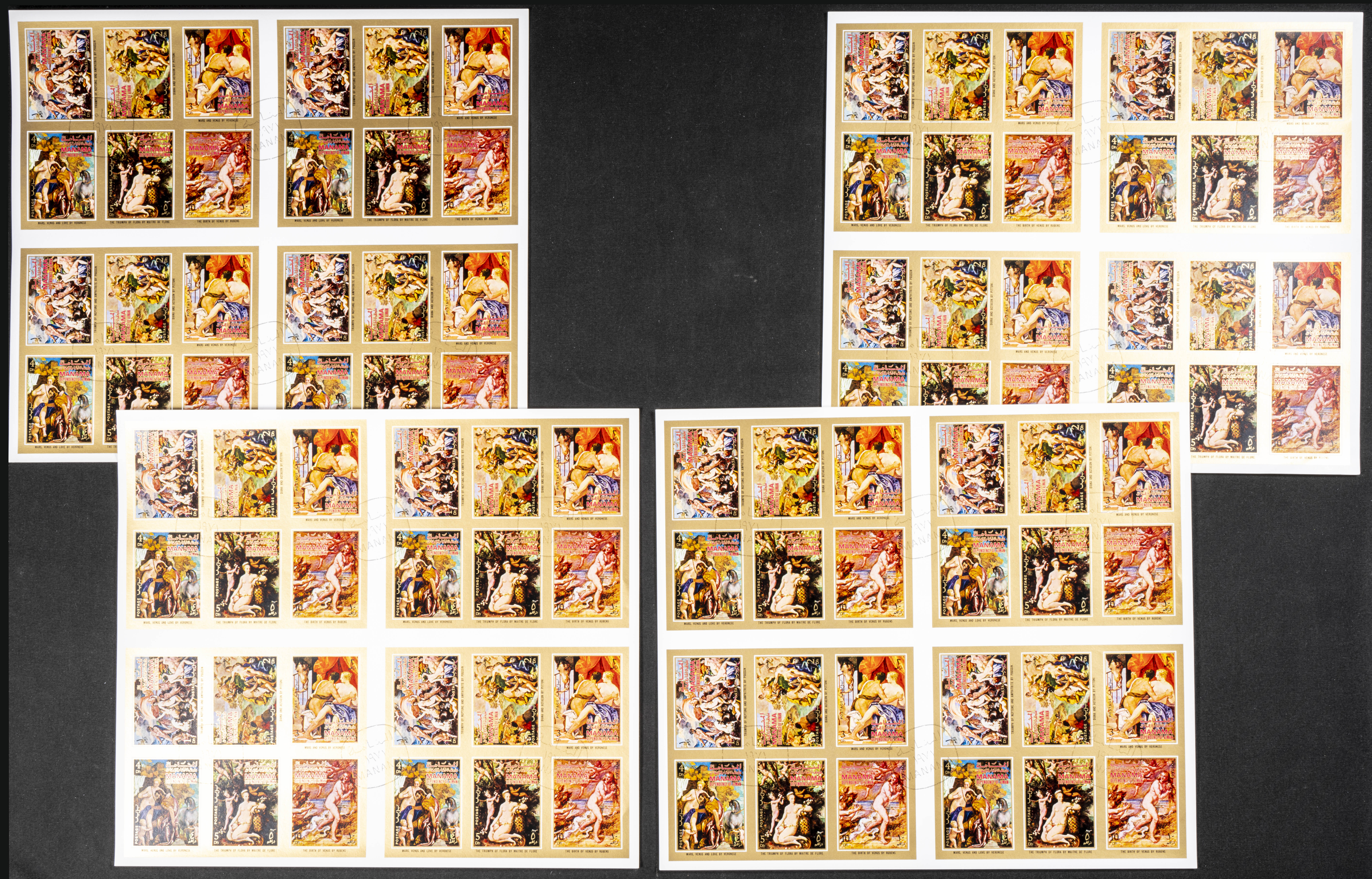 1971. Roman mythology. Group of IMPERFORATED sets. (Michel: 664/71). TO EXAM.