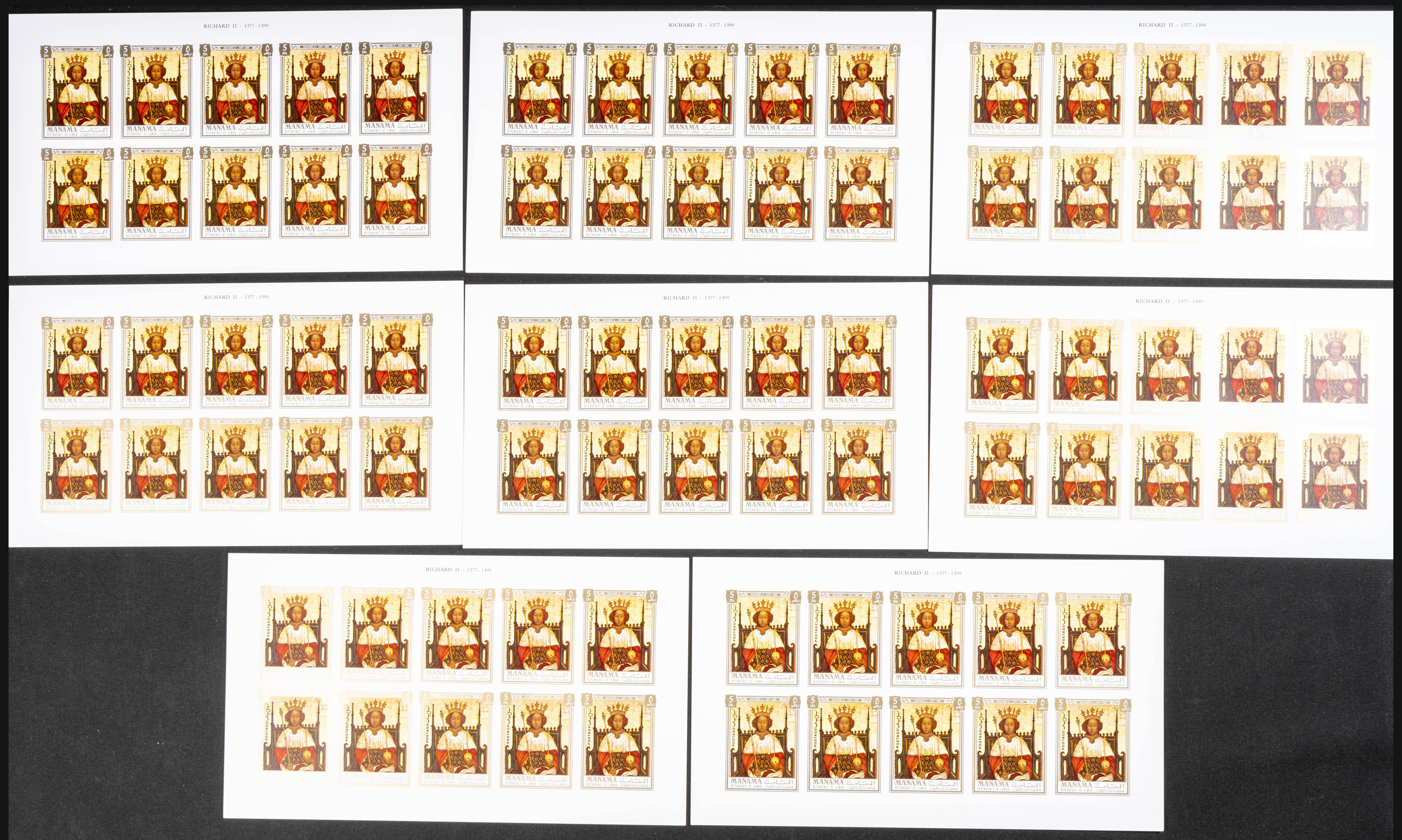 ★★1971. British kings and queens. Group of IMPERFORATED sets. (Michel: 734/45). TO EXAM.