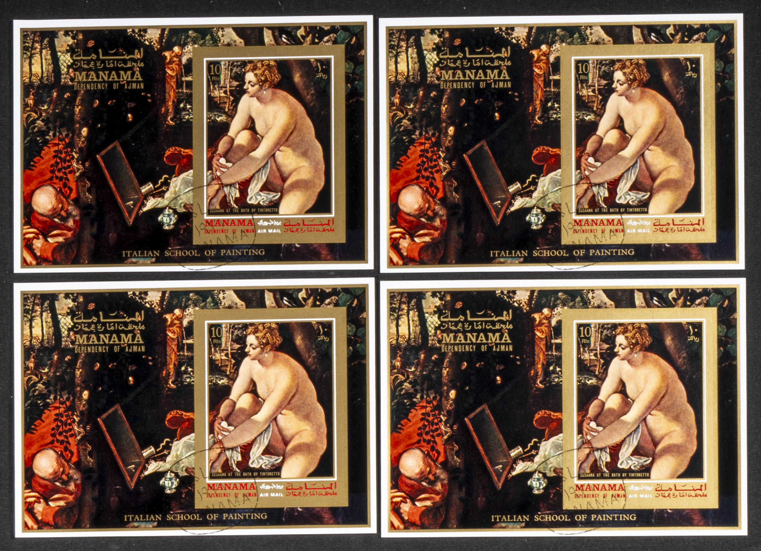 1971. Italian nude paintings. Group of IMPERFORATED sets. (Michel: B132). TO EXAM.