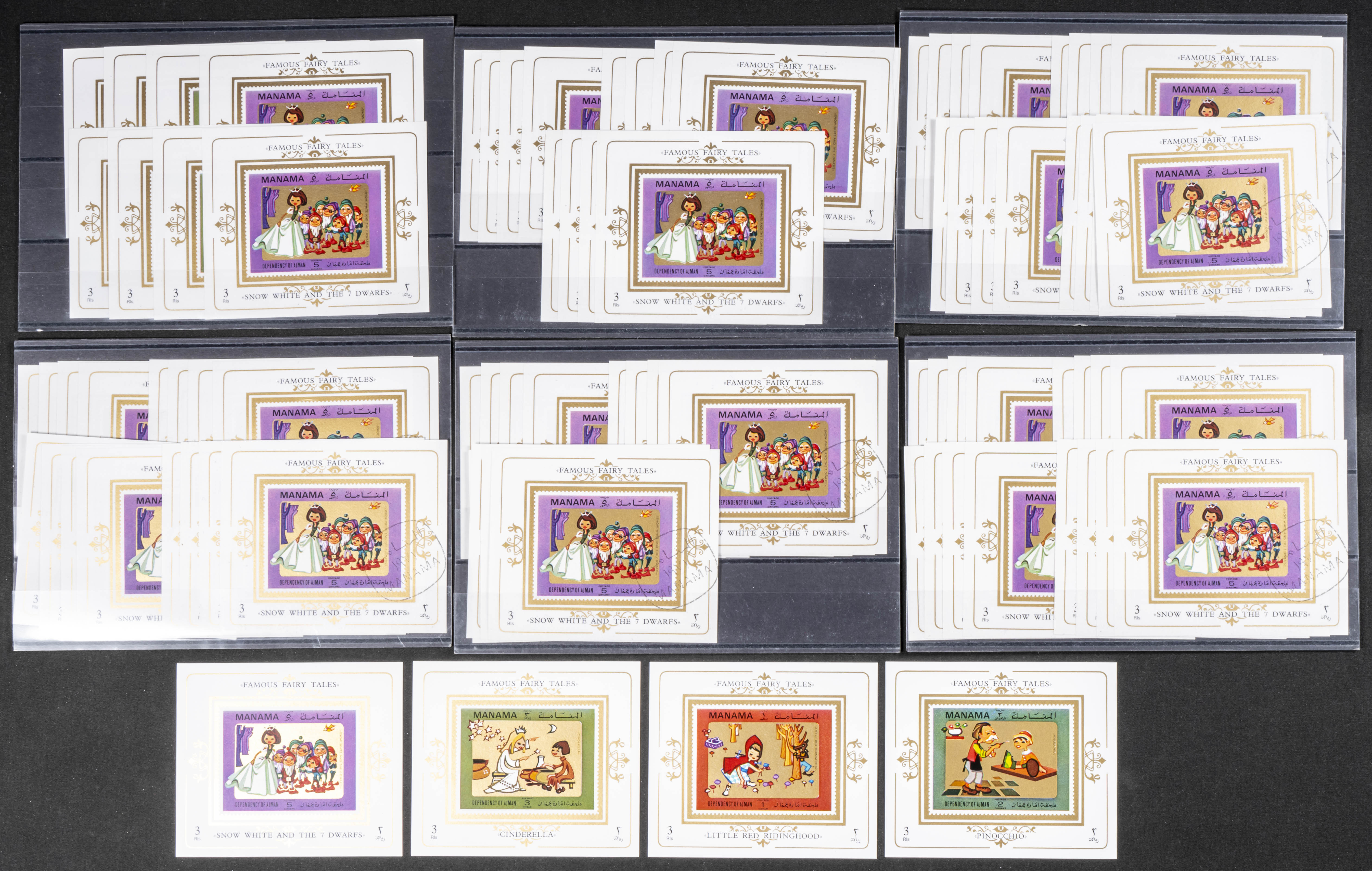 1972. Fairy tales. Group of complete set IMPERFORATED on individual sheets. (Michel: 817/22). TO EXAM.
