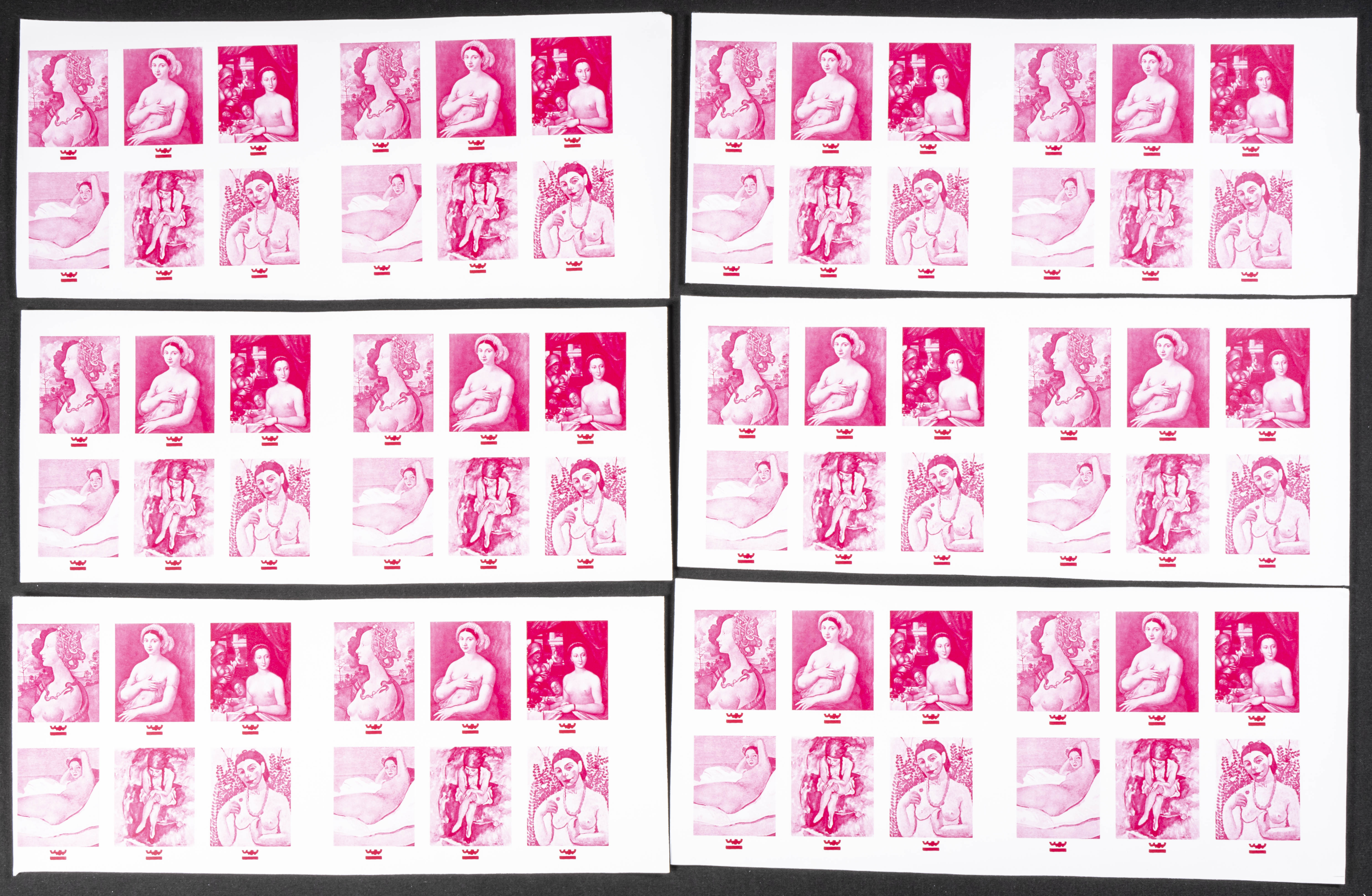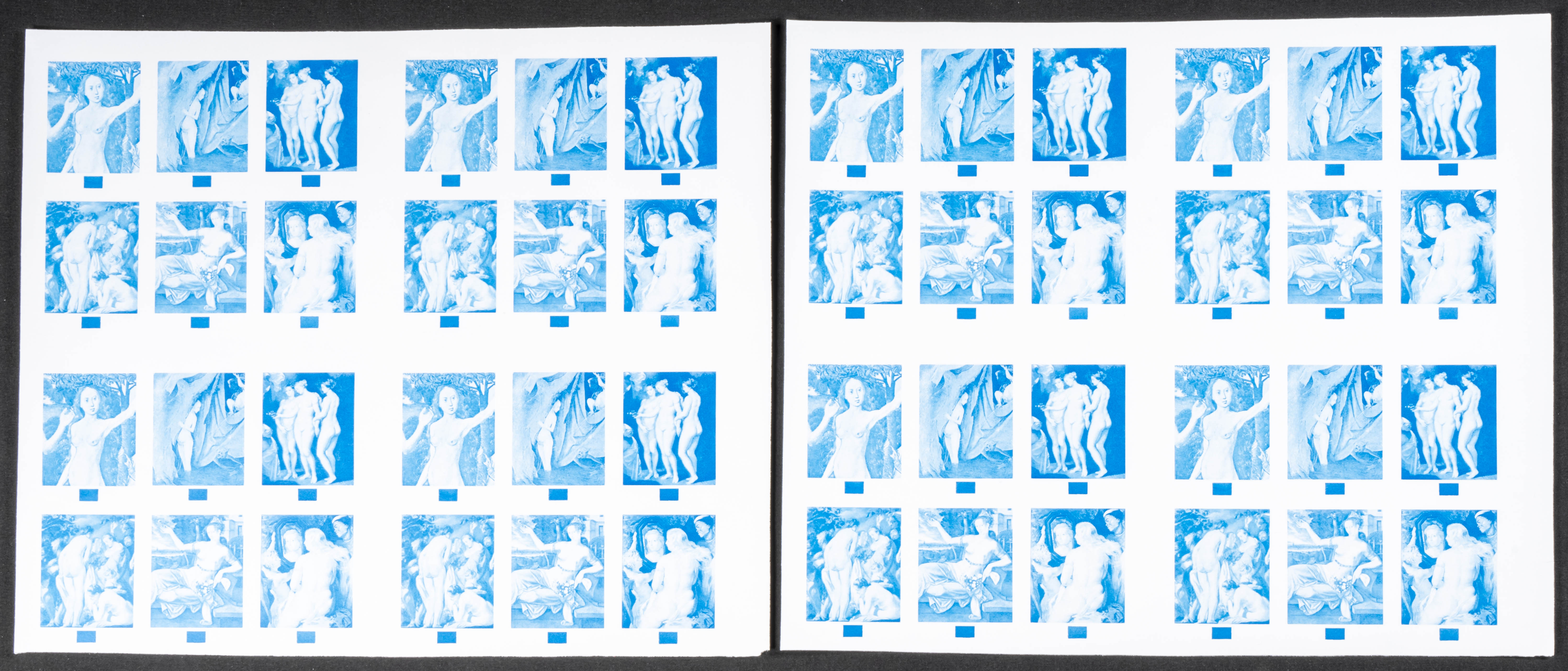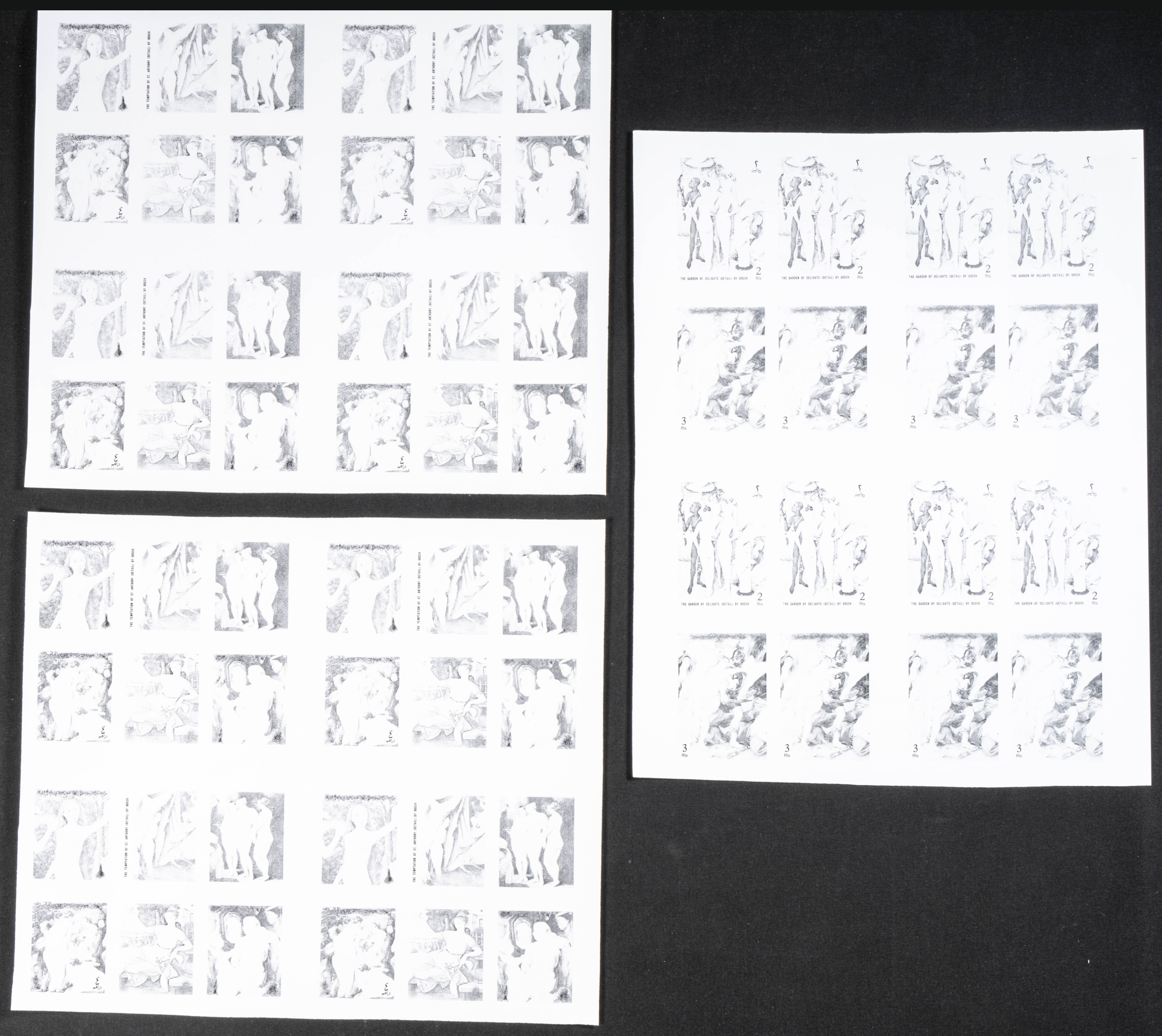 ★★1972. Paintings. Group of progressive plate proofs of the set, of mini sheets. (Michel: 852/59). TO EXAM.