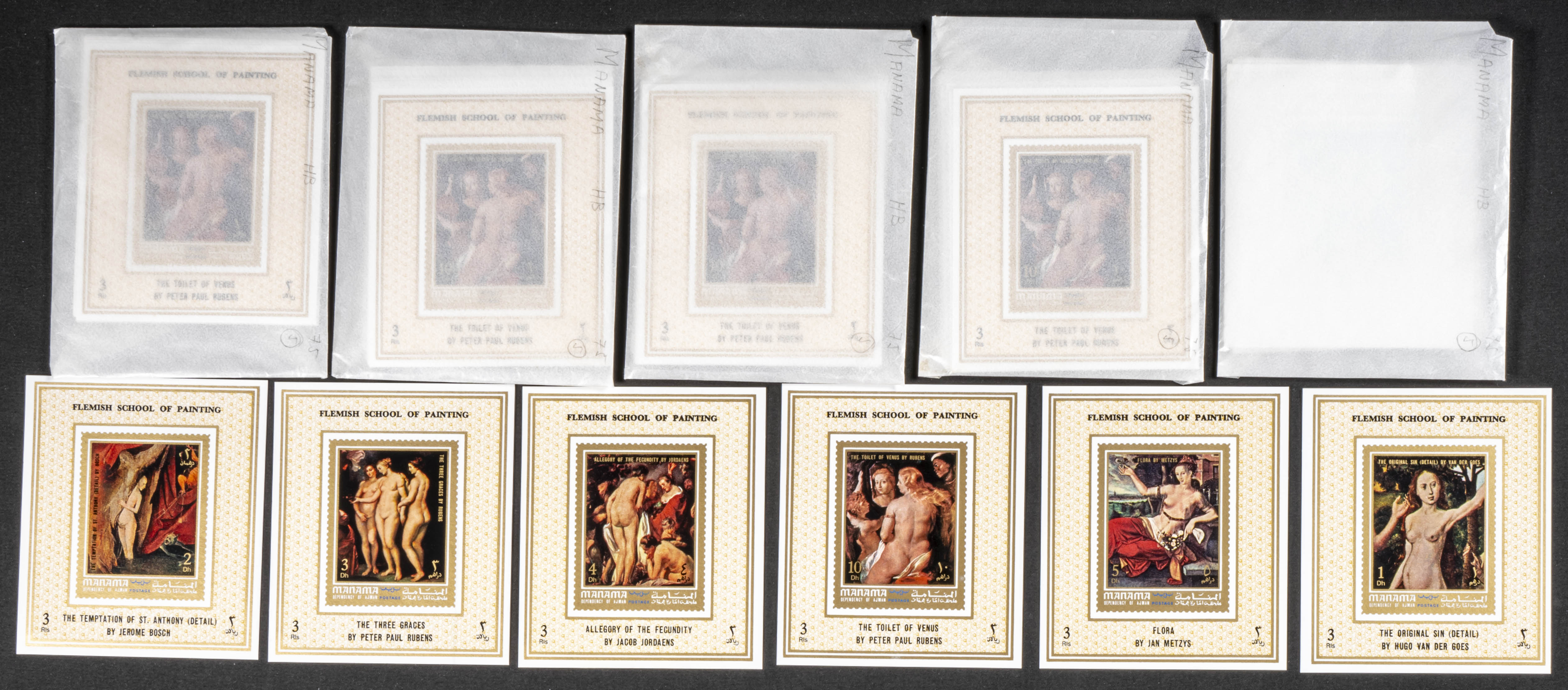 ★★1972. Paintings. Group of complete set IMPERFORATED on individual sheets. (Michel: 868/75). TO EXAM.