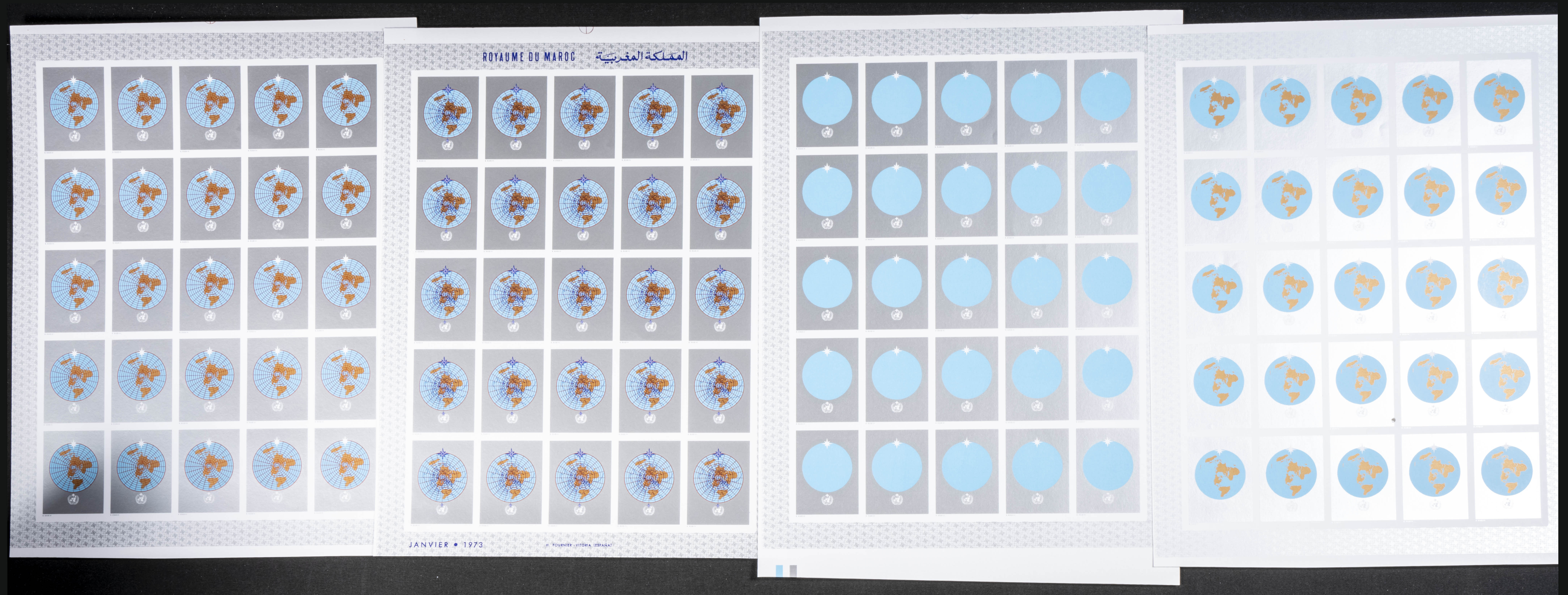 ★★Yvert 654. 1973. Meteorology. Group of progressive plate proofs of the set. TO EXAM.
