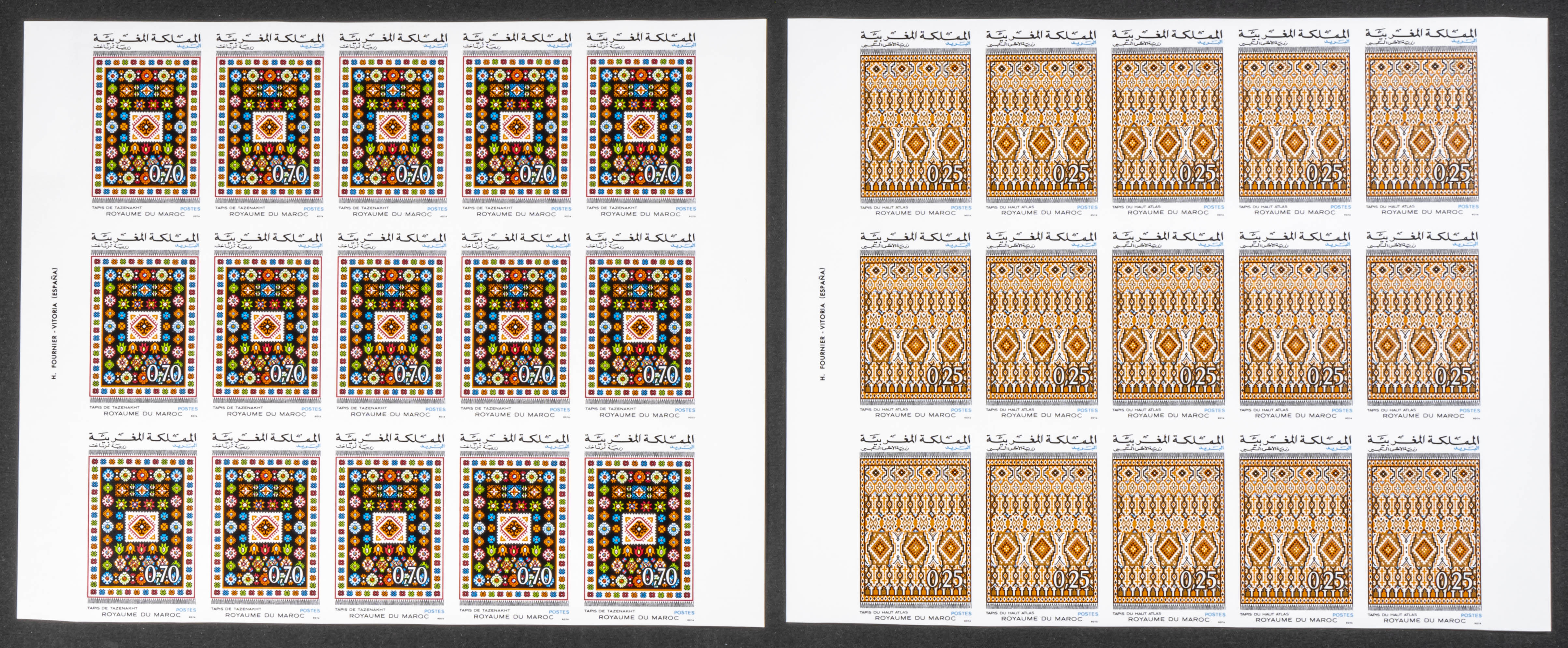 ★★Yvert 692/93. 1973. Carpets. Group of IMPERFORATED sets. TO EXAM.