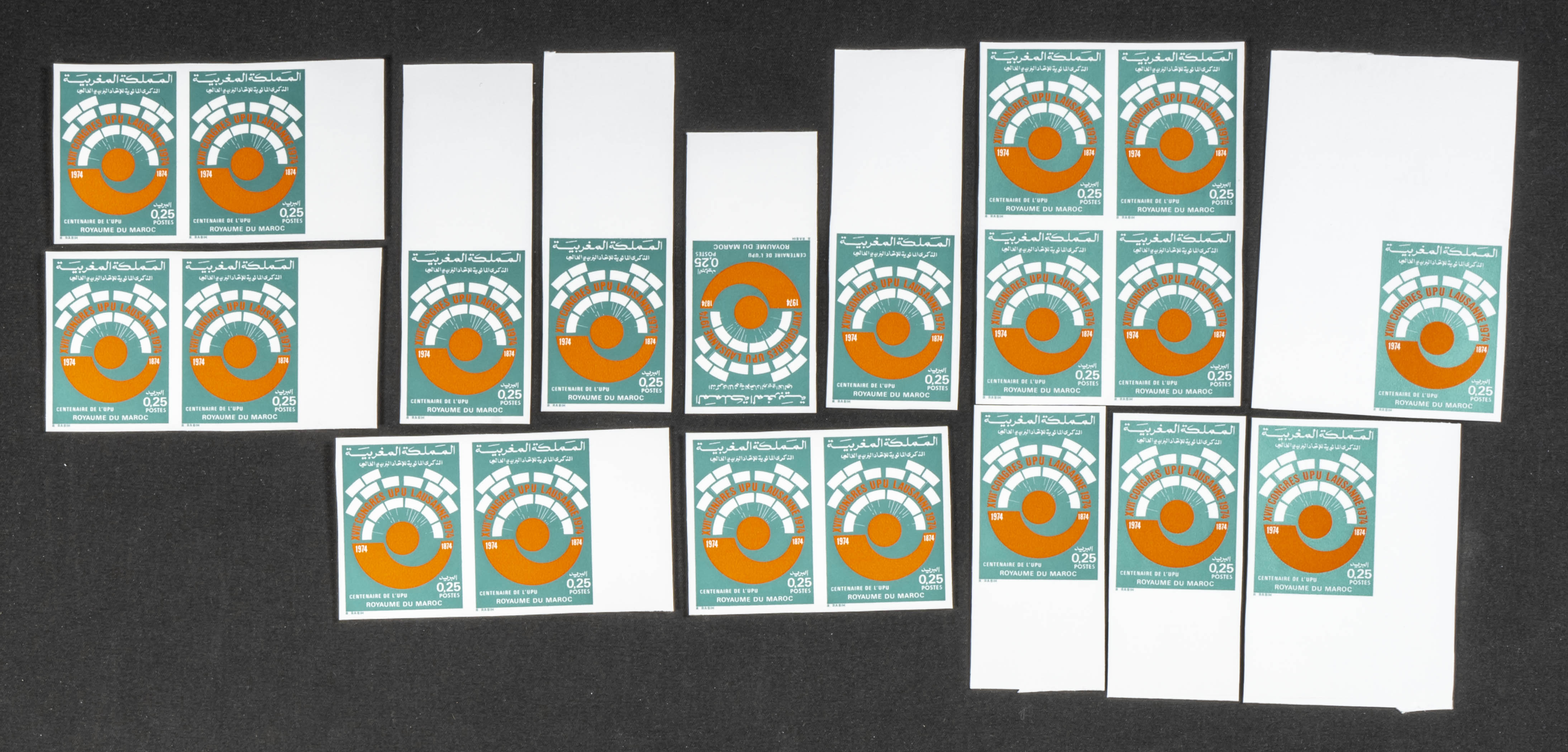 ★★Yvert 701/02. 1974. U.P.U. centenary. Group of IMPERFORATED sets. TO EXAM.