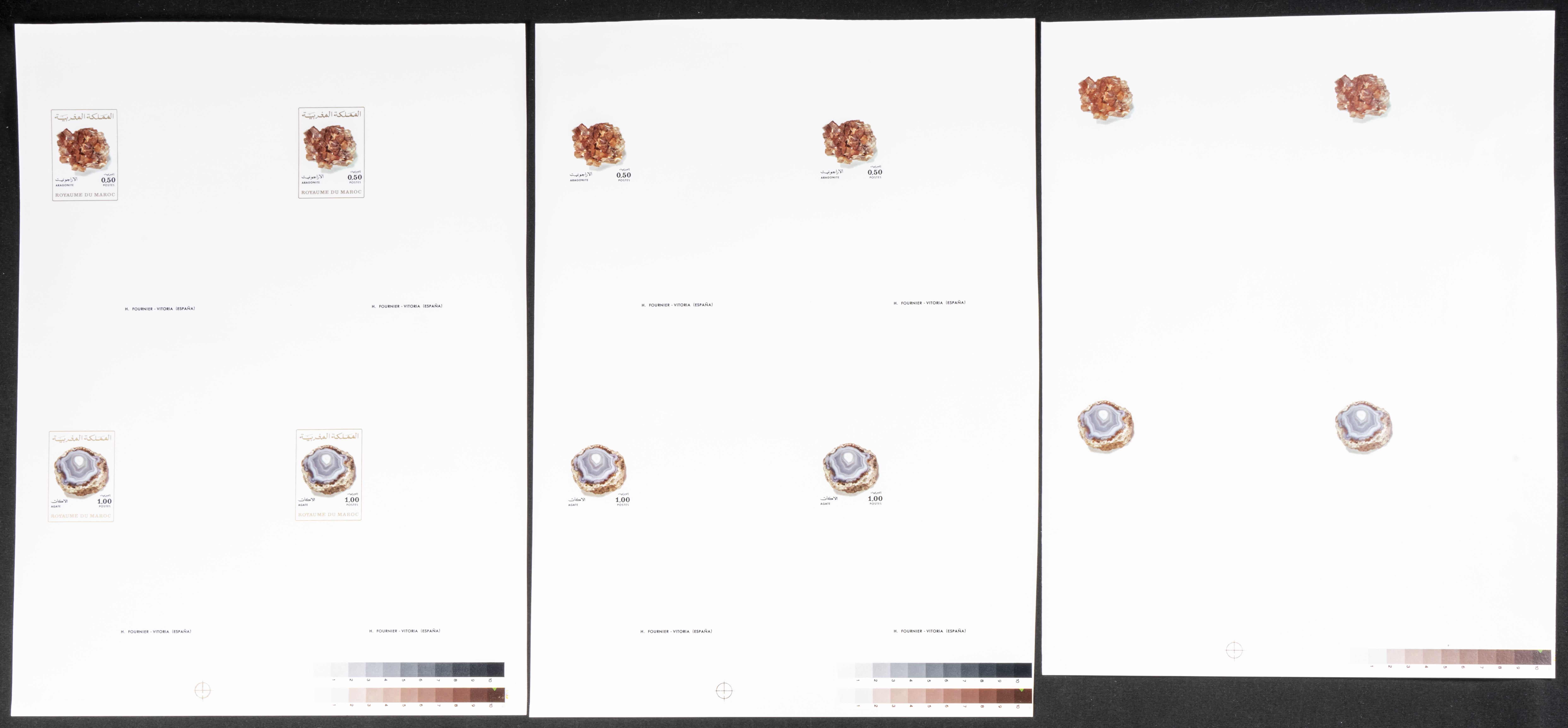 ★★Yvert 721/22. 1975. Minerals. Group of progressive plate proofs of the set. TO EXAM.