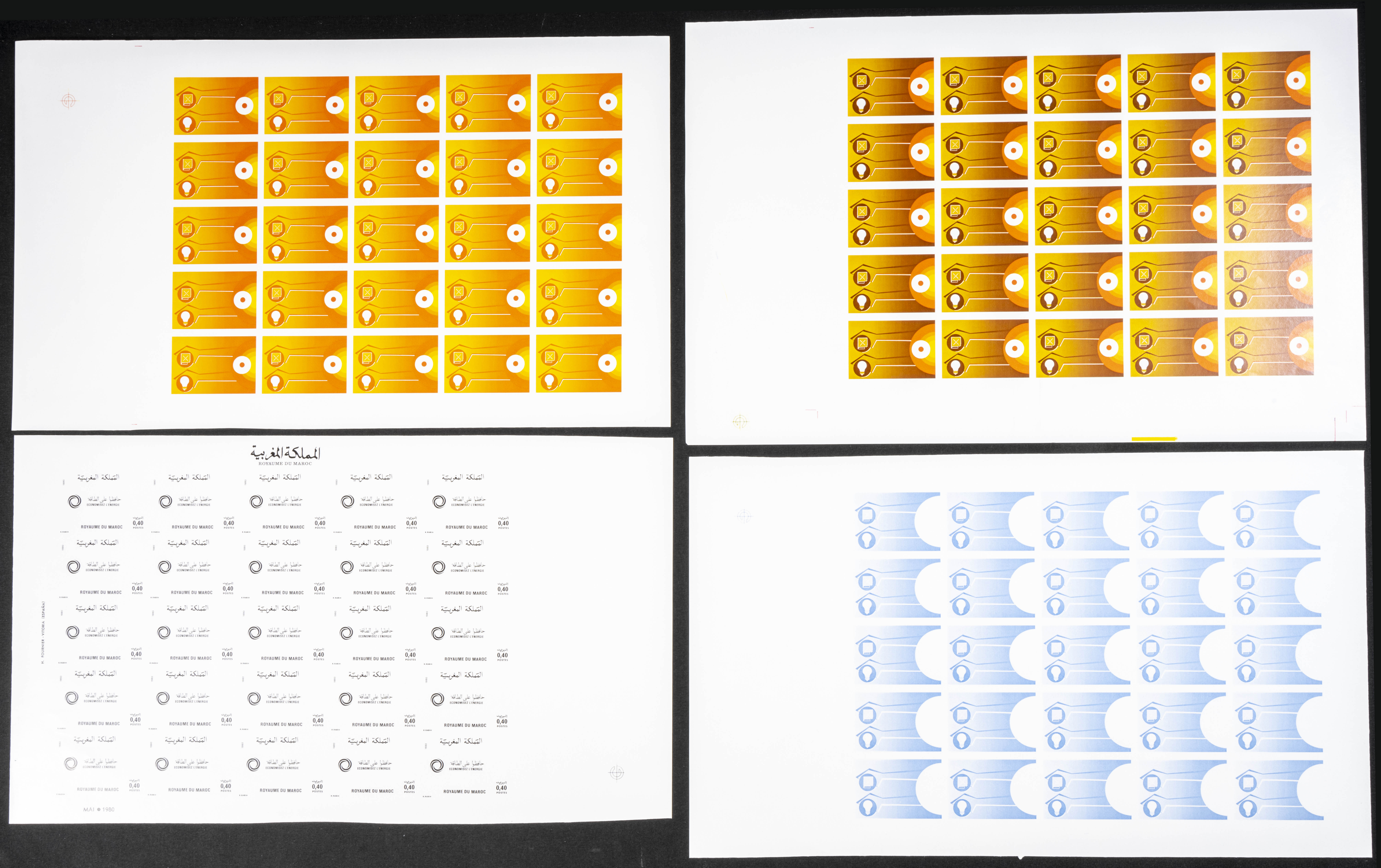 ★★Yvert 861/62. 1980. Energy saving. Group of progressive plate proofs of the set. TO EXAM.
