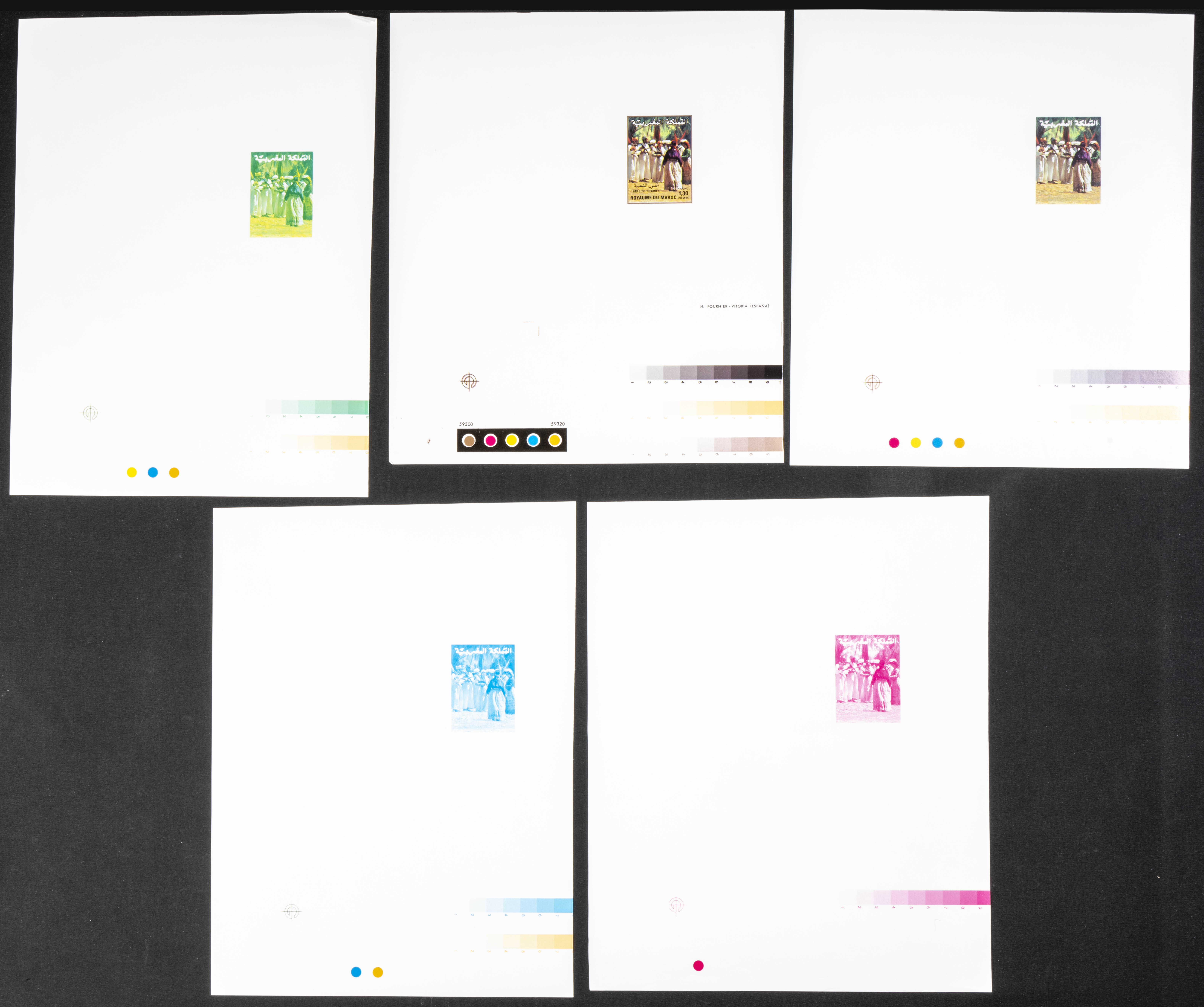 ★★Yvert B889. 1981. Folklore festival. Group of progressive plate proofs of the set. TO EXAM.