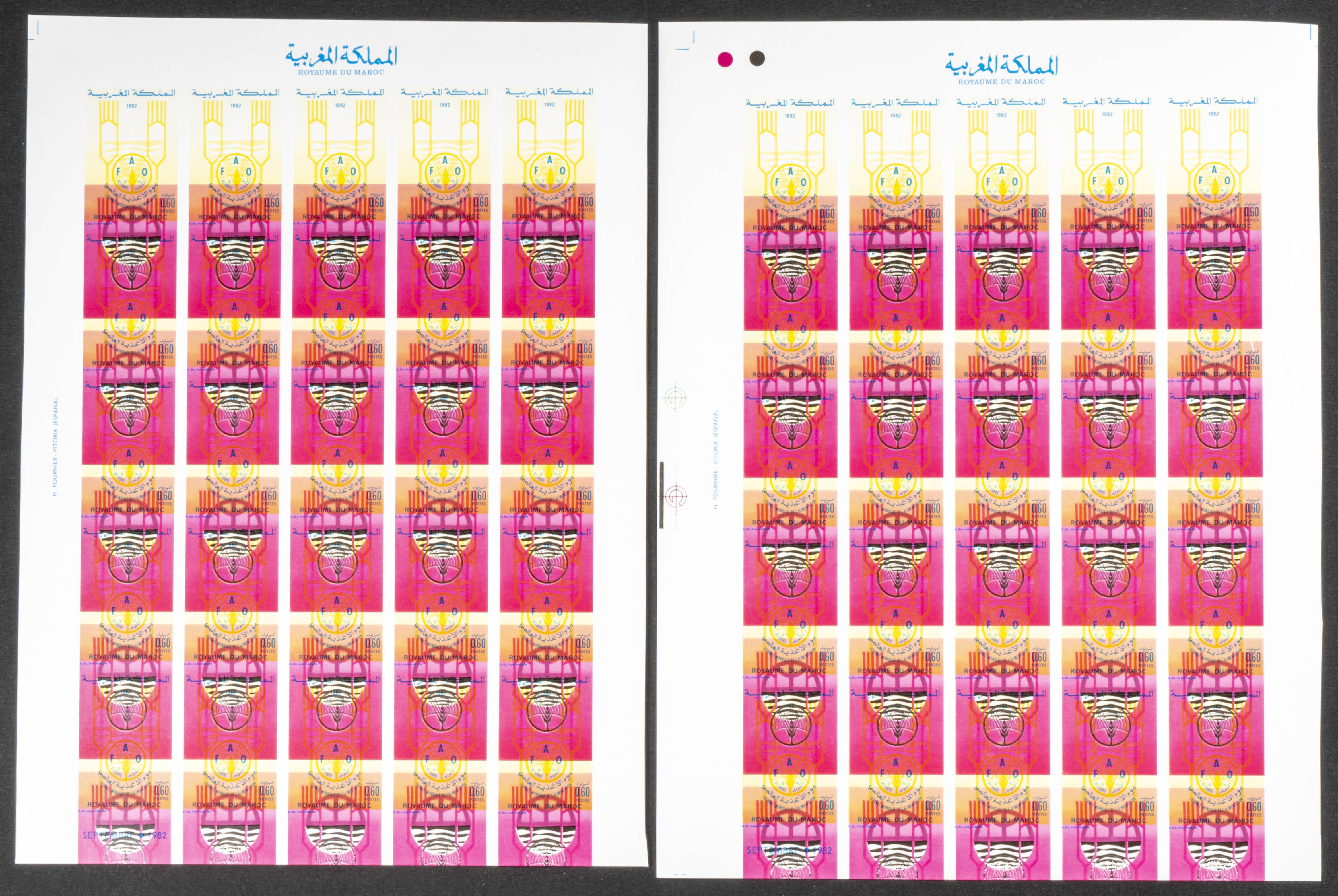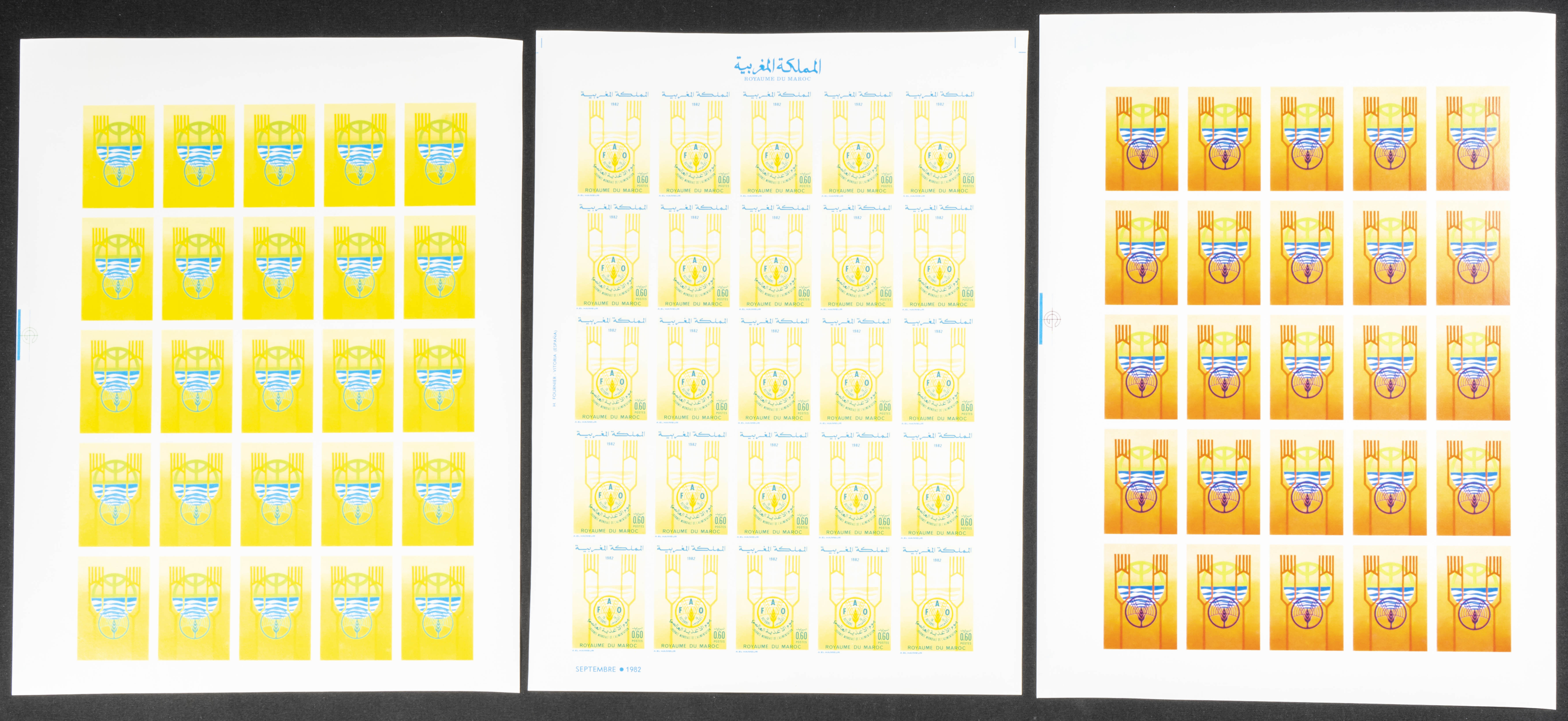 ★★Yvert 930. 1982. World food day. Group of progressive plate proofs of the set. TO EXAM.