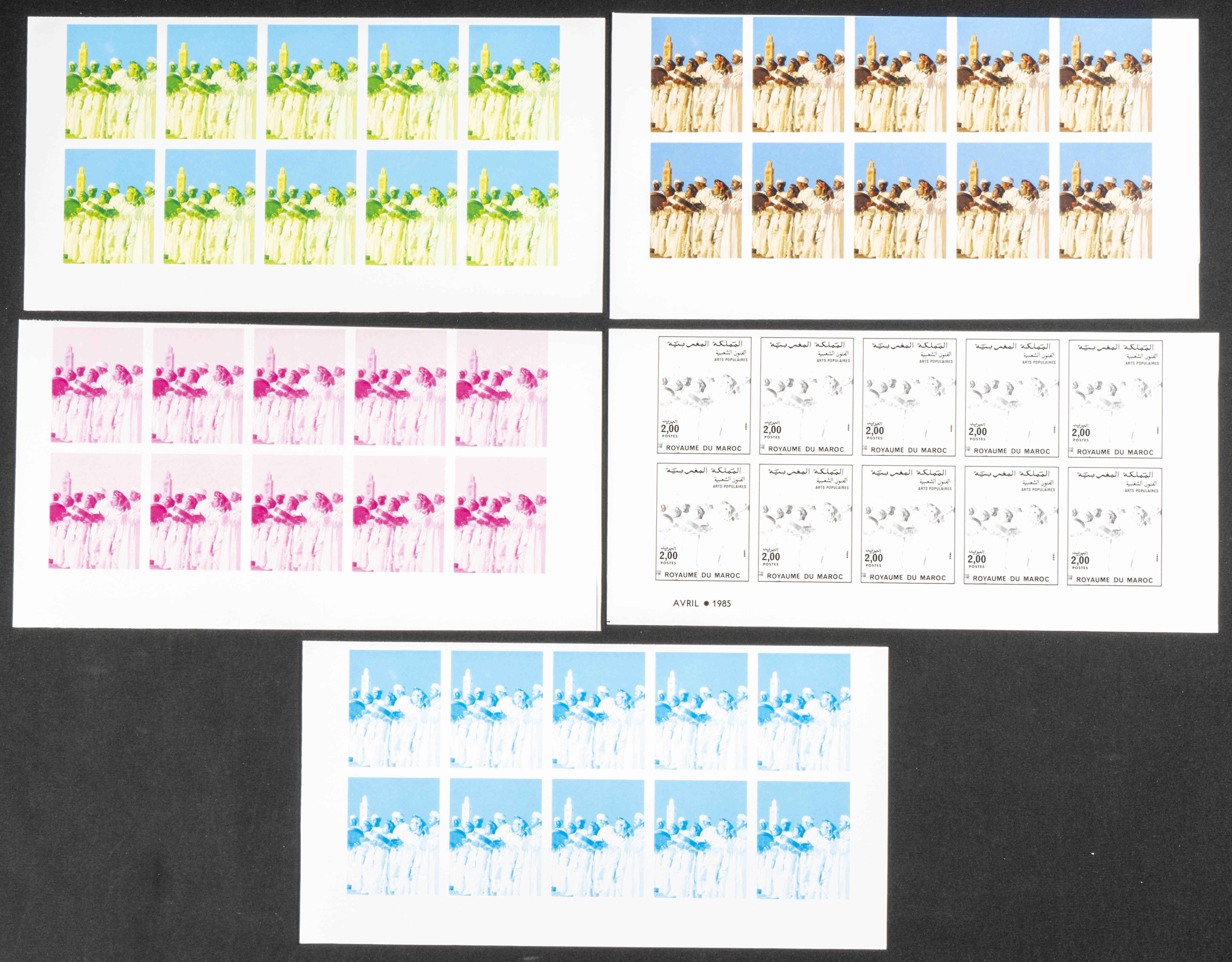 ★★Yvert 986. 1985. National folklore festival. Group of progressive plate proofs of the set. TO EXAM.