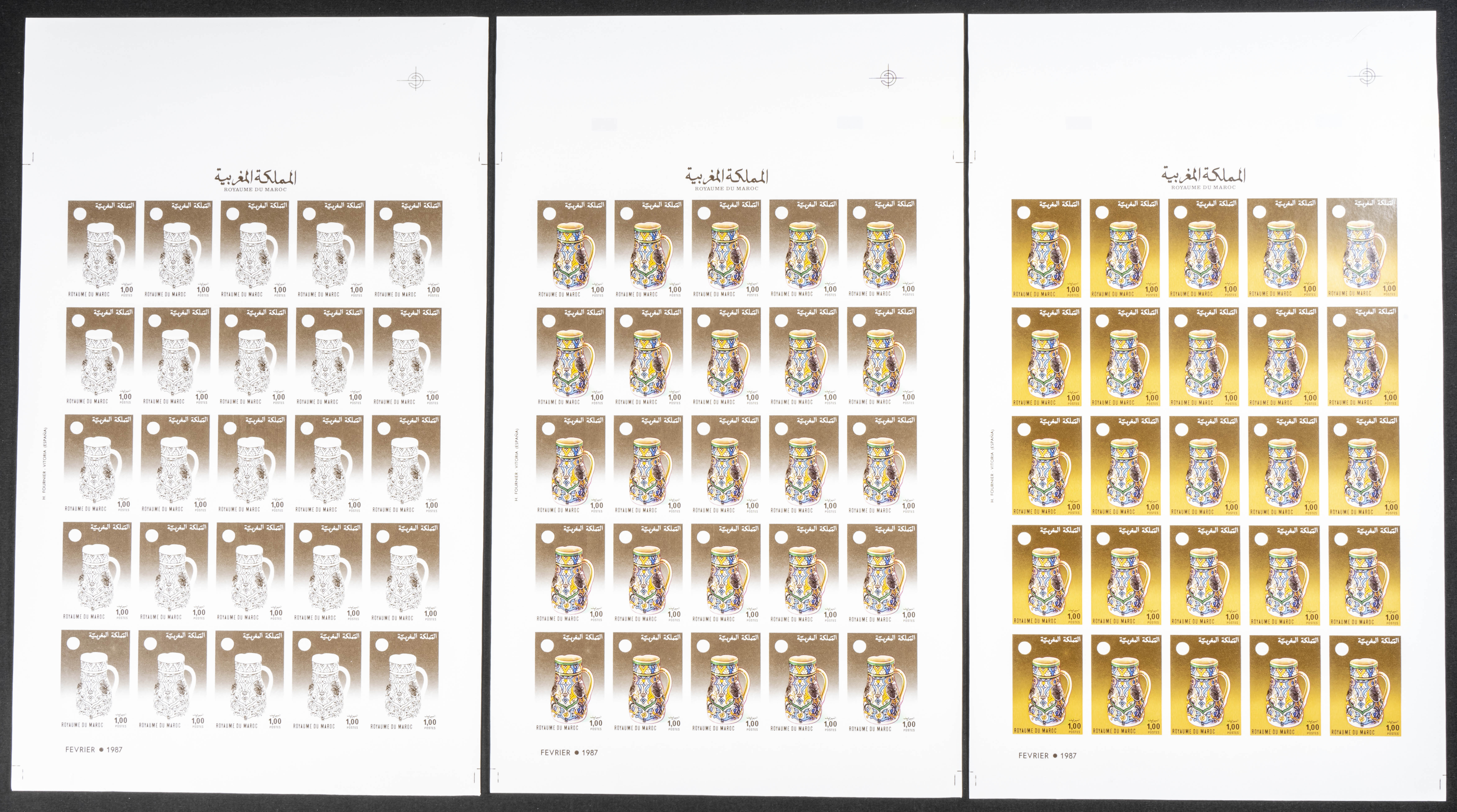 ★★Yvert 1030. 1987. Blind week, ceramics. Group of progressive plate proofs of the set. TO EXAM.