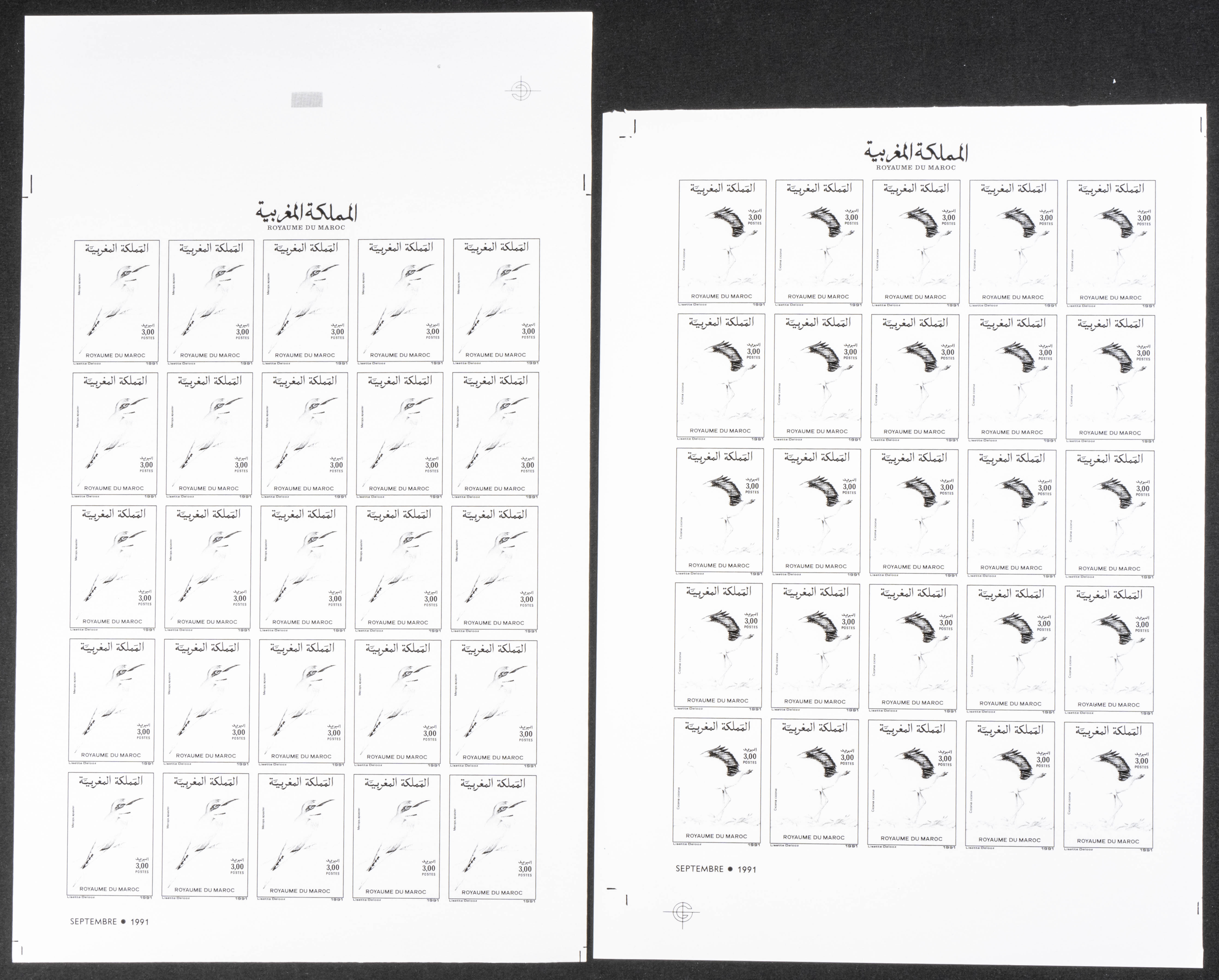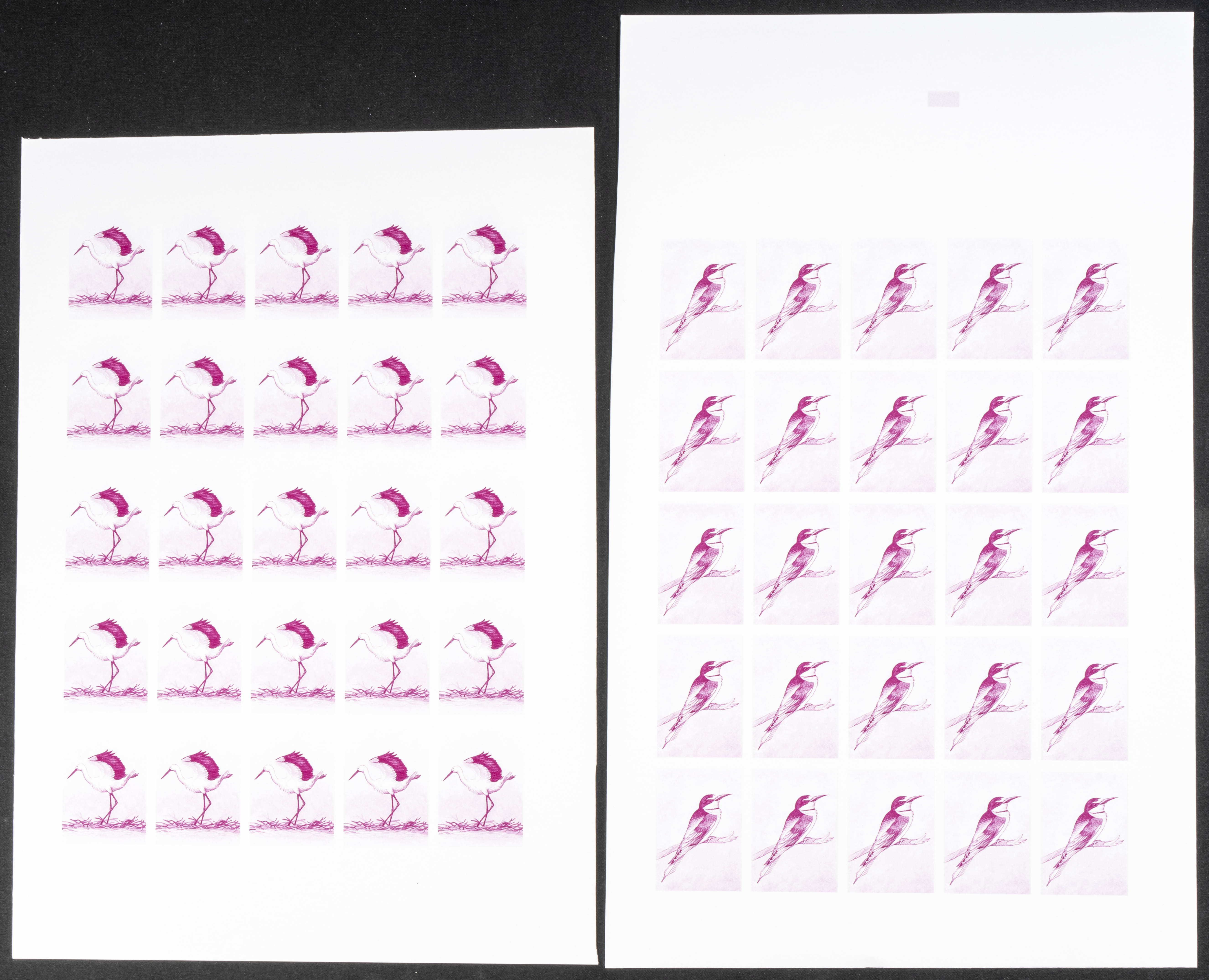 ★★Yvert 1110/11. 1991. Birds. Group of progressive plate proofs of the set. TO EXAM.