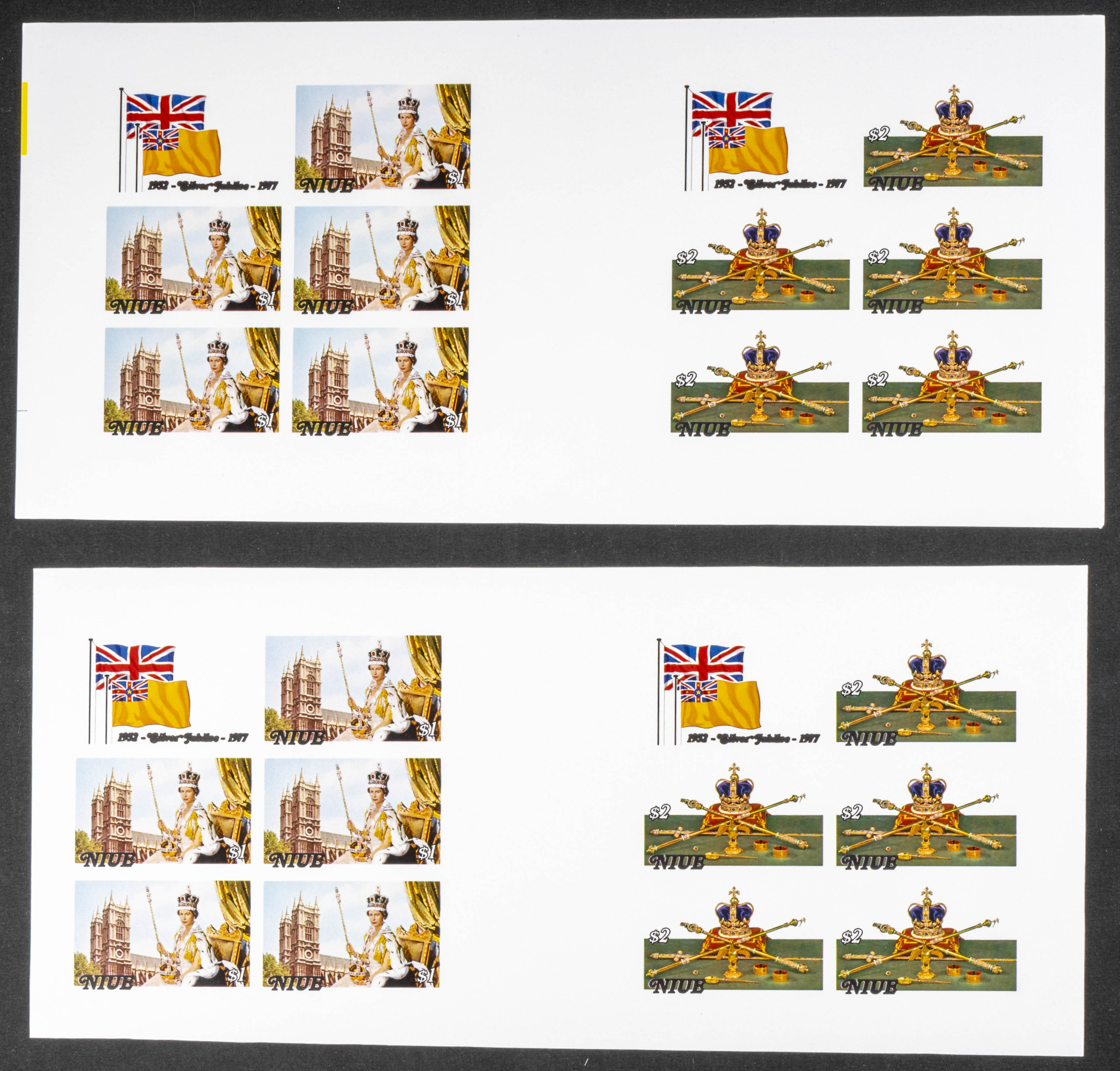 ★★Yvert 180/81. 1977. Silver jubilee. Group of progressive plate proofs of the set. TO EXAM.