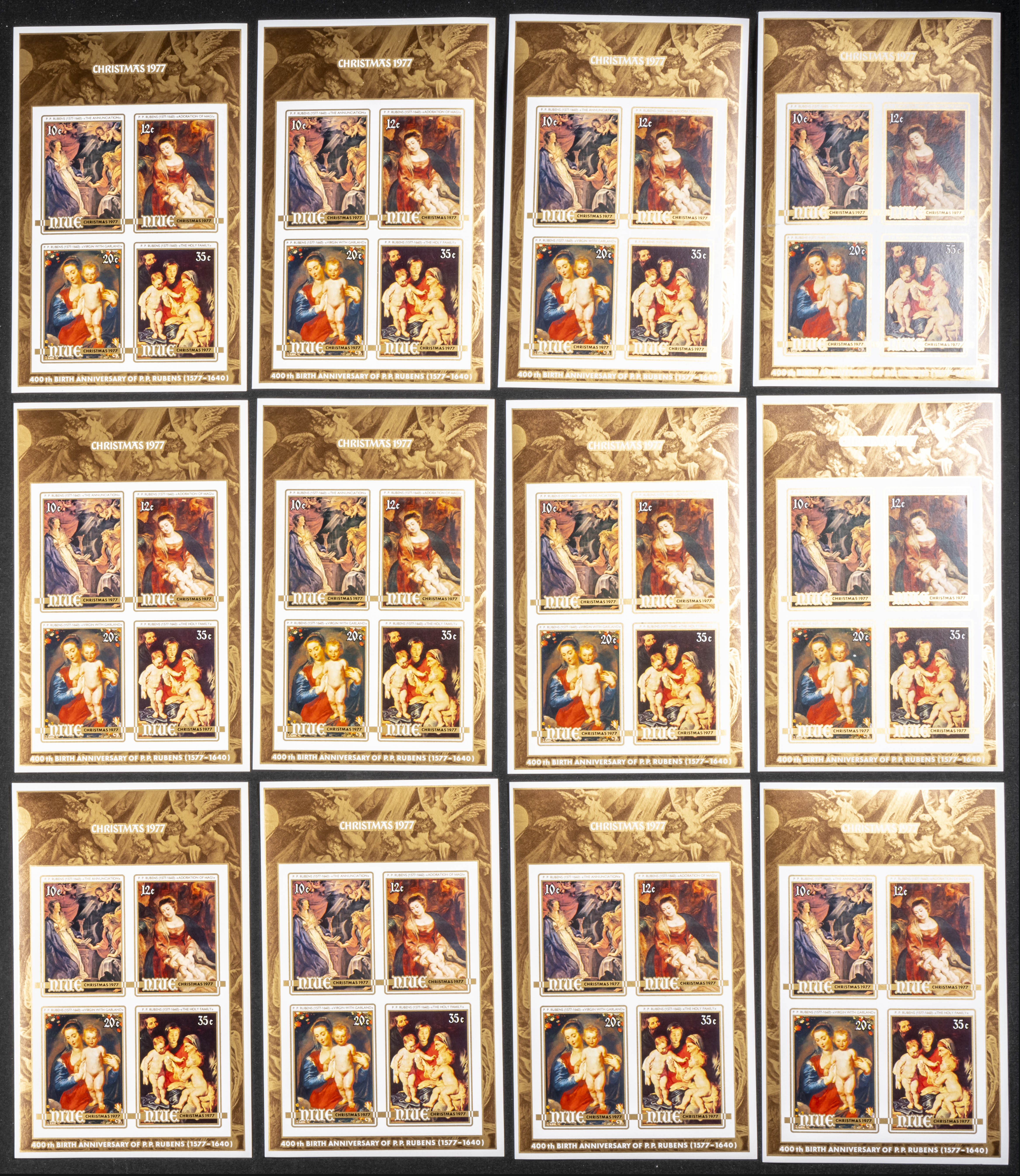 ★★Yvert B2. 1977. Christmas, Rubens painting. Group of IMPERFORATED sets. TO EXAM.