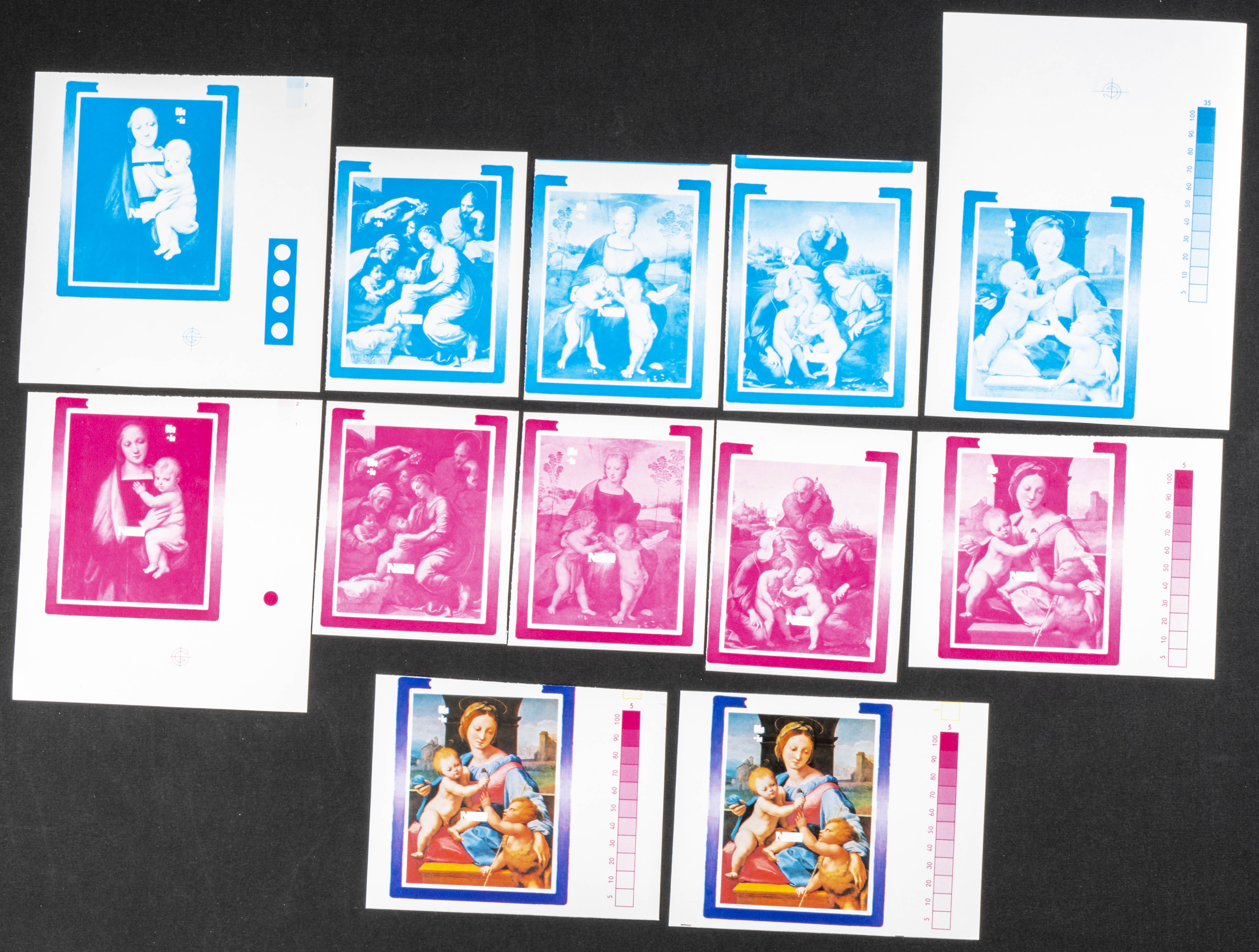 ★★1983. Christmas. Group of progressive plate proofs of the set. (Michel: B68/72). TO EXAM.