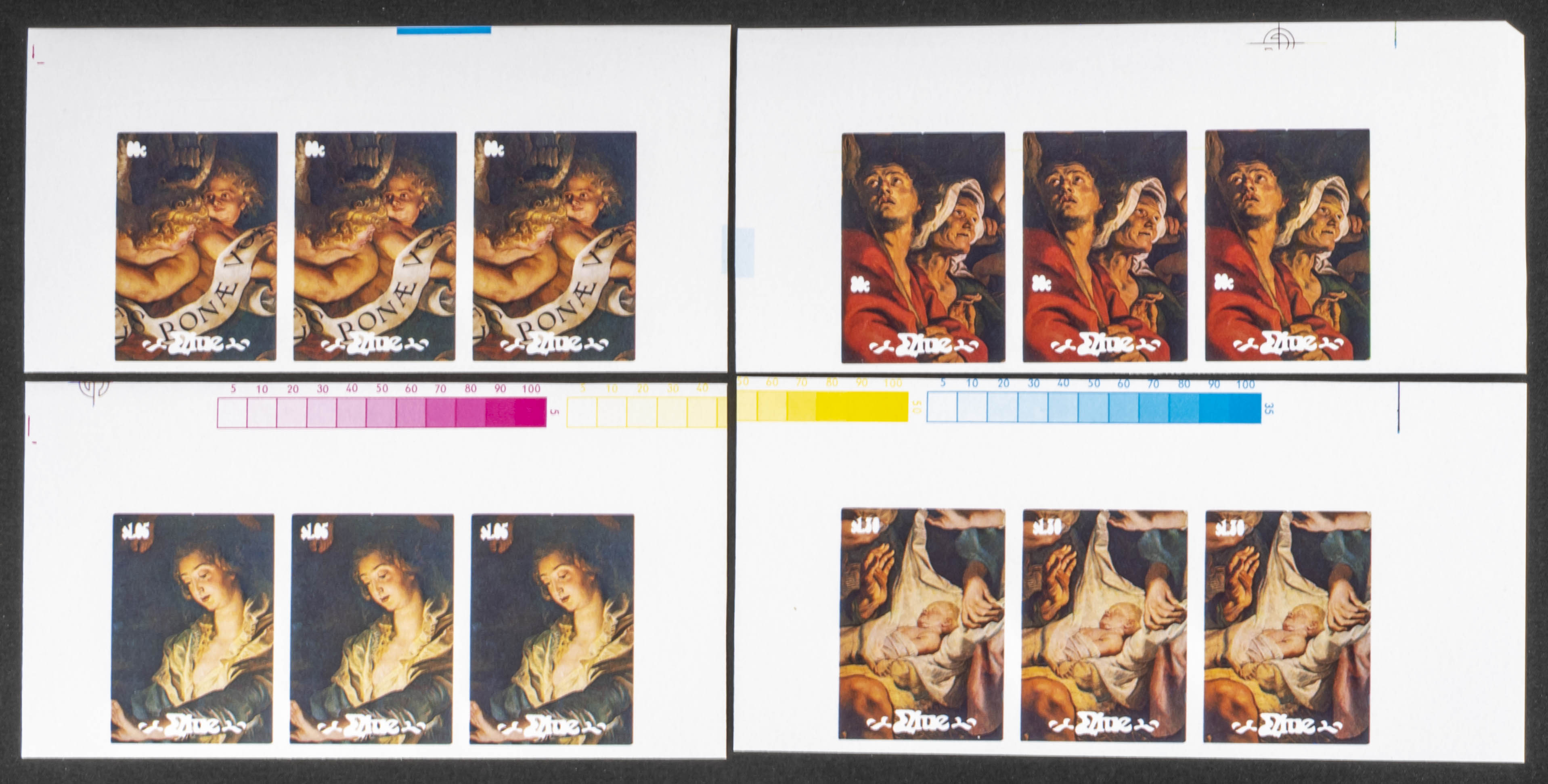 ★★1988. Christmas, Rubens. Group of progressive plate proofs of the set. (Michel: 737/40). TO EXAM.