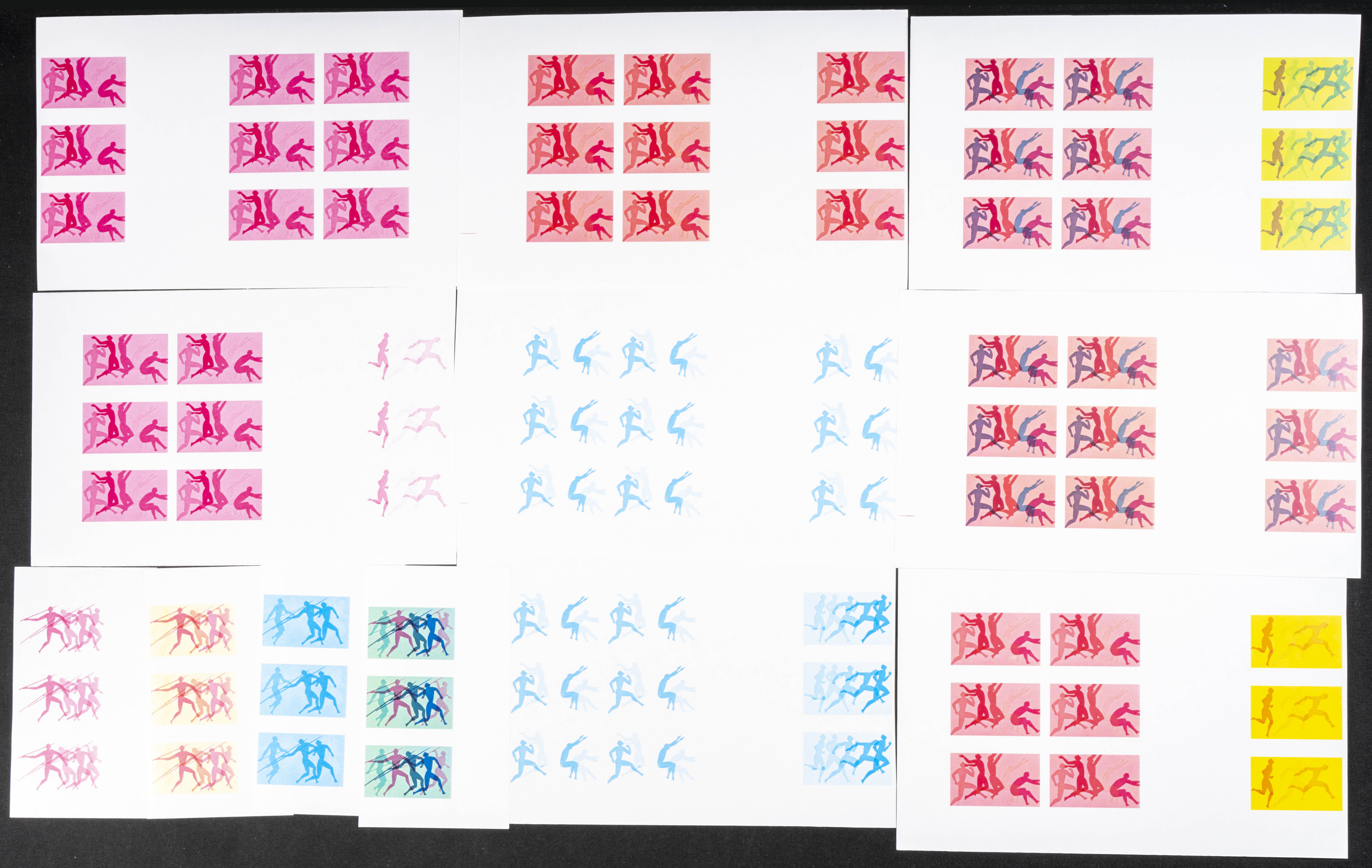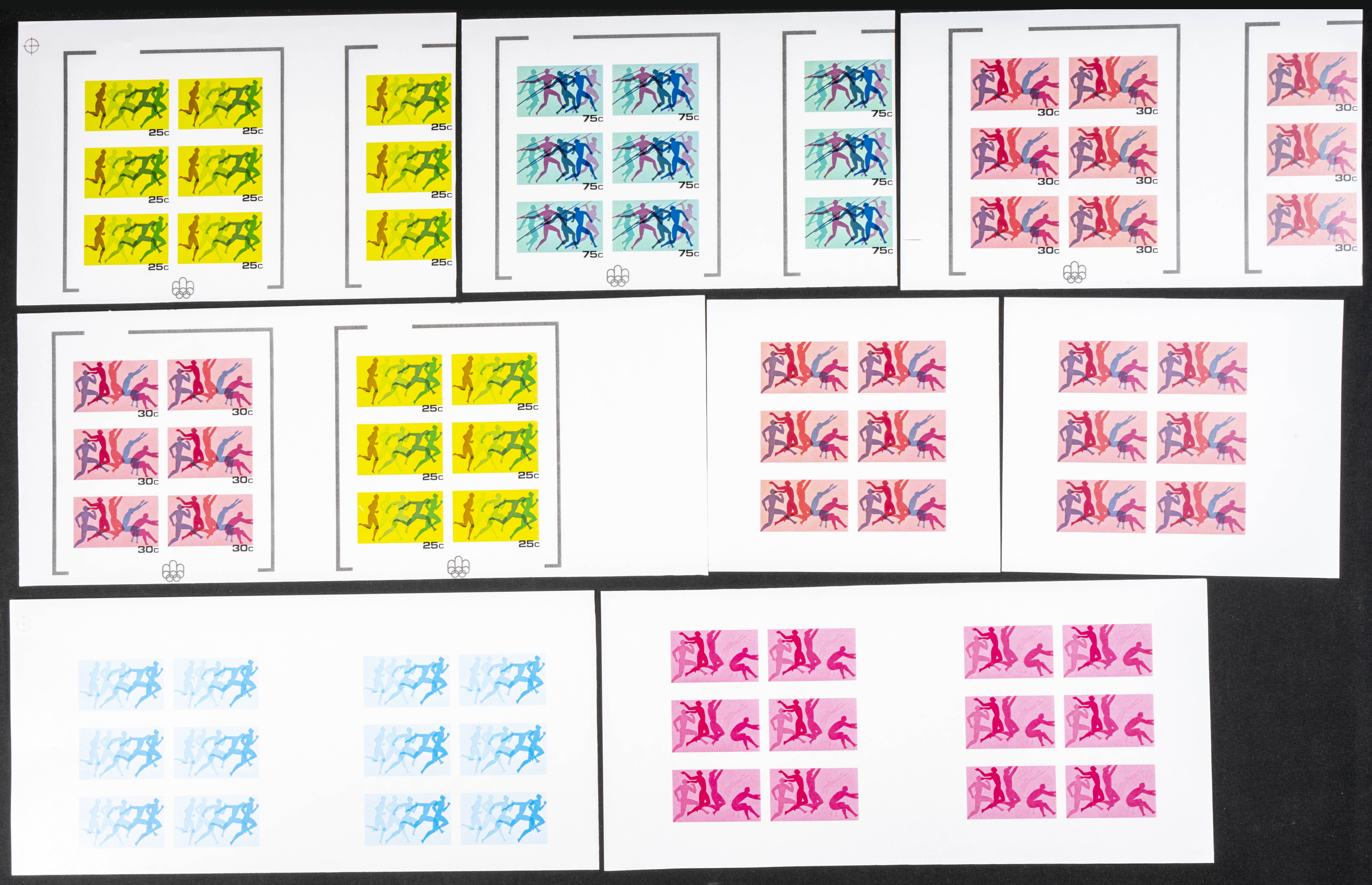 ★★Yvert 77/79. 1976. Olympic games Montreal. Group of progressive plate proofs of the set. TO EXAM.