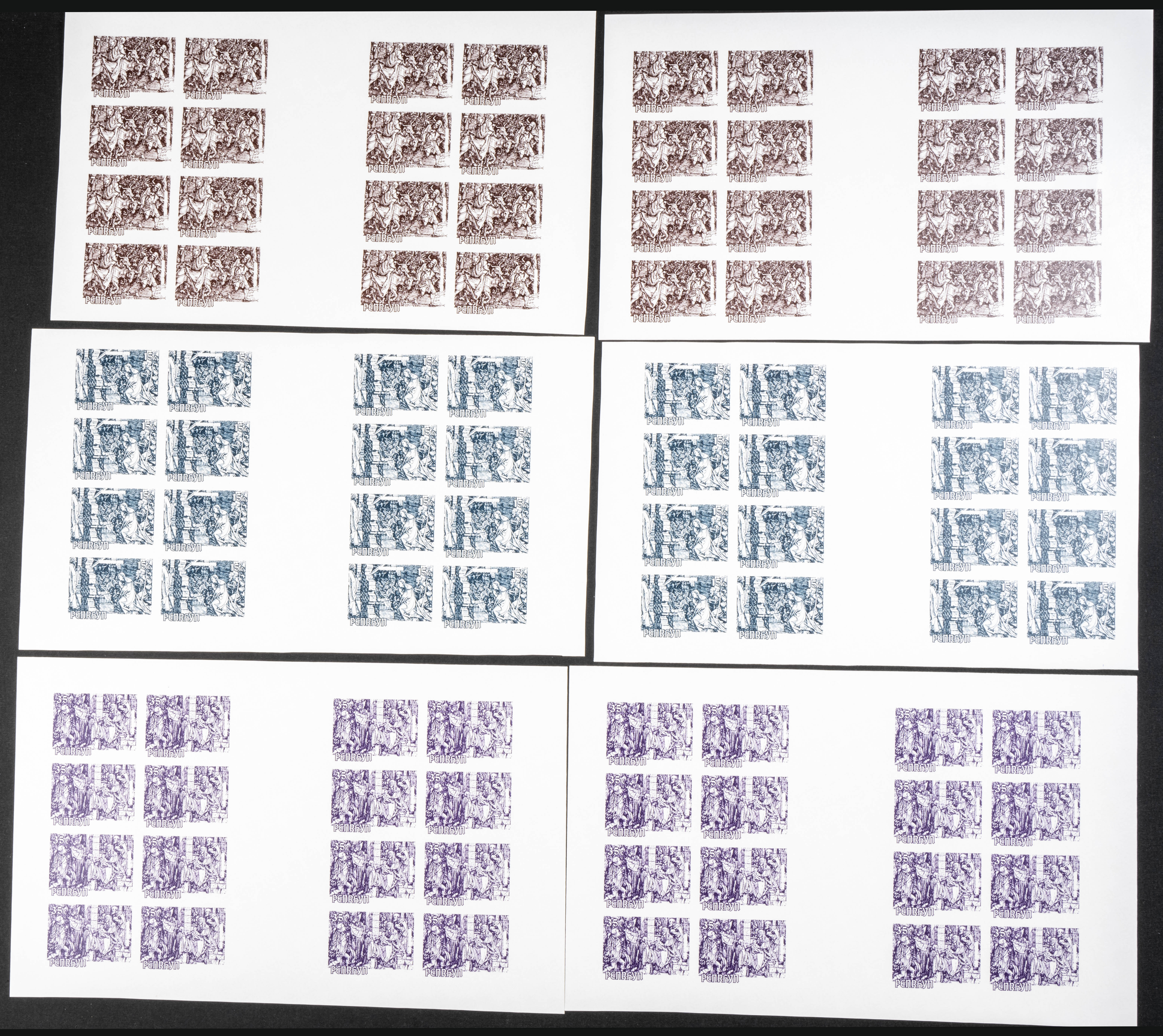 ★★Yvert 80/82. 1976. Christmas. Group of progressive plate proofs of the set. TO EXAM.