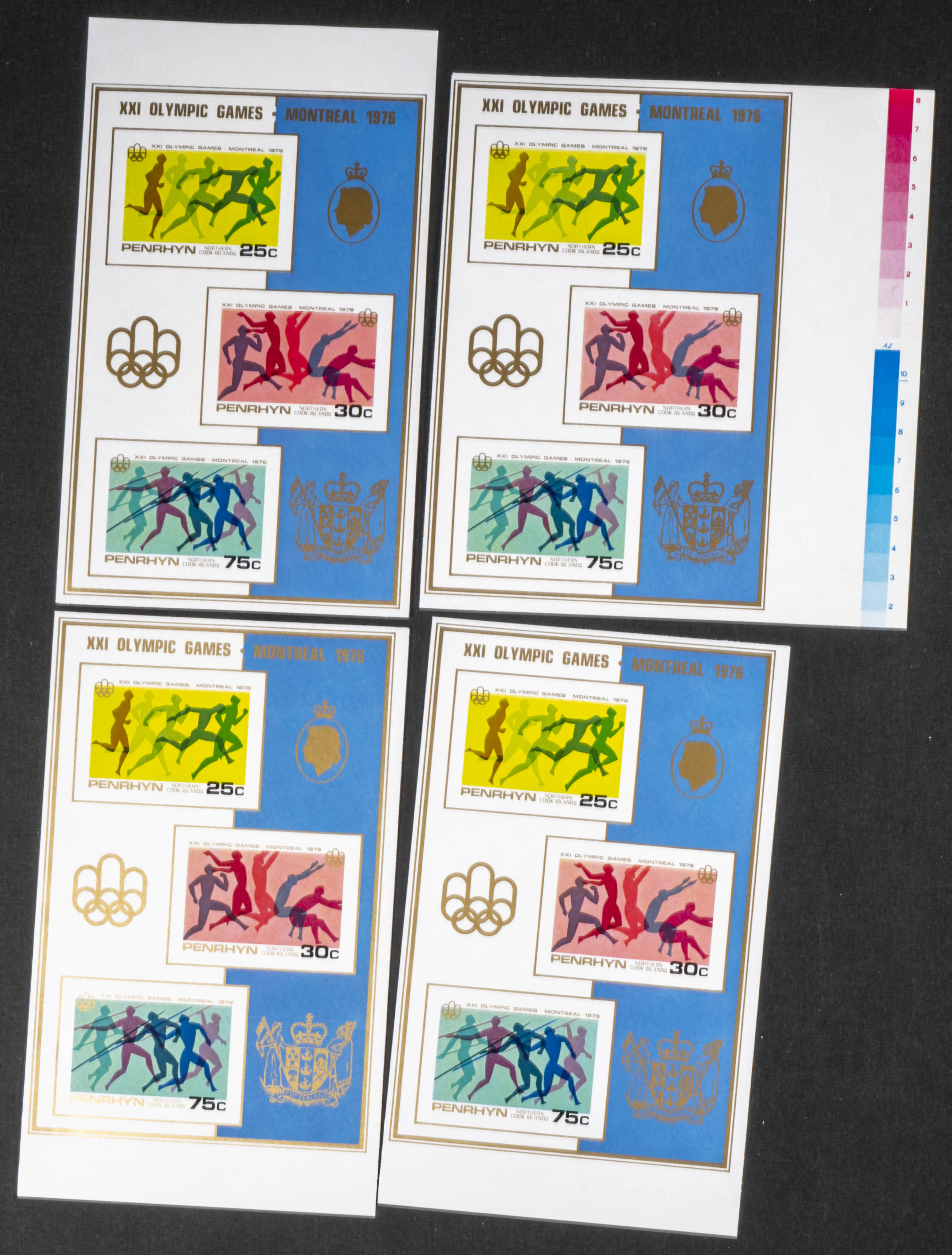 ★★Yvert B3. 1976. Olympic games Montreal. Group of progressive plate proofs of the set. TO EXAM.