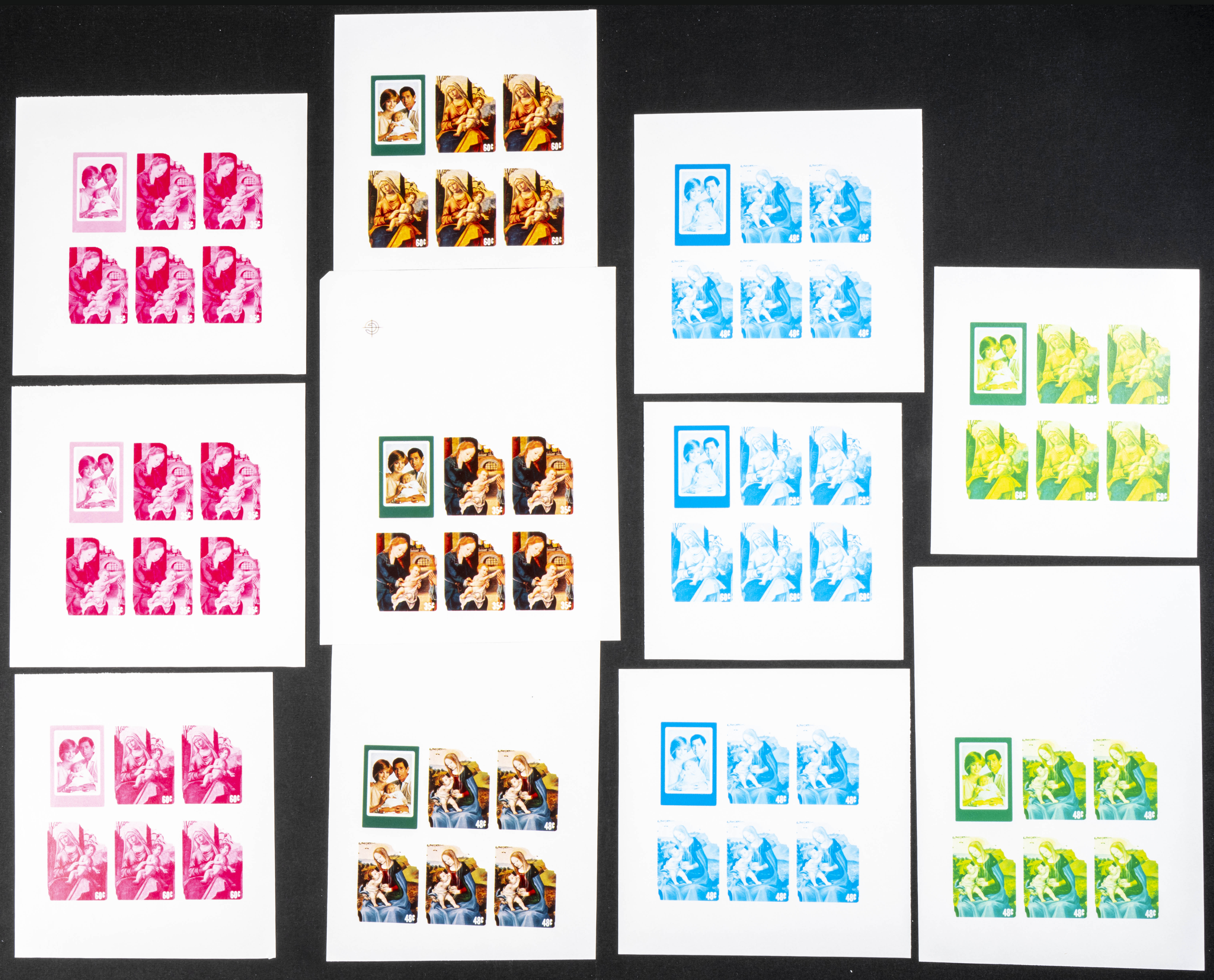 ★★Yvert 219/21. 1982. Christmas. Group of progressive plate proofs of the set. TO EXAM.