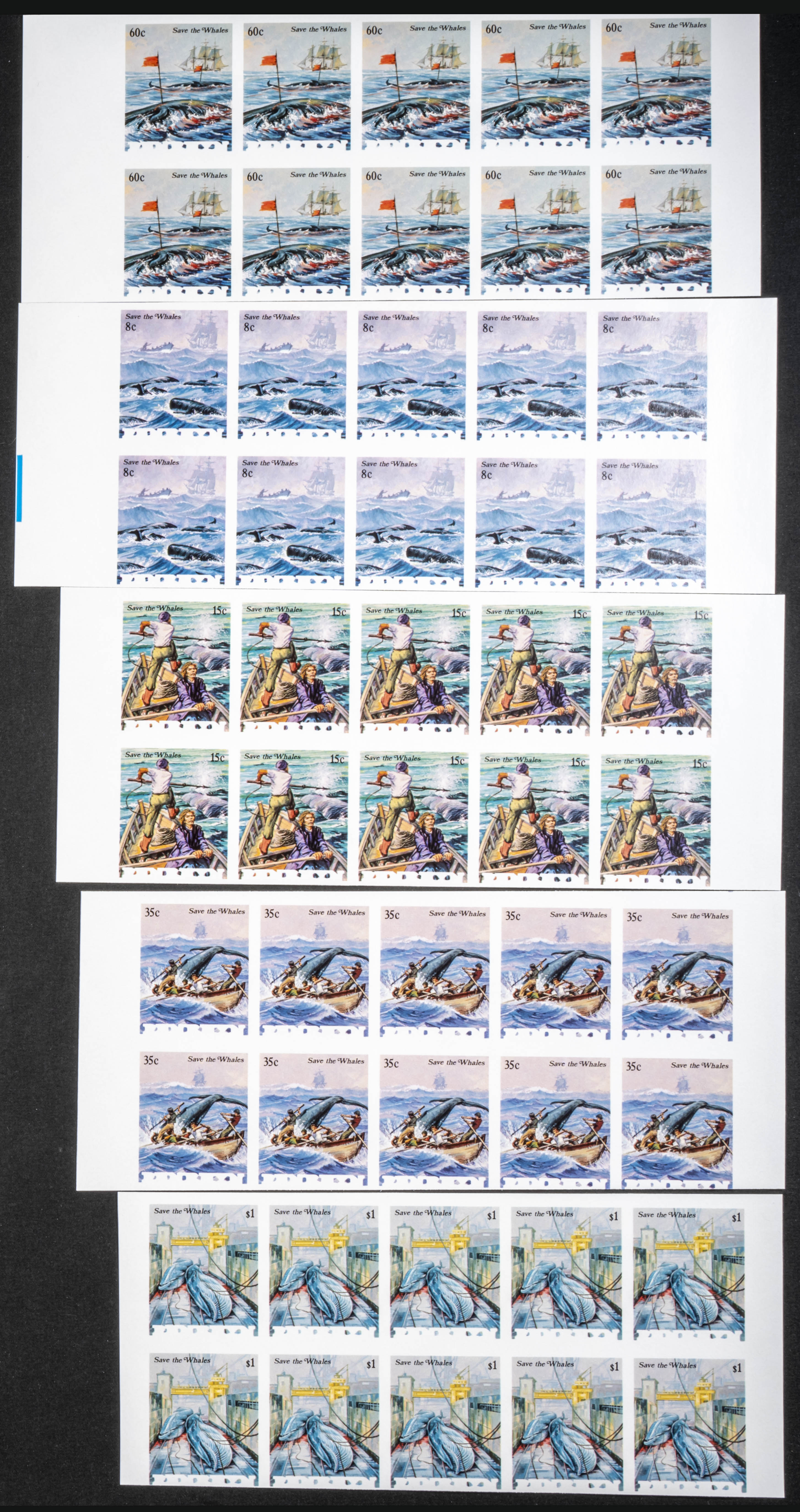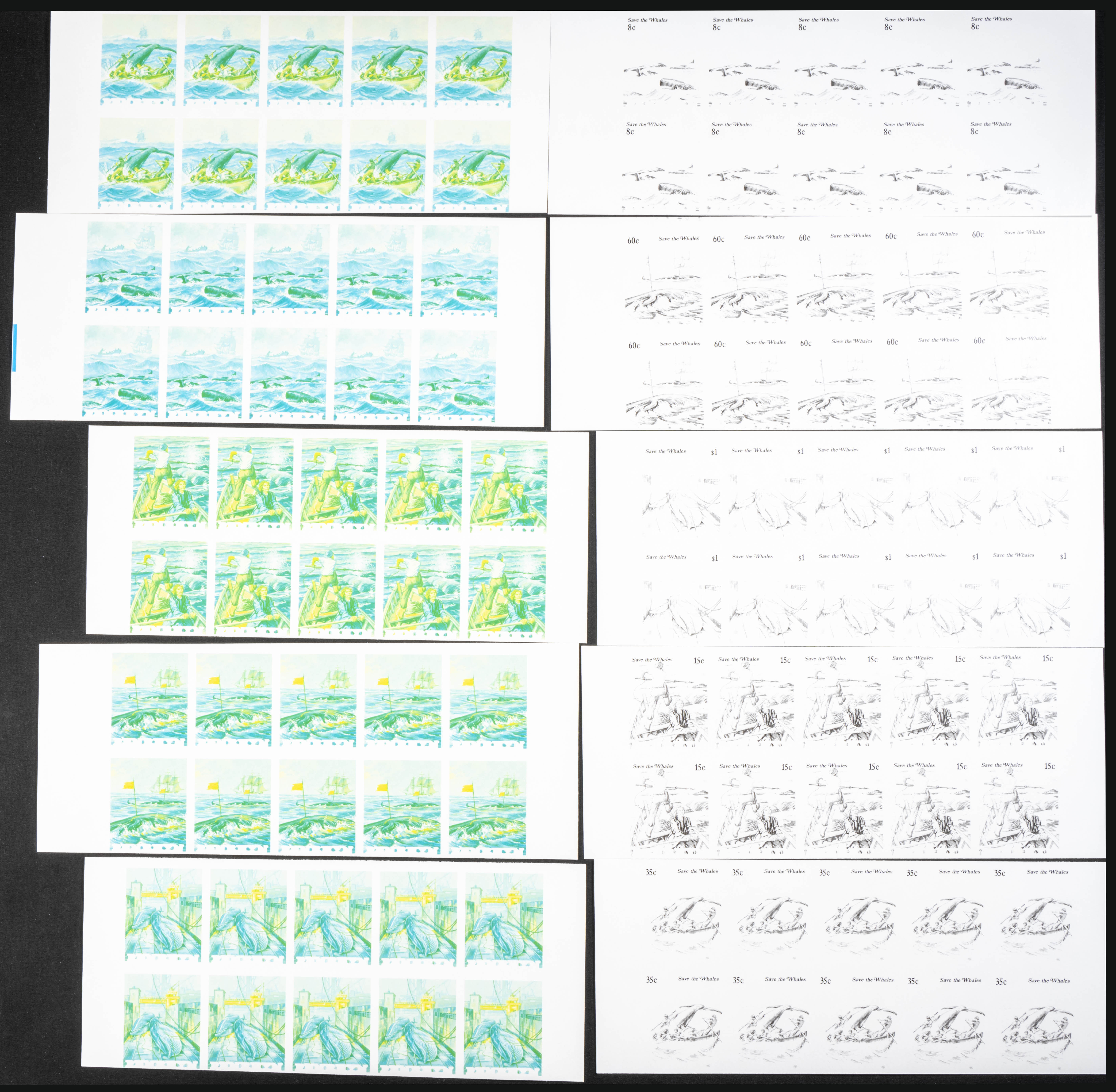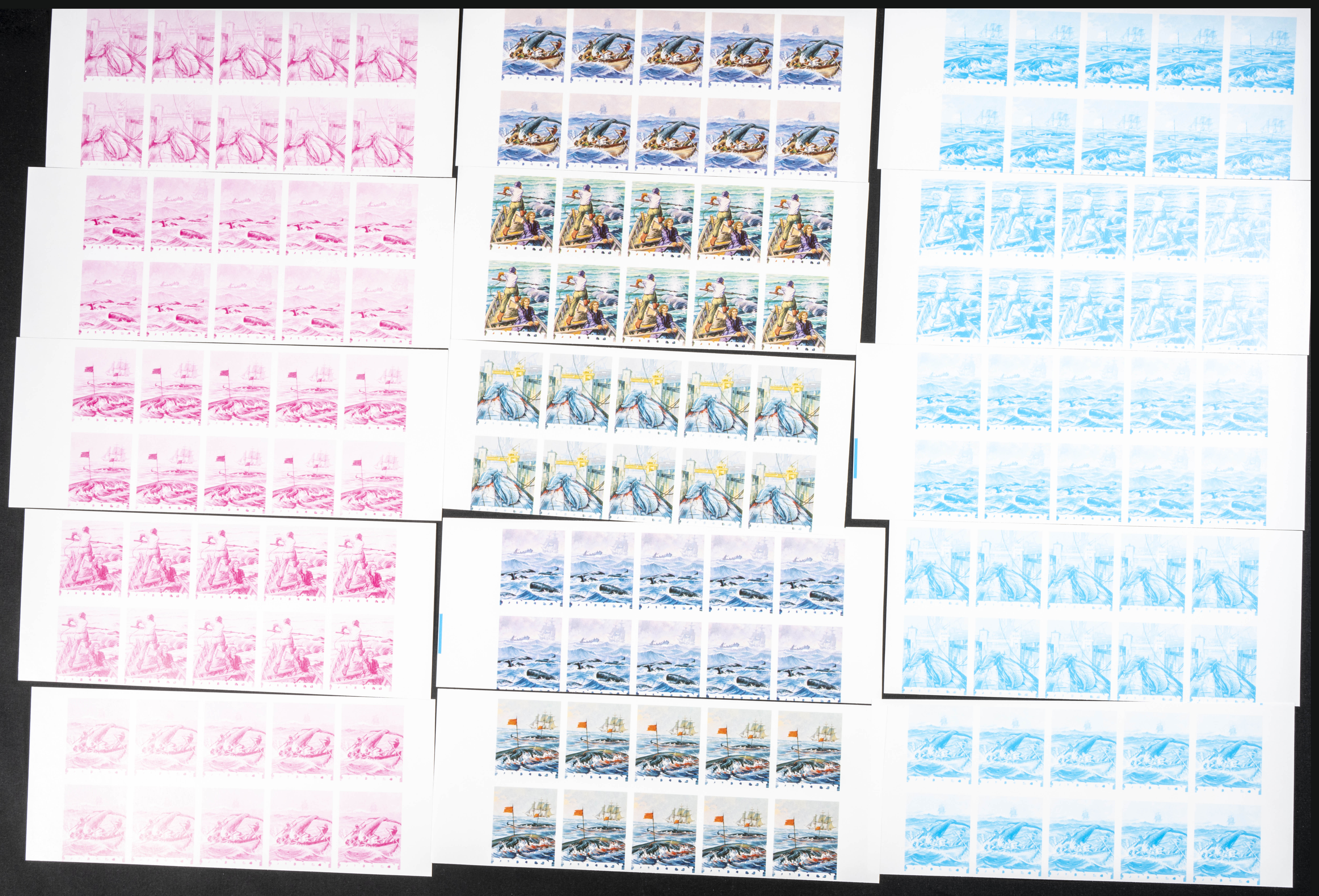 ★★Yvert 232/36. 1983. Save the whales. Group of progressive plate proofs of the set. TO EXAM.