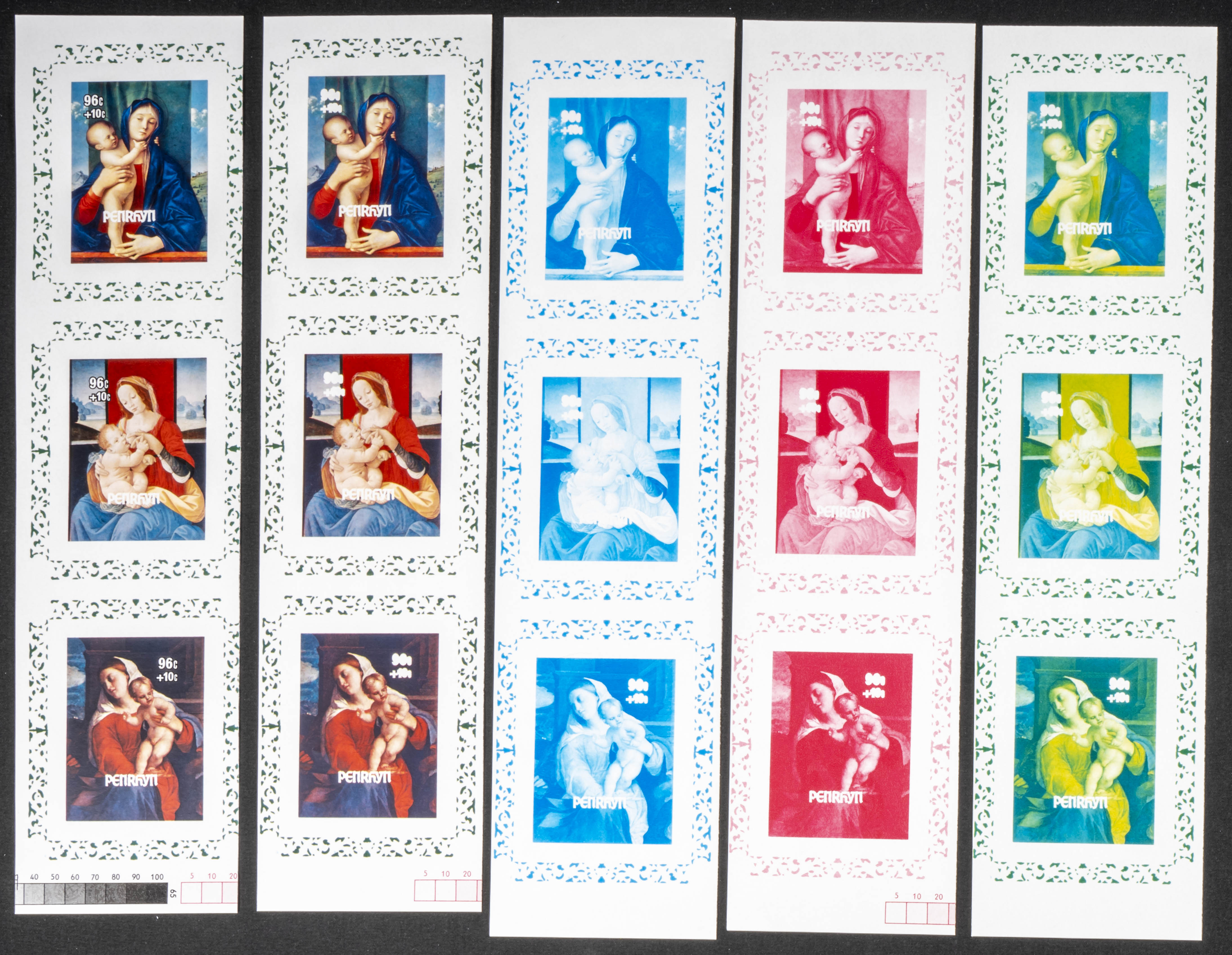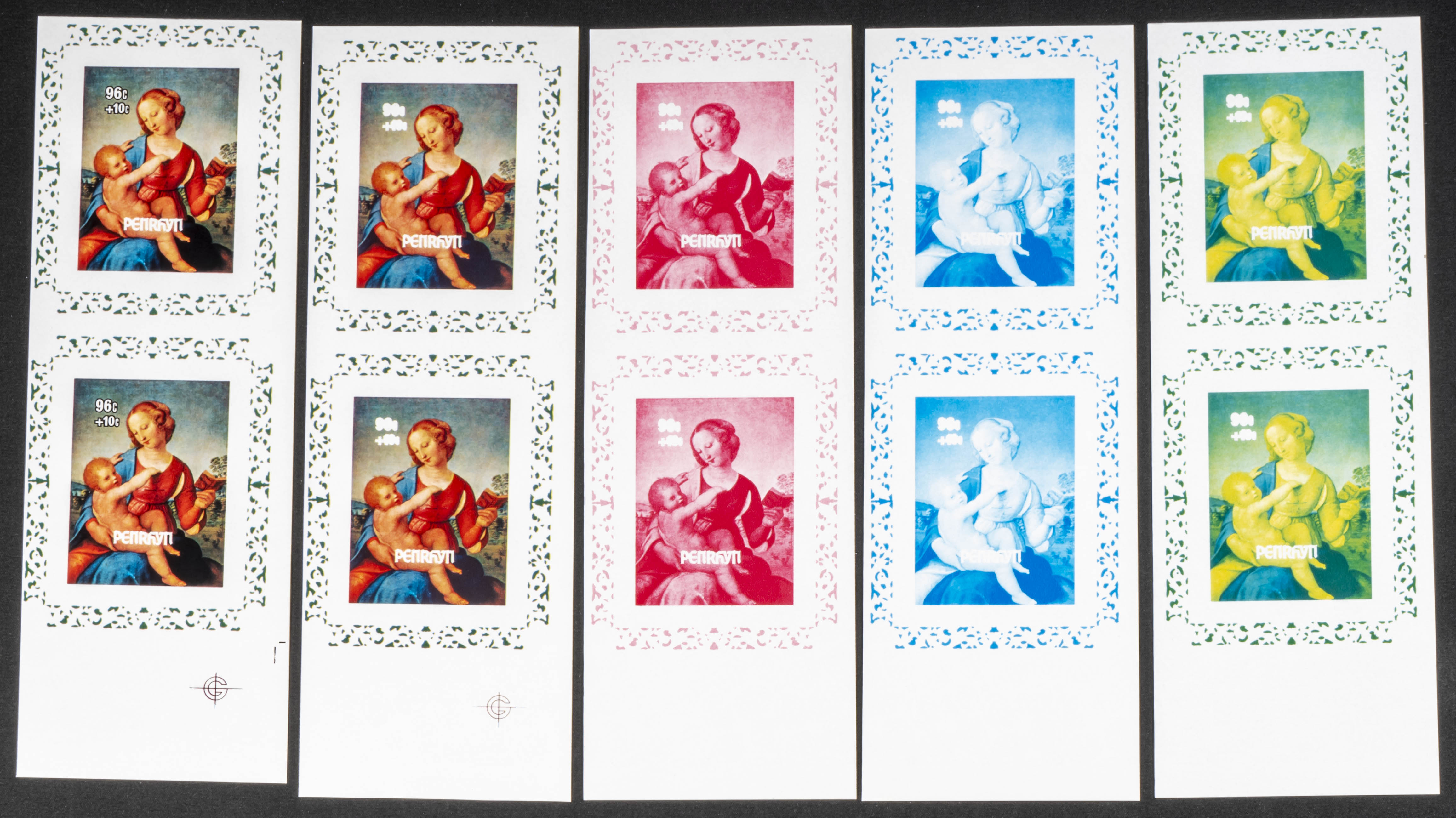 ★★Yvert B57/60. 1984. Christmas. Group of progressive plate proofs of the set. TO EXAM.