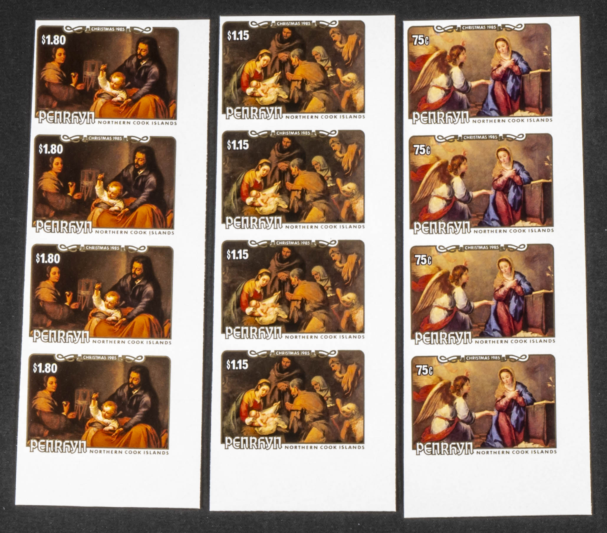 ★★Yvert 317/19. 1985. Christmas. Group of IMPERFORATED sets. TO EXAM.