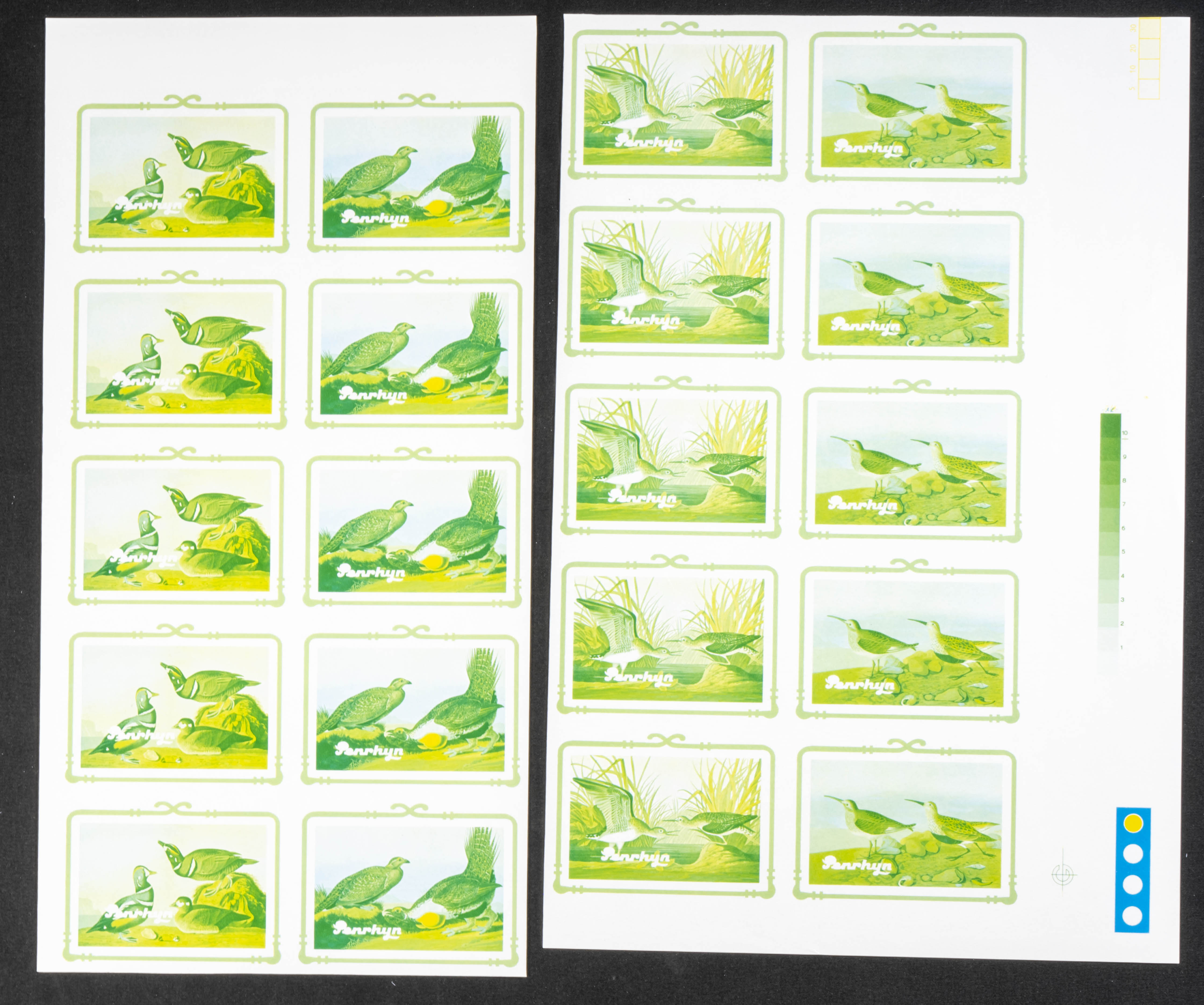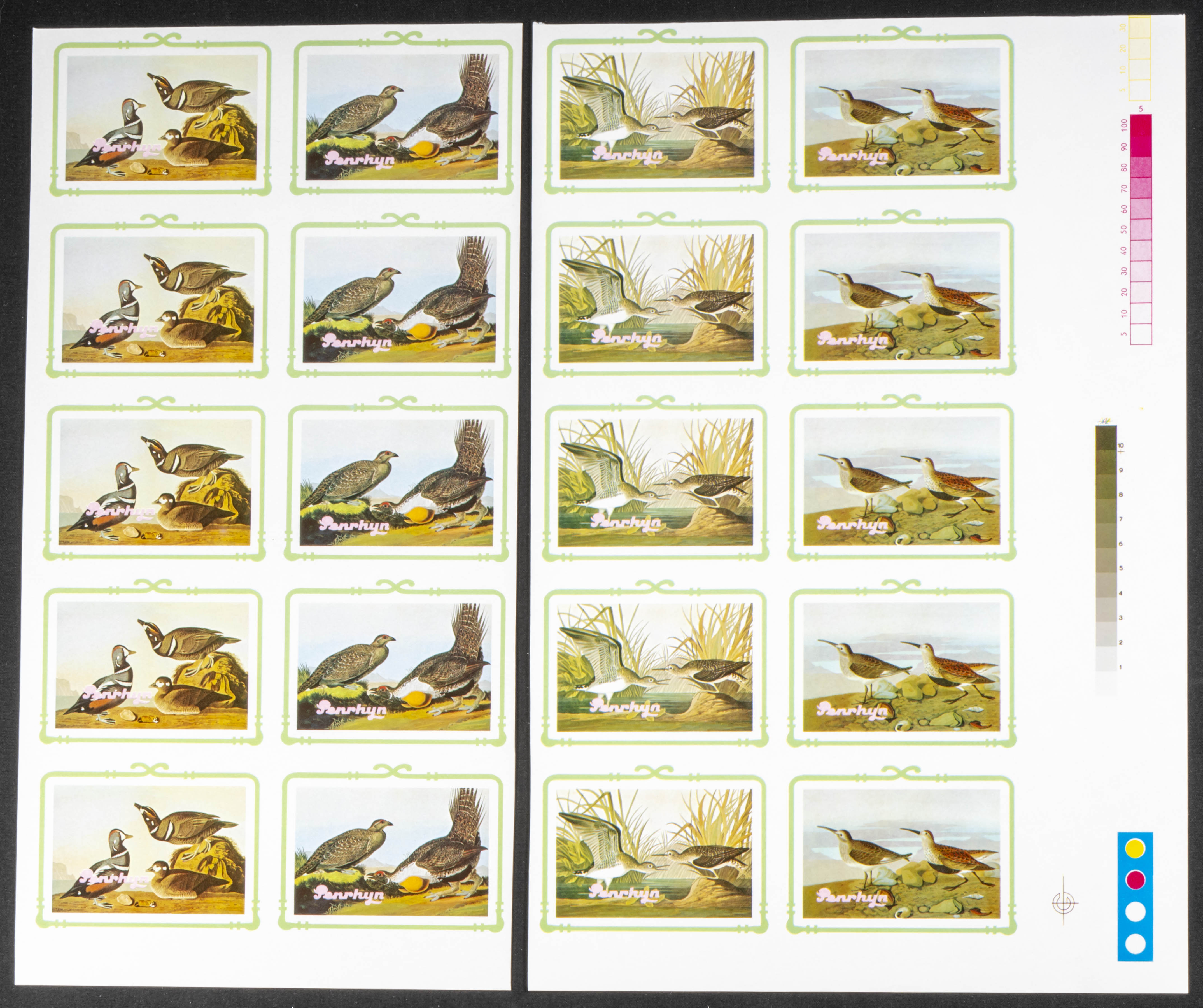 ★★Yvert B61/64. 1985. Birds, J.J. Audubon. Group of progressive plate proofs of the set. TO EXAM.