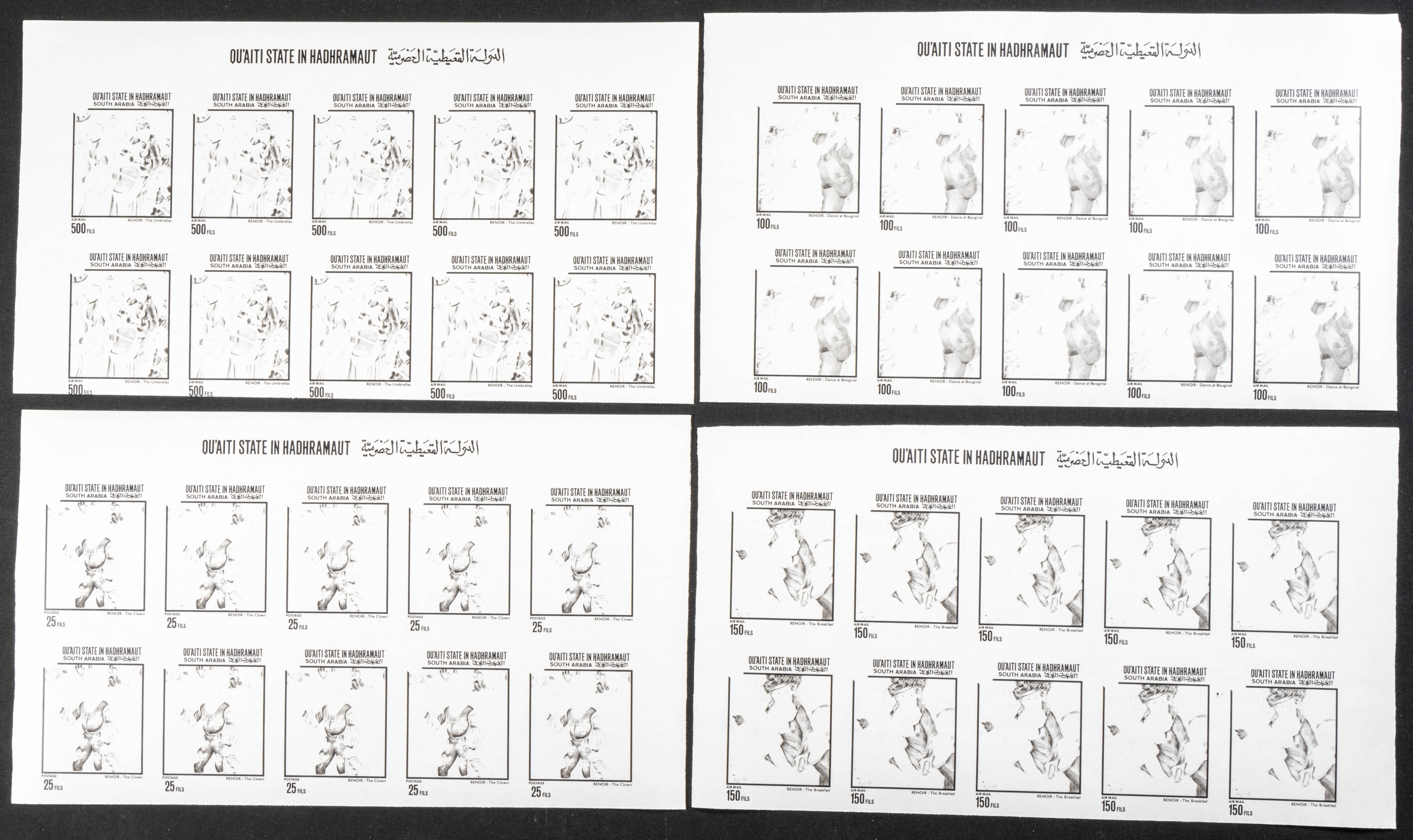 ★★Yvert PA12A/D. 1965. Renoir paintings. Group of progressive plate proofs of the set. TO EXAM.