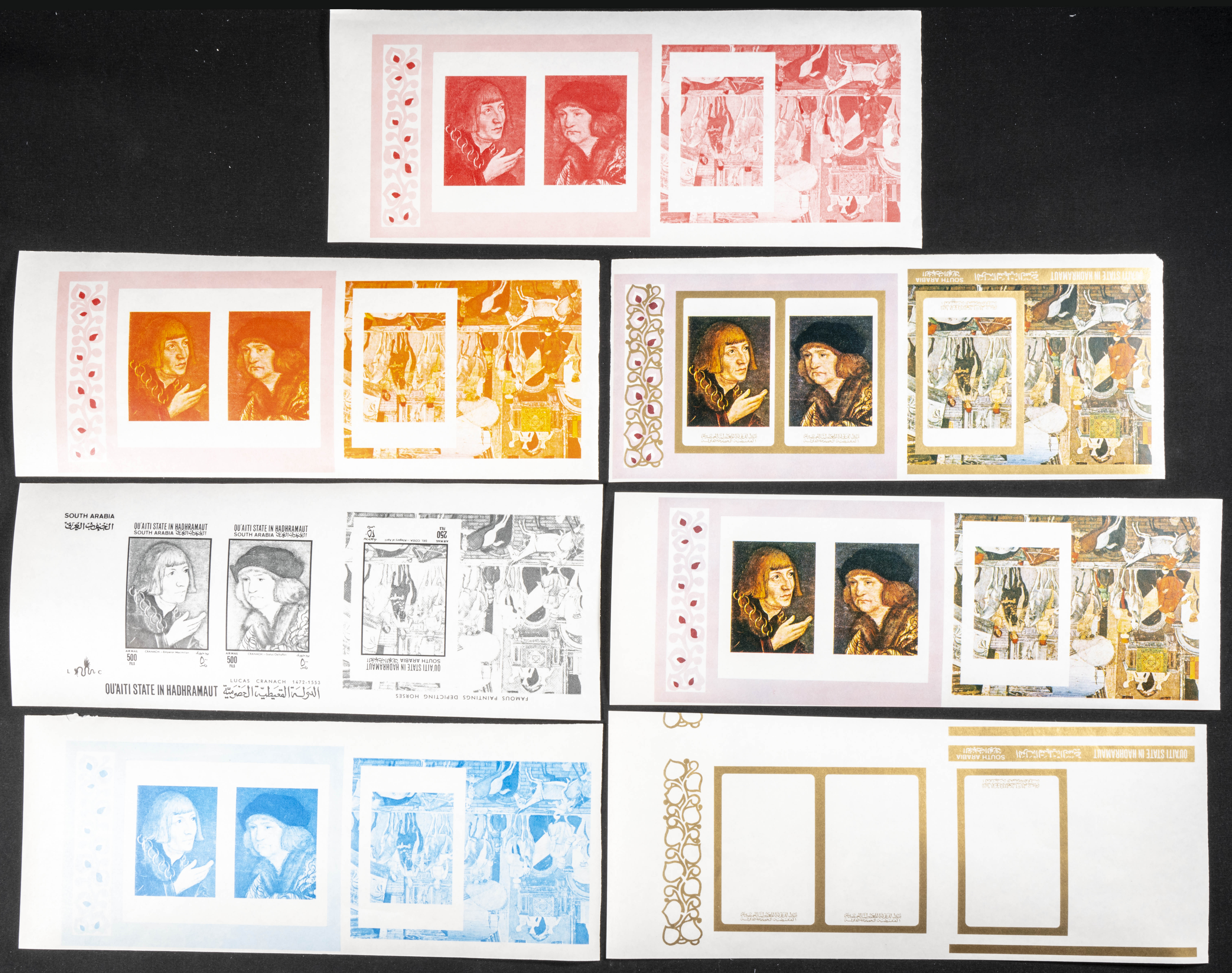 ★★Yvert B18. 1966. Horse paintings & Cranach paintings. Group of progressive plate proofs of the set. TO EXAM.