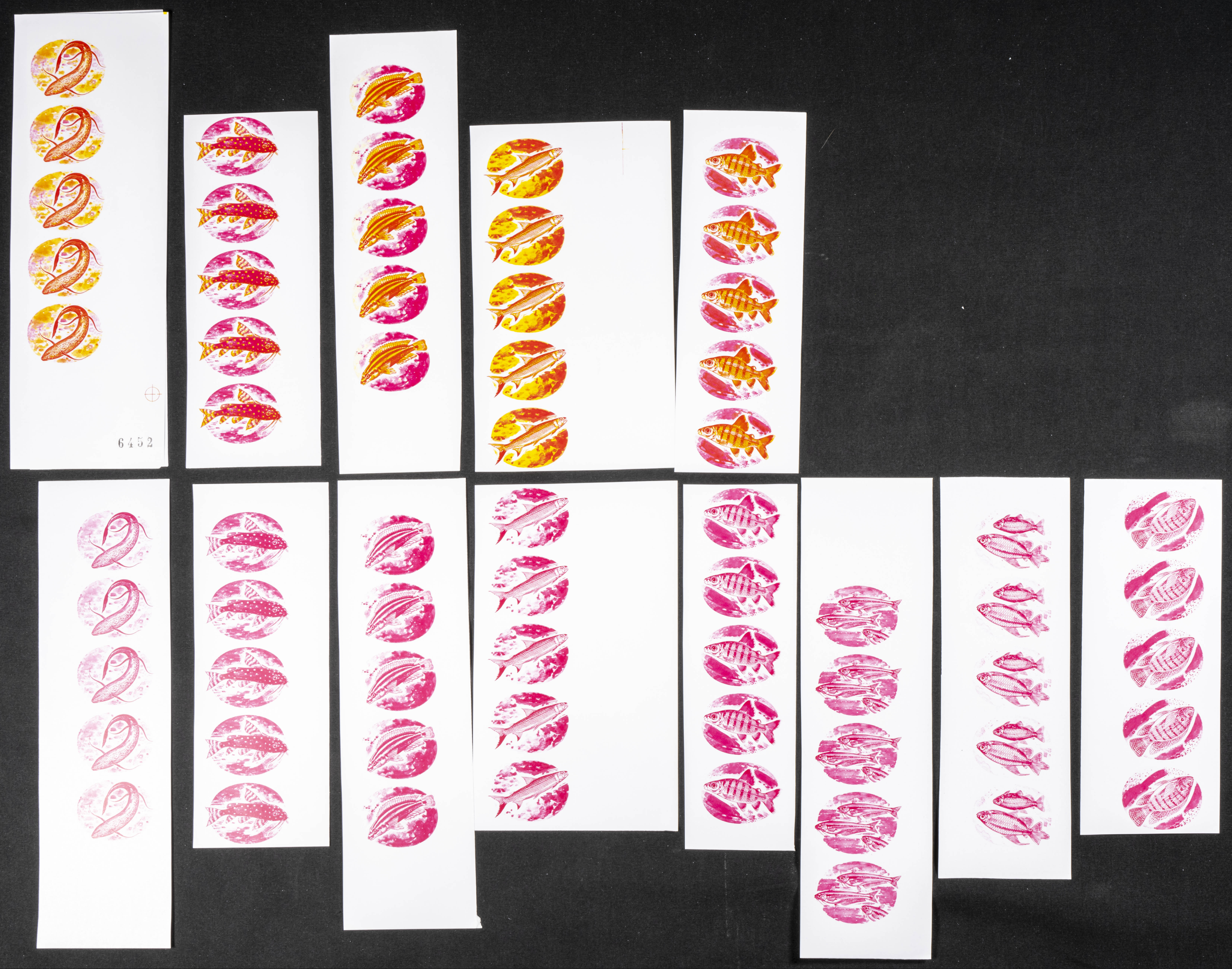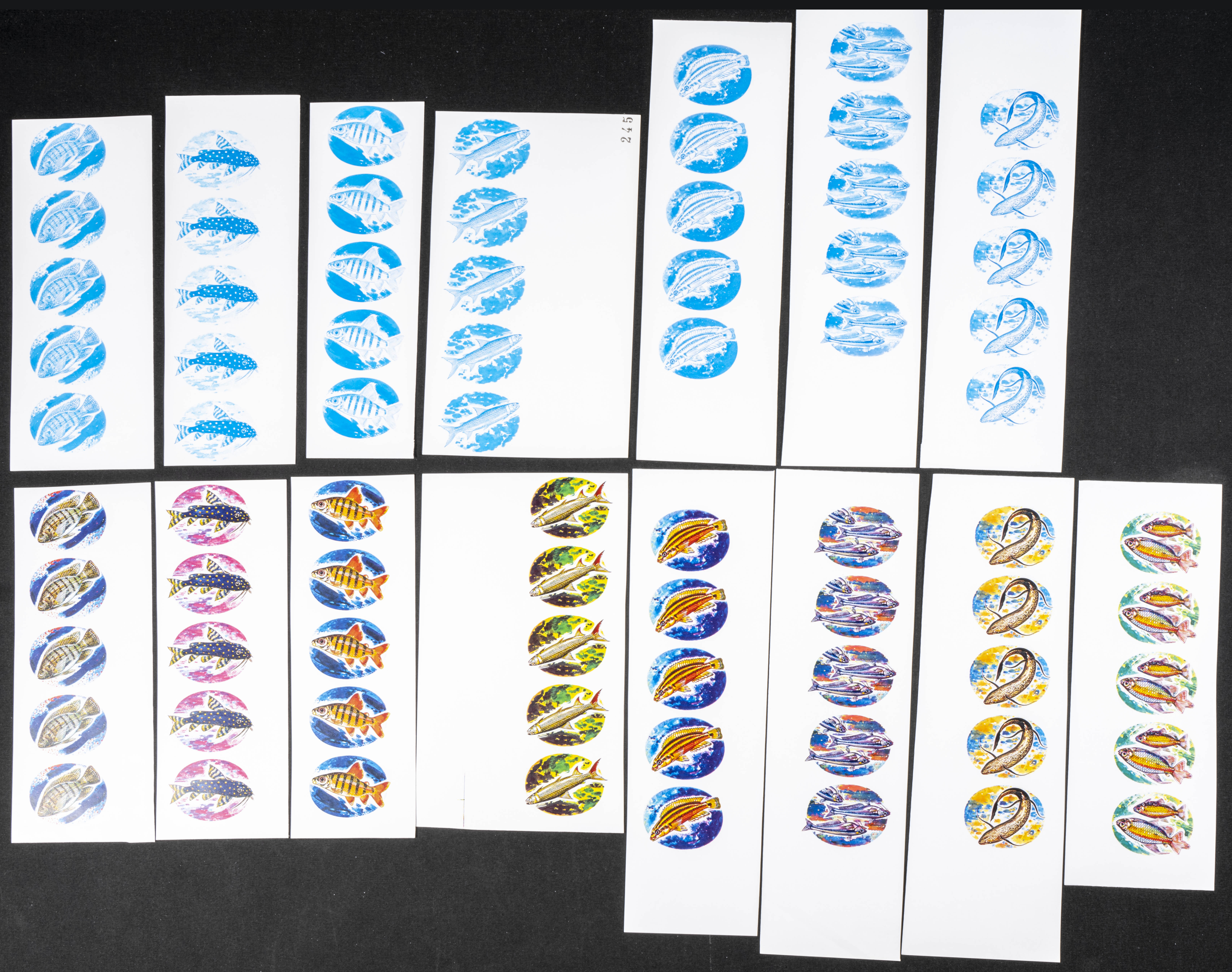 ★★Yvert 553/60. 1973. Fish. Group of progressive plate proofs of the set. TO EXAM.