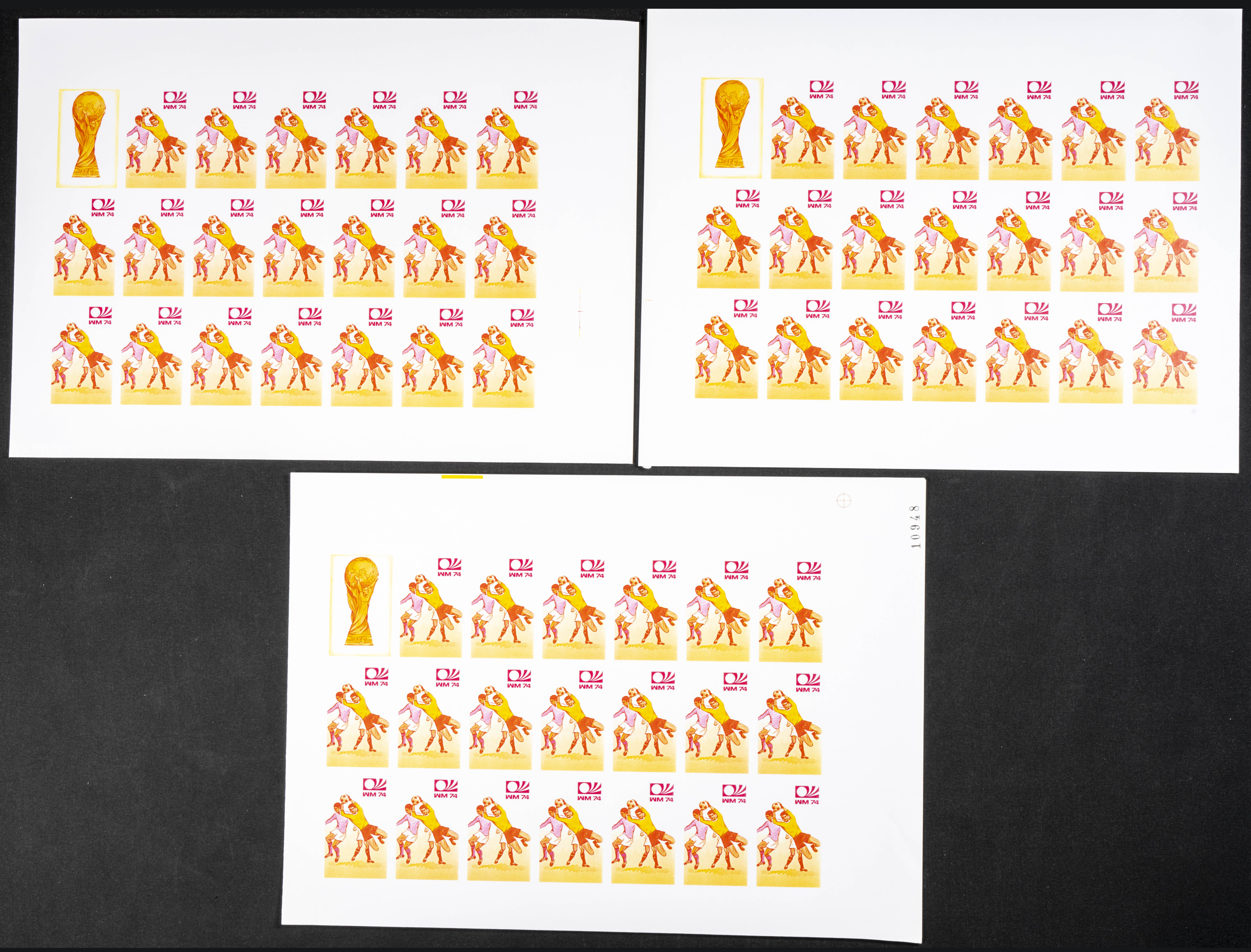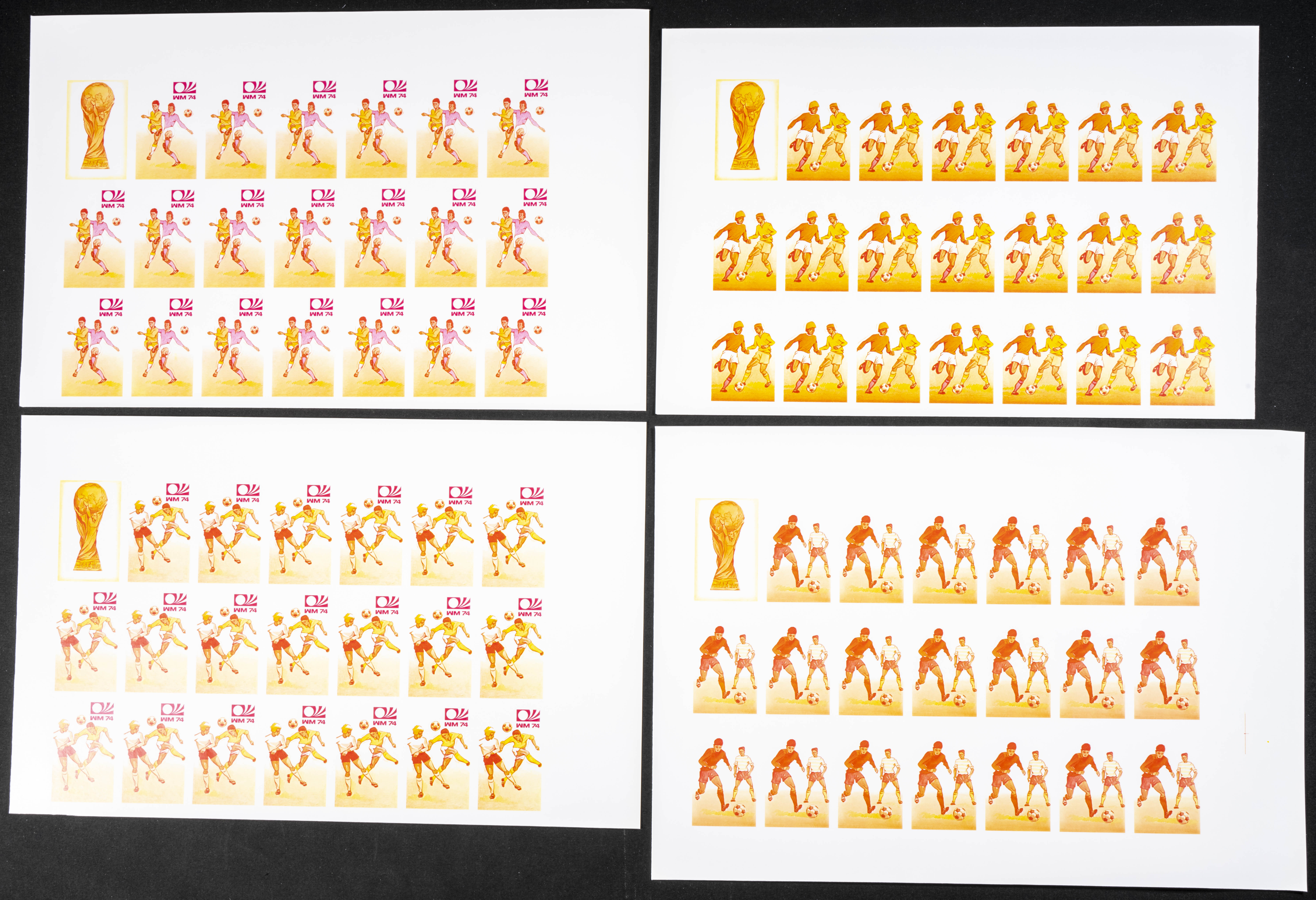 ★★Yvert 578/85. 1974. Football World Cup. Group of progressive plate proofs of the set. TO EXAM.