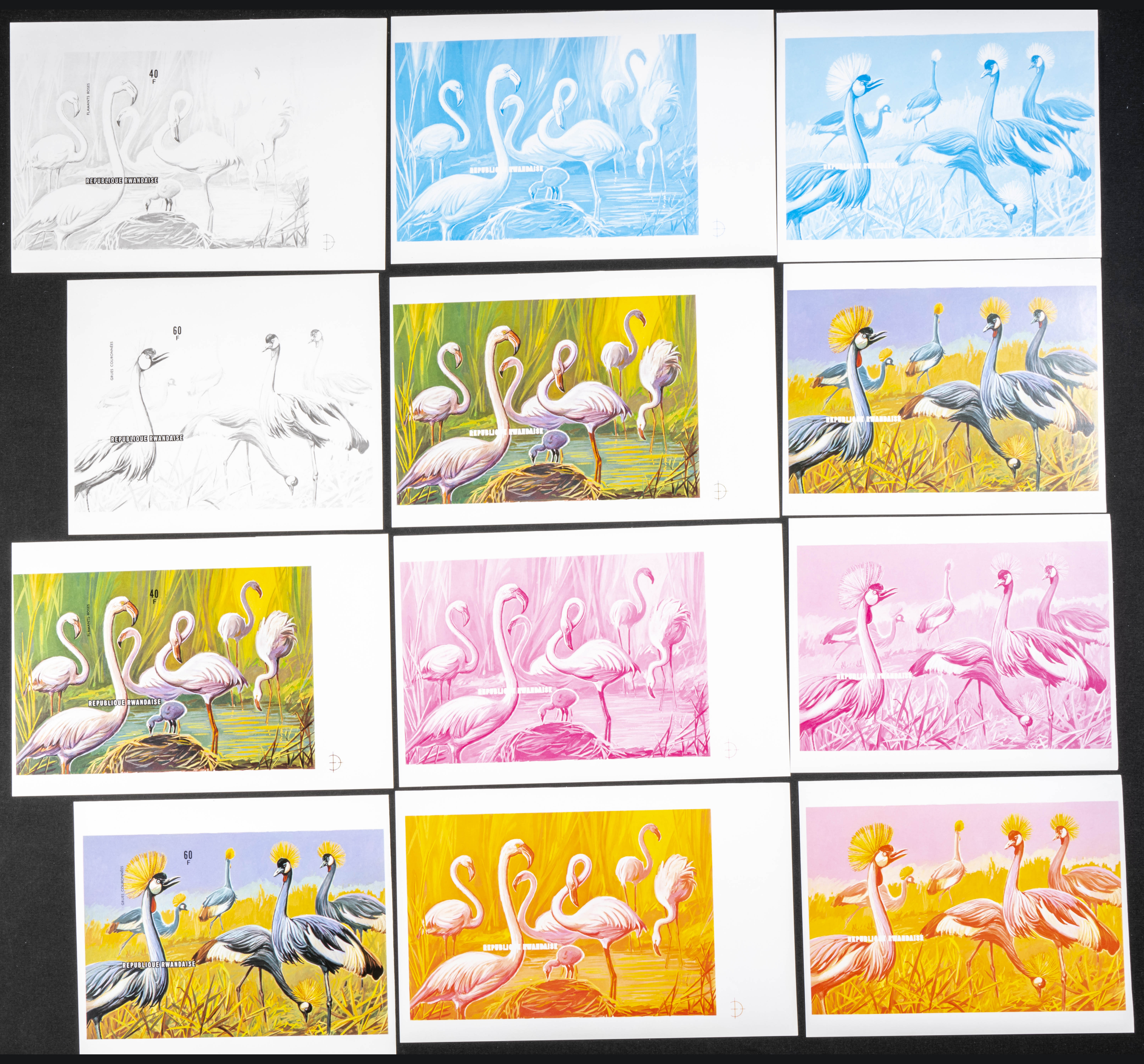 ★★Yvert B59/60. 1975. Water birds. Group of progressive plate proofs of the set. TO EXAM.