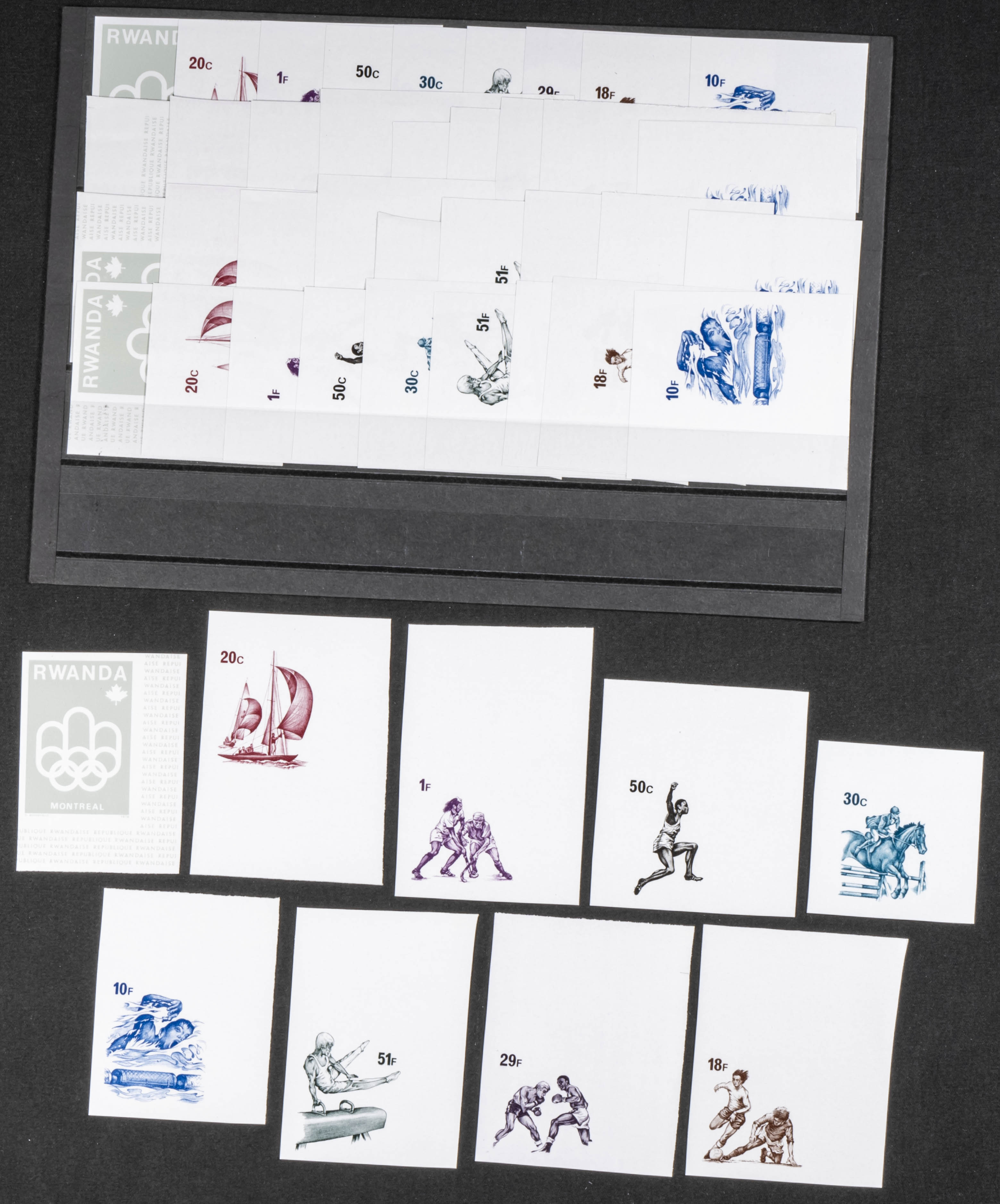 ★★Yvert 713/20. 1976. Olympic Games Montreal. Group of progressive plate proofs of the set. TO EXAM.