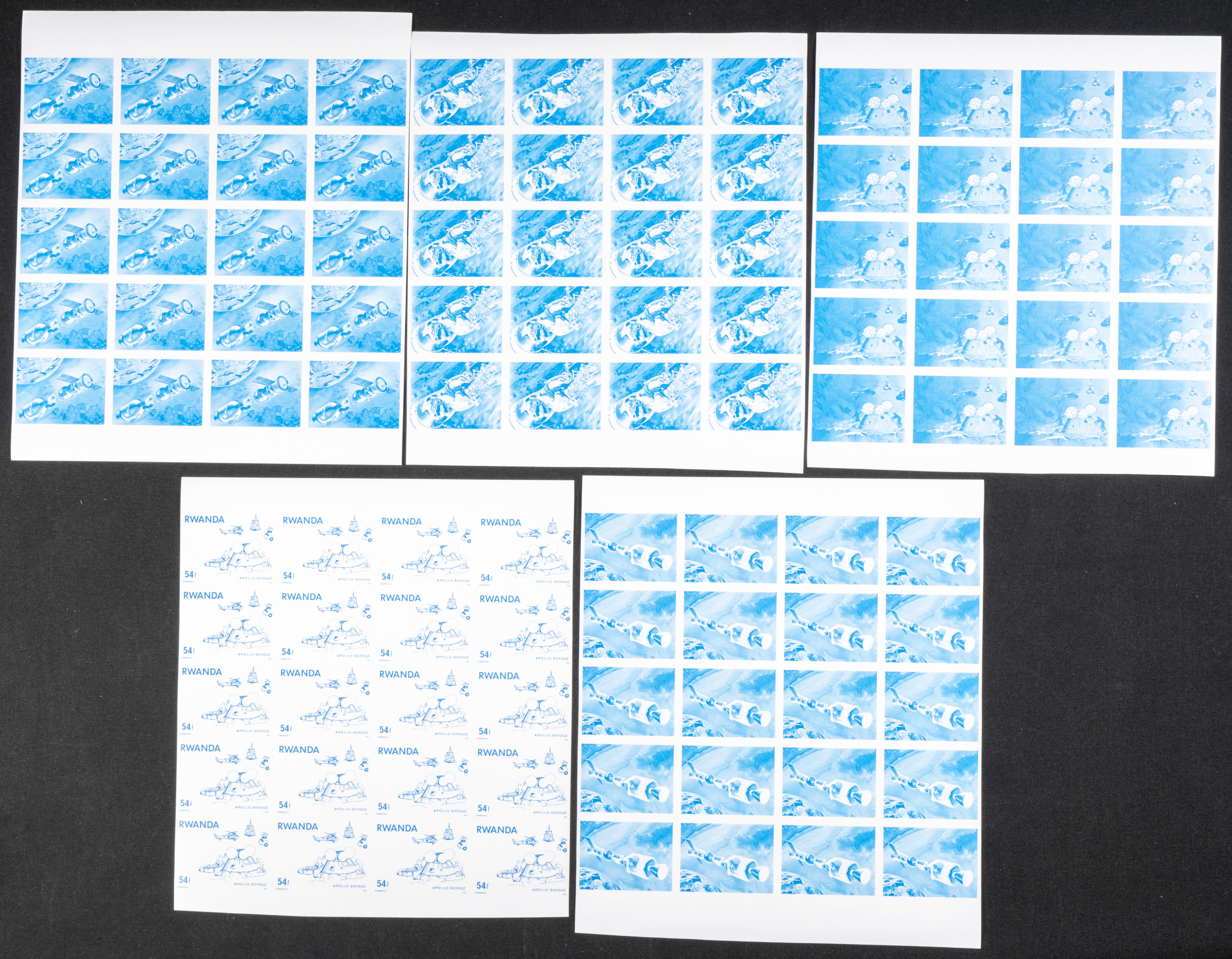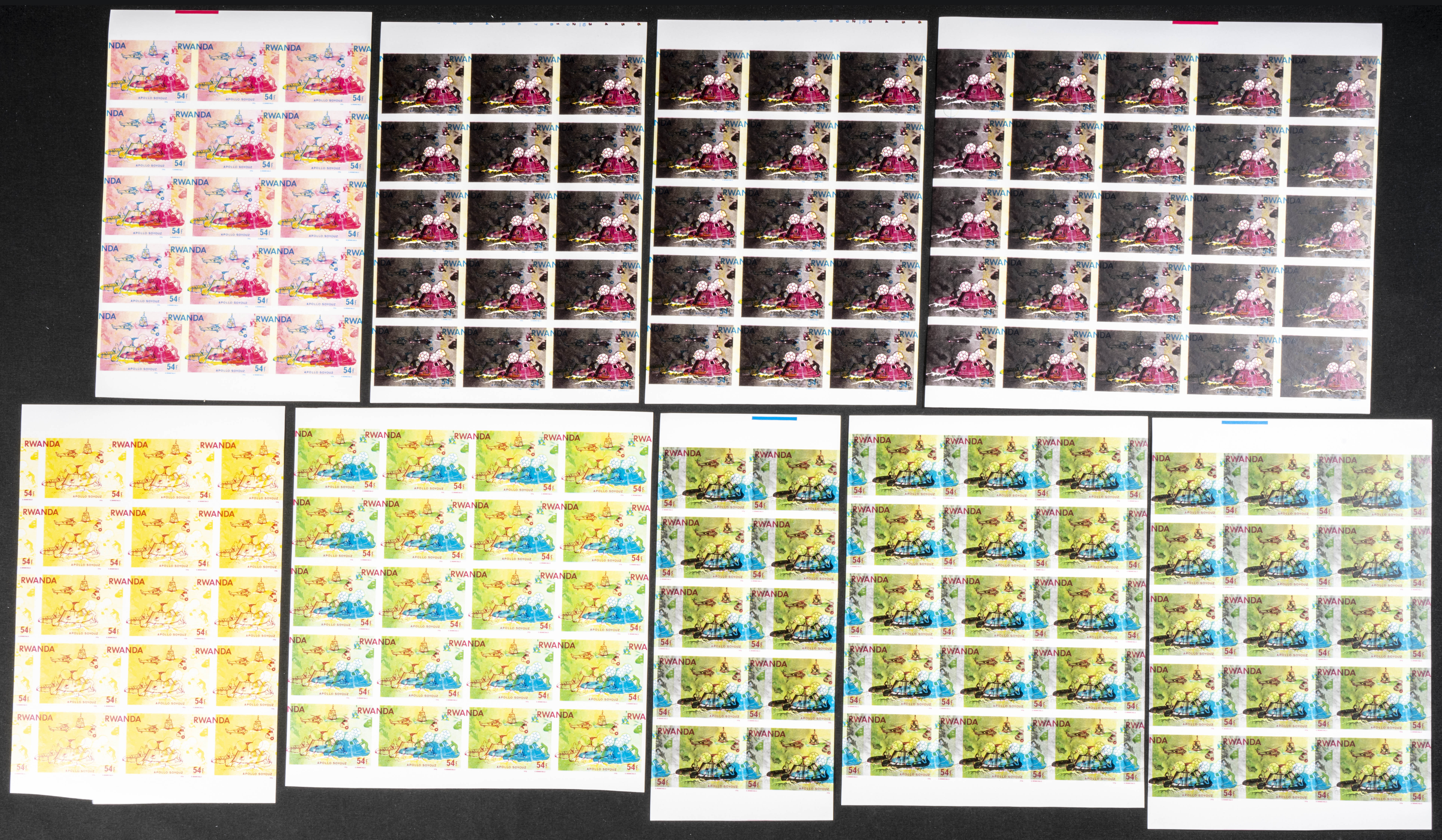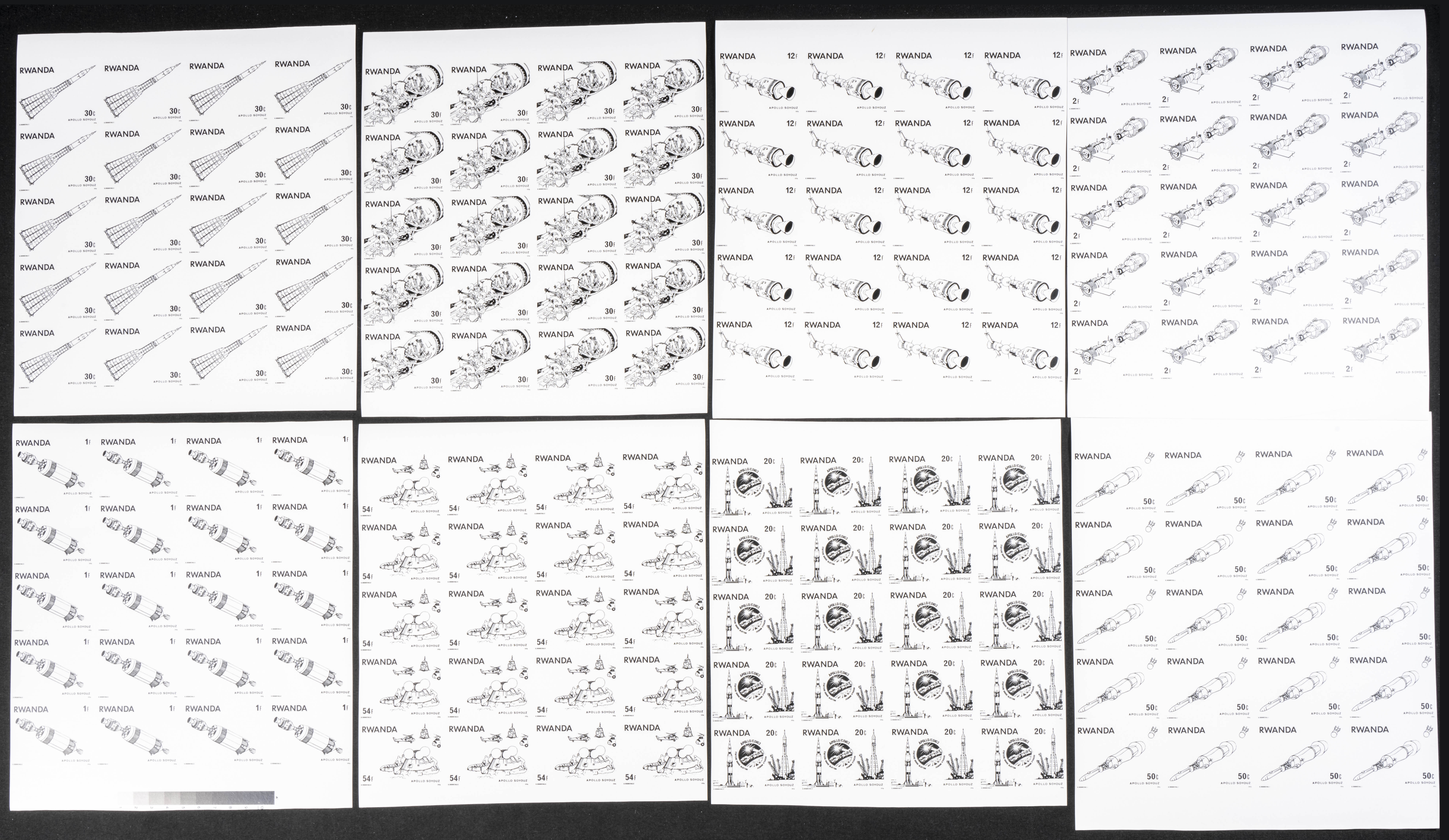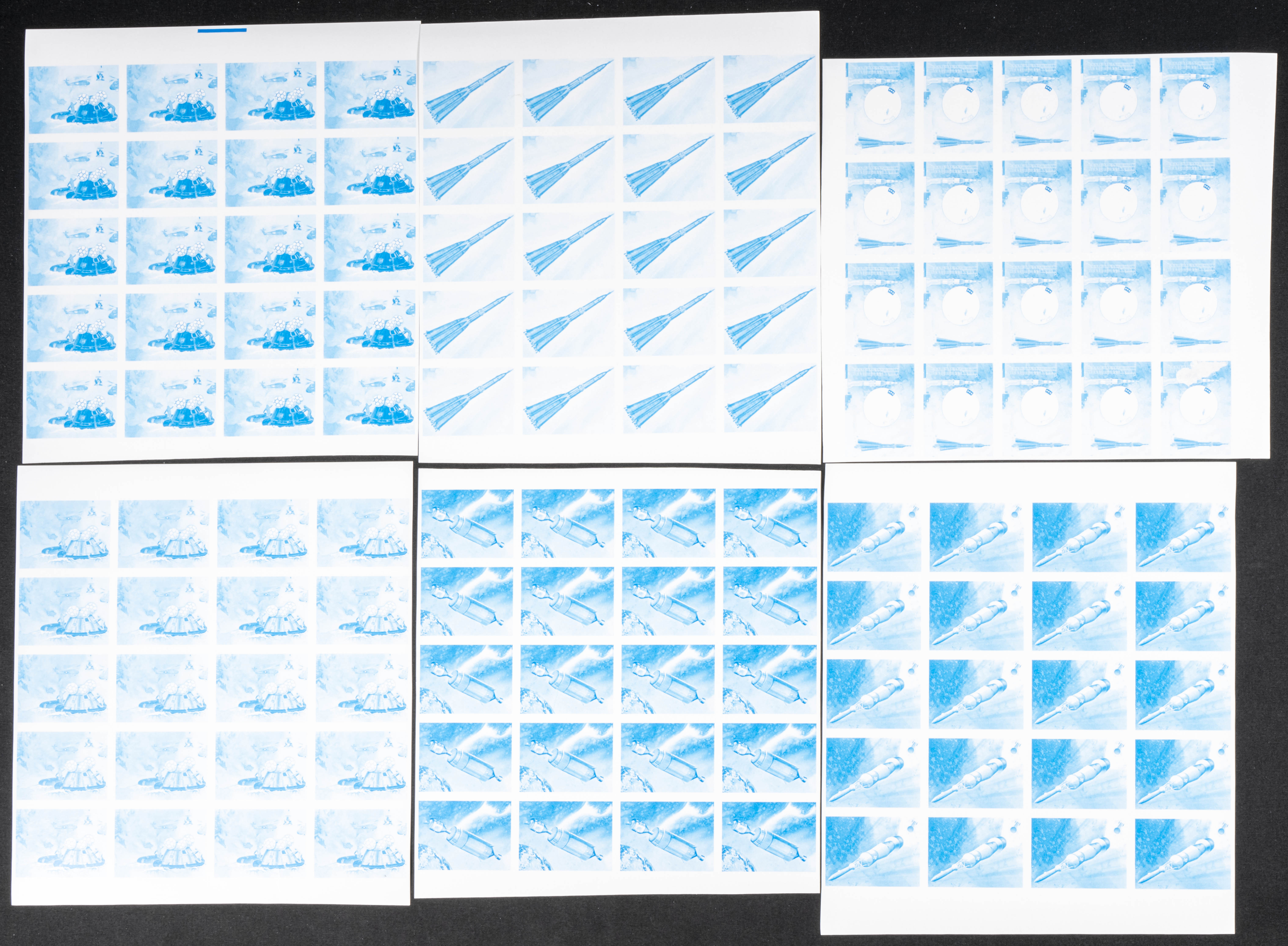 ★★Yvert 745/52. 1976. Apollo-Soyuz. Group of progressive plate proofs of the set. TO EXAM.