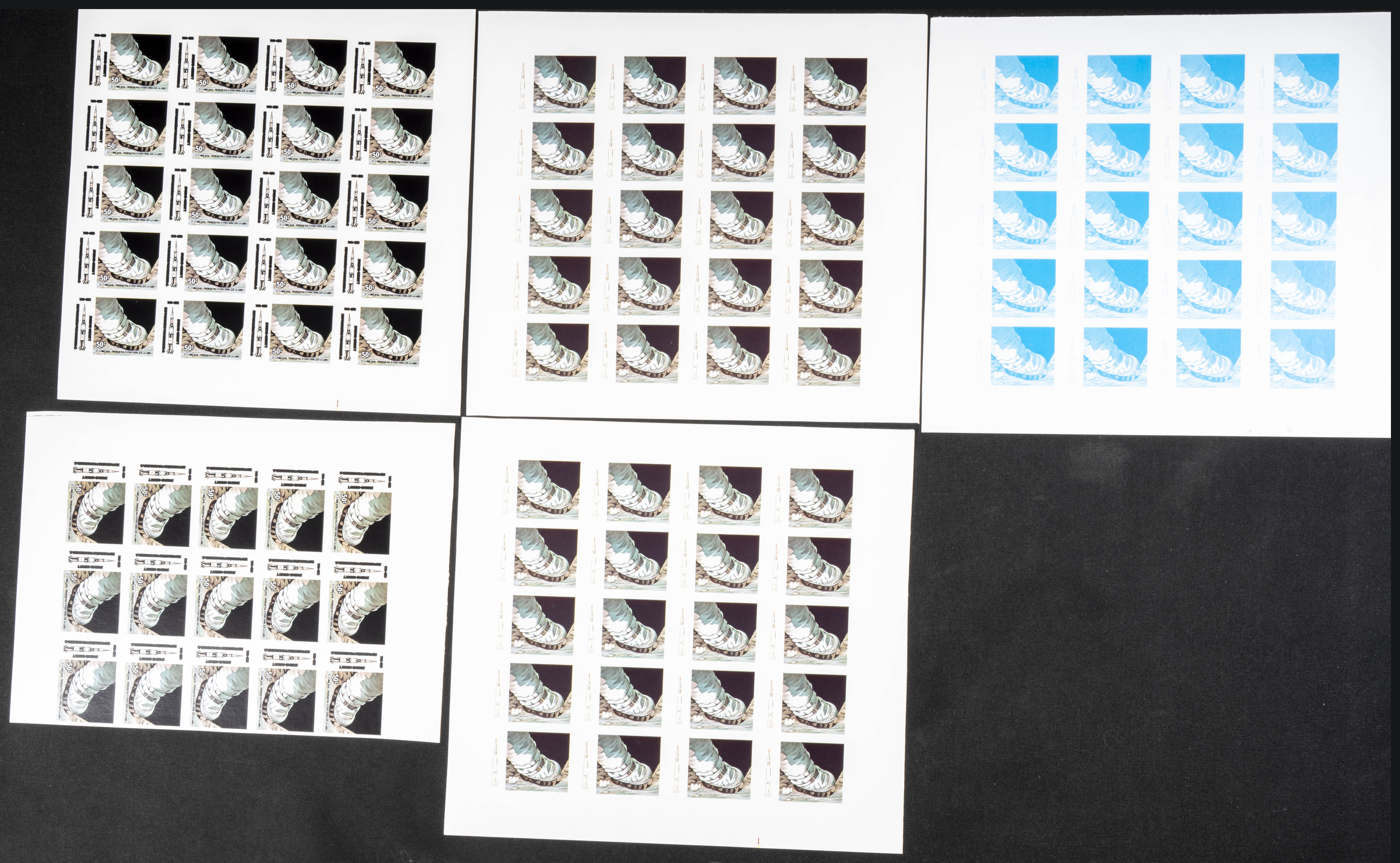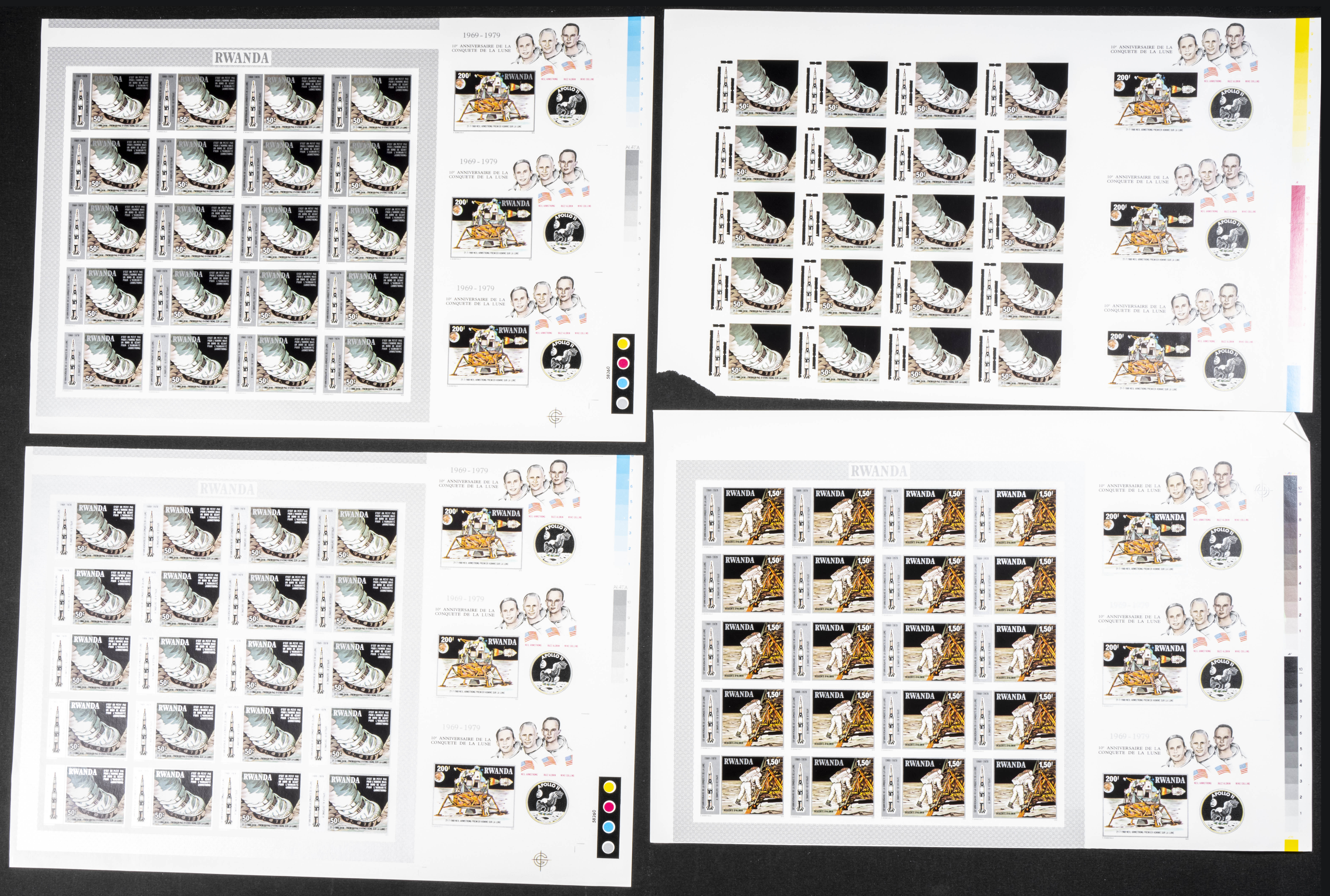 ★★Yvert 919/25, B85. 1980. Moonlanding. Group of progressive plate proofs of the set. TO EXAM.