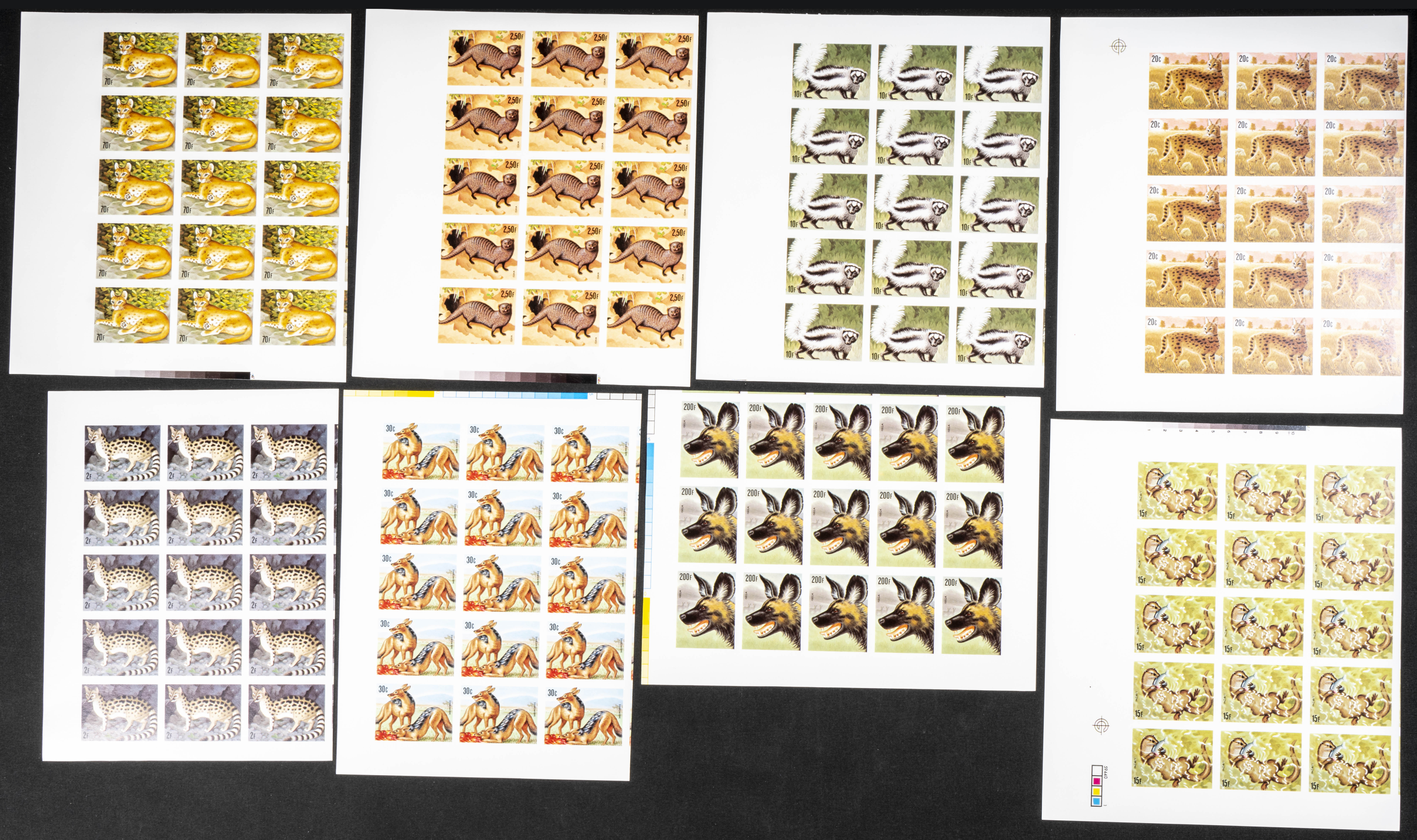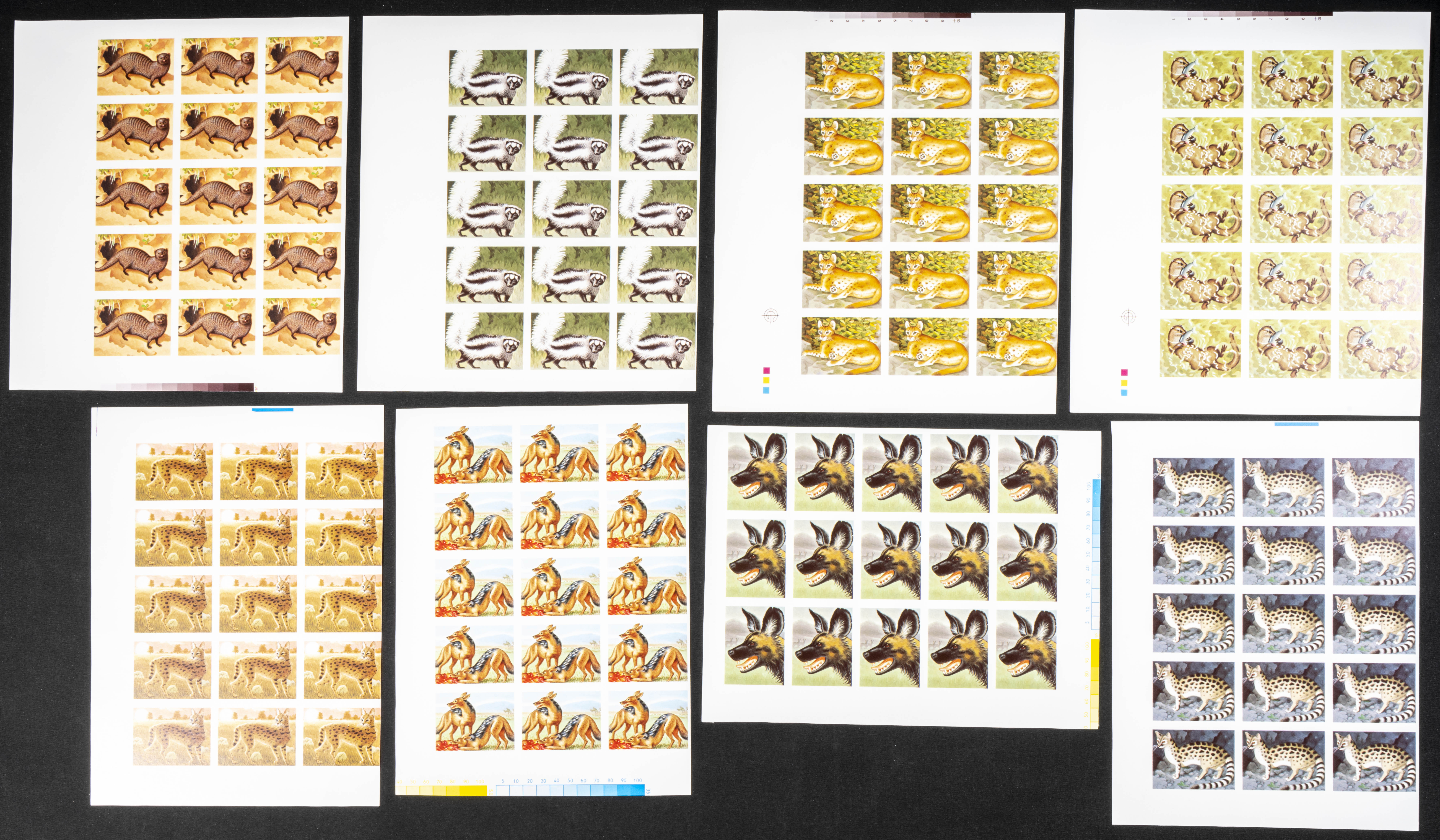 ★★Yvert 1000/07. 1981. Carnivorous Animals. Group of progressive plate proofs of the set. TO EXAM.