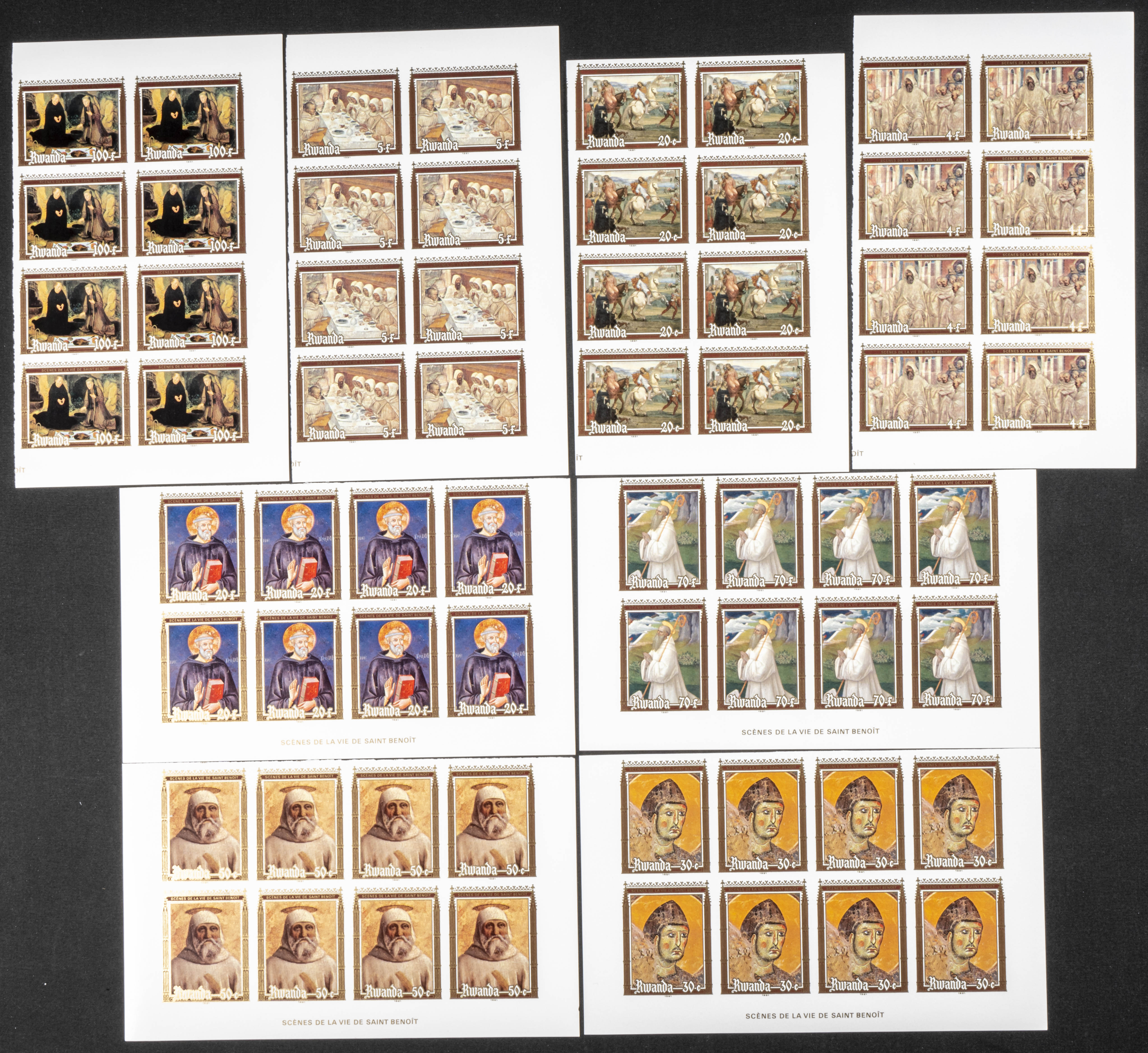 ★★Yvert 1016/23. 1981. Benedict of Nursia. Group of IMPERFORATED sets. TO EXAM.
