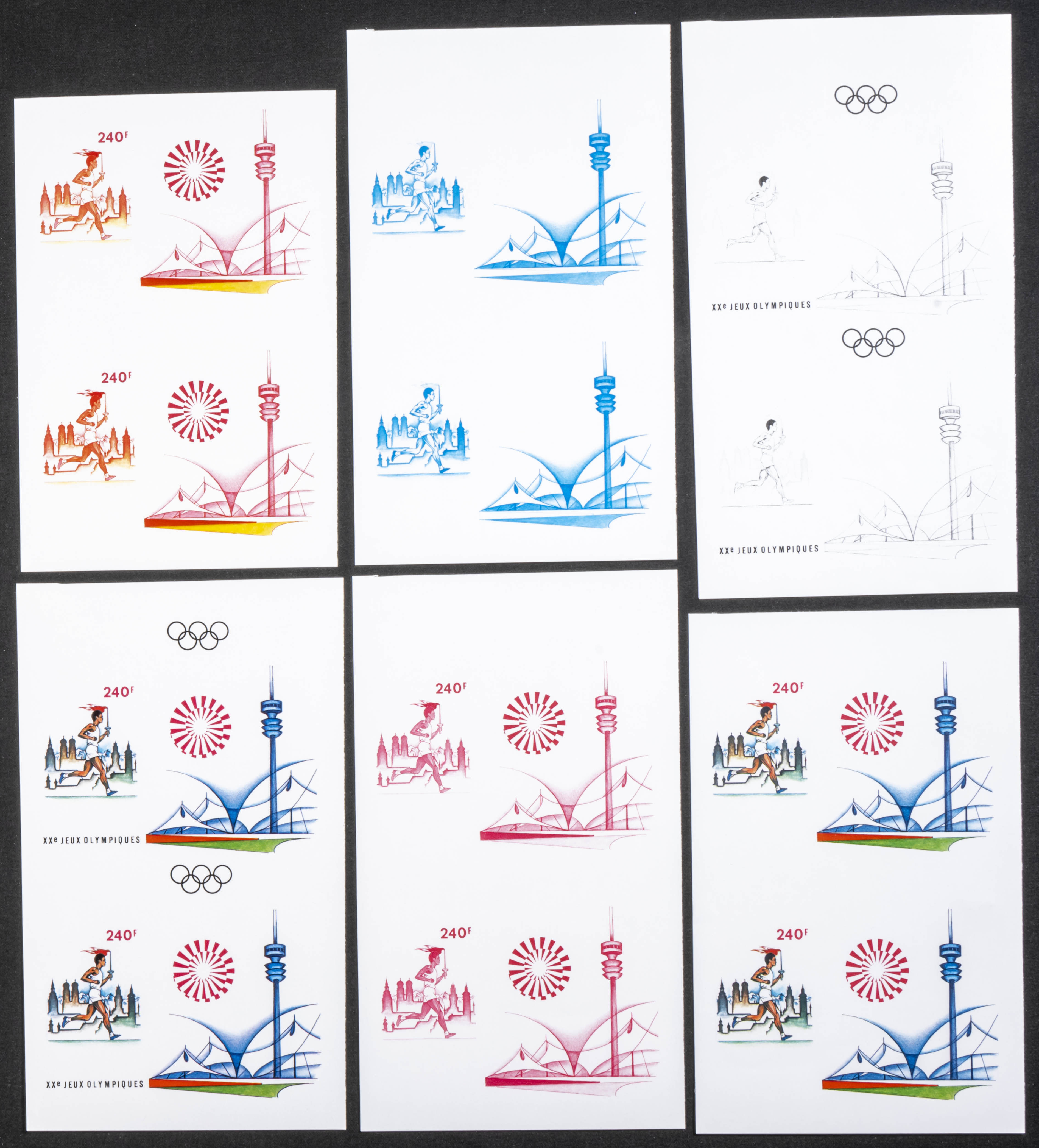 ★★Yvert B10. 1972. Olympic Games Munich. Group of progressive plate proofs of the set. TO EXAM.