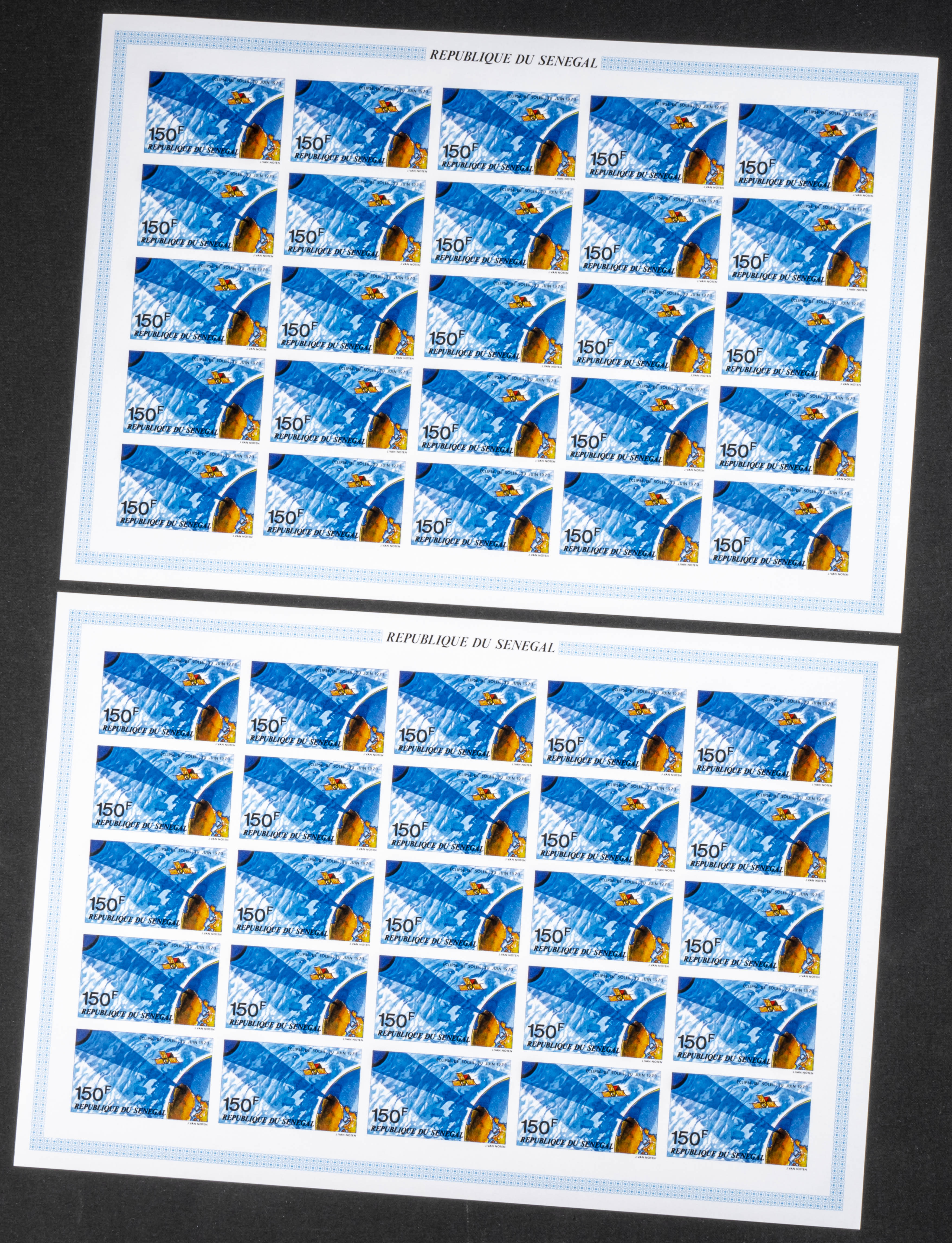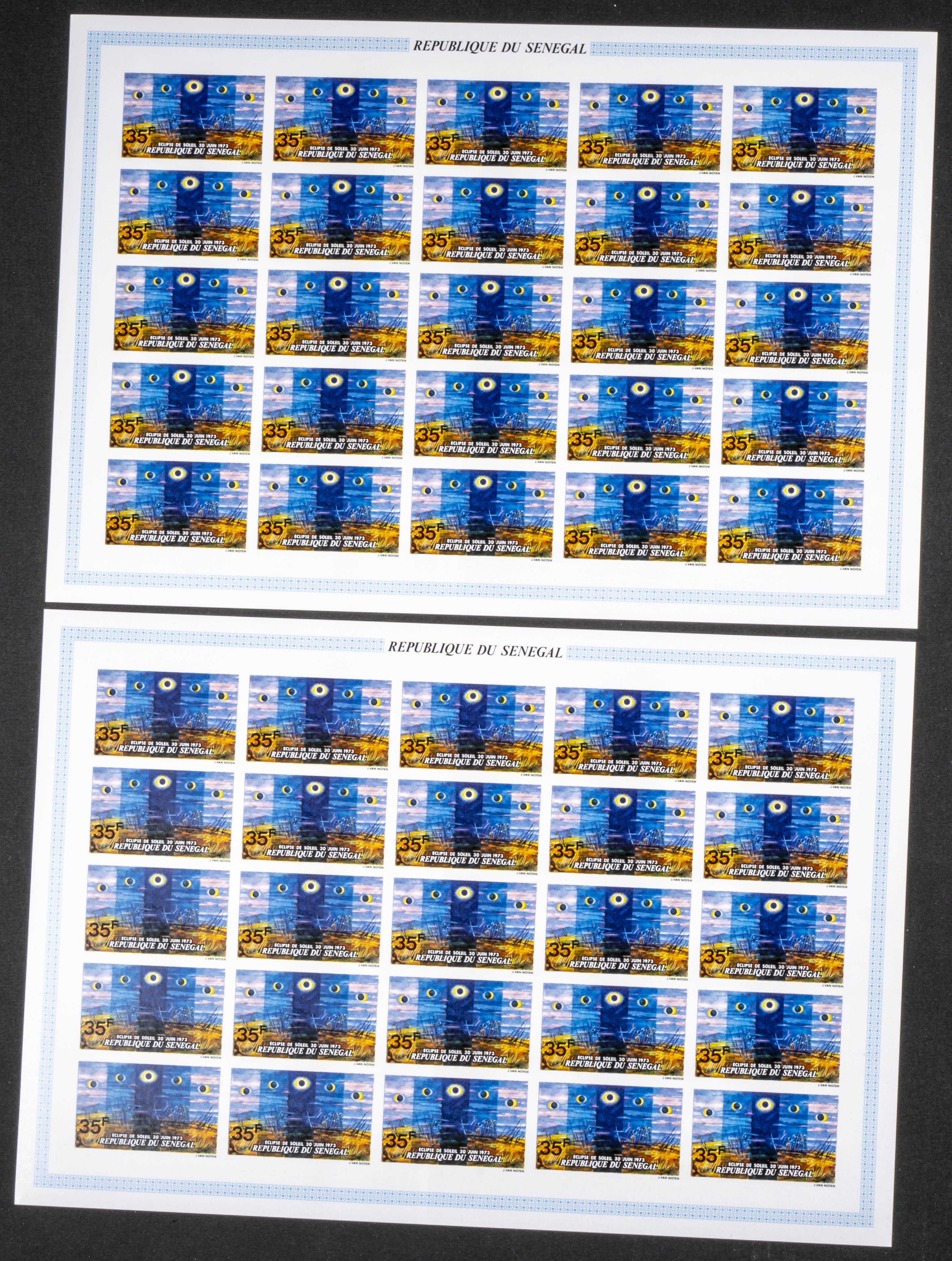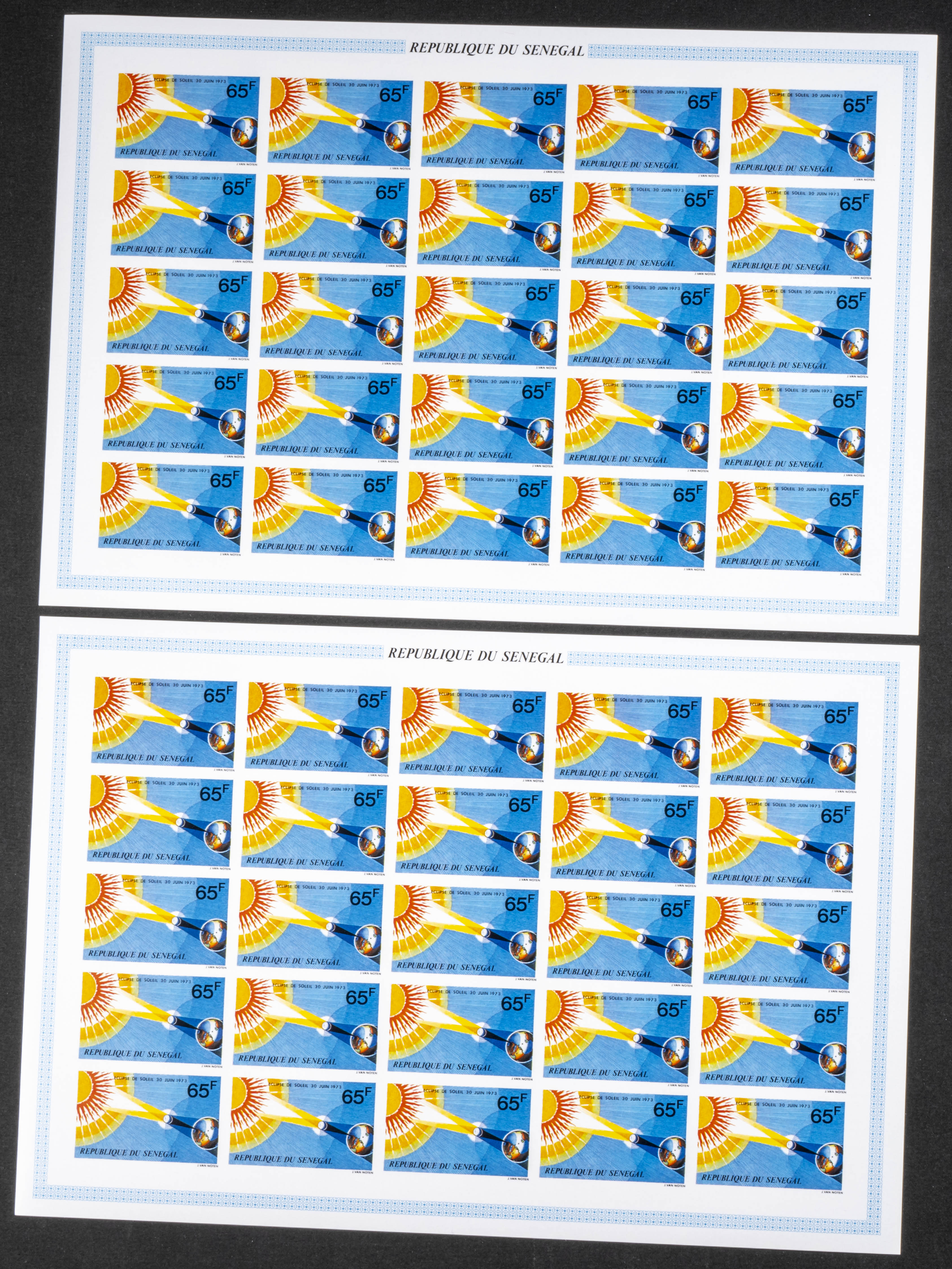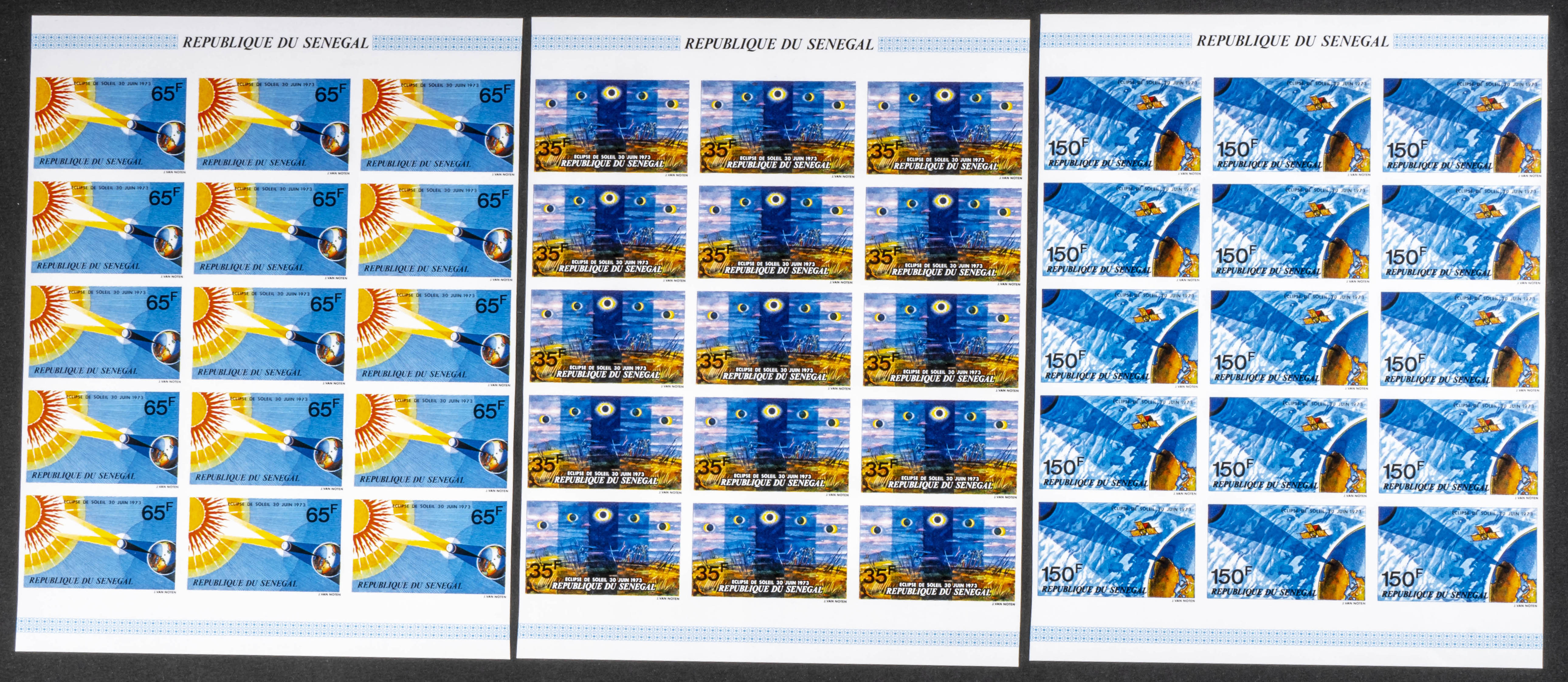 ★★Yvert 389/91. 1973. Solar eclipse. Group of IMPERFORATED sets. TO EXAM.
