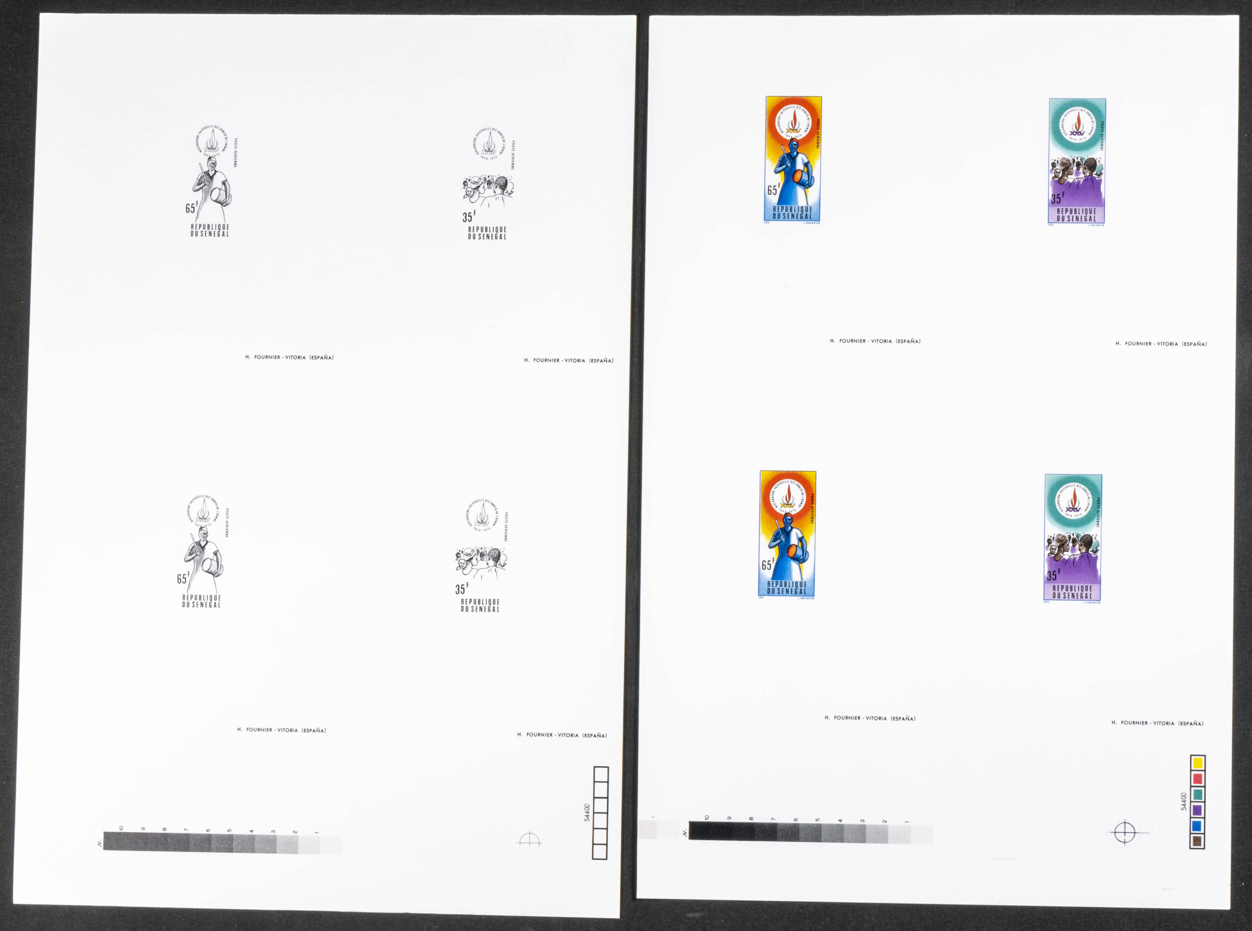 ★★Yvert A142/43. 1973. Human rights. Group of progressive plate proofs of the set, of mini sheets. TO EXAM.