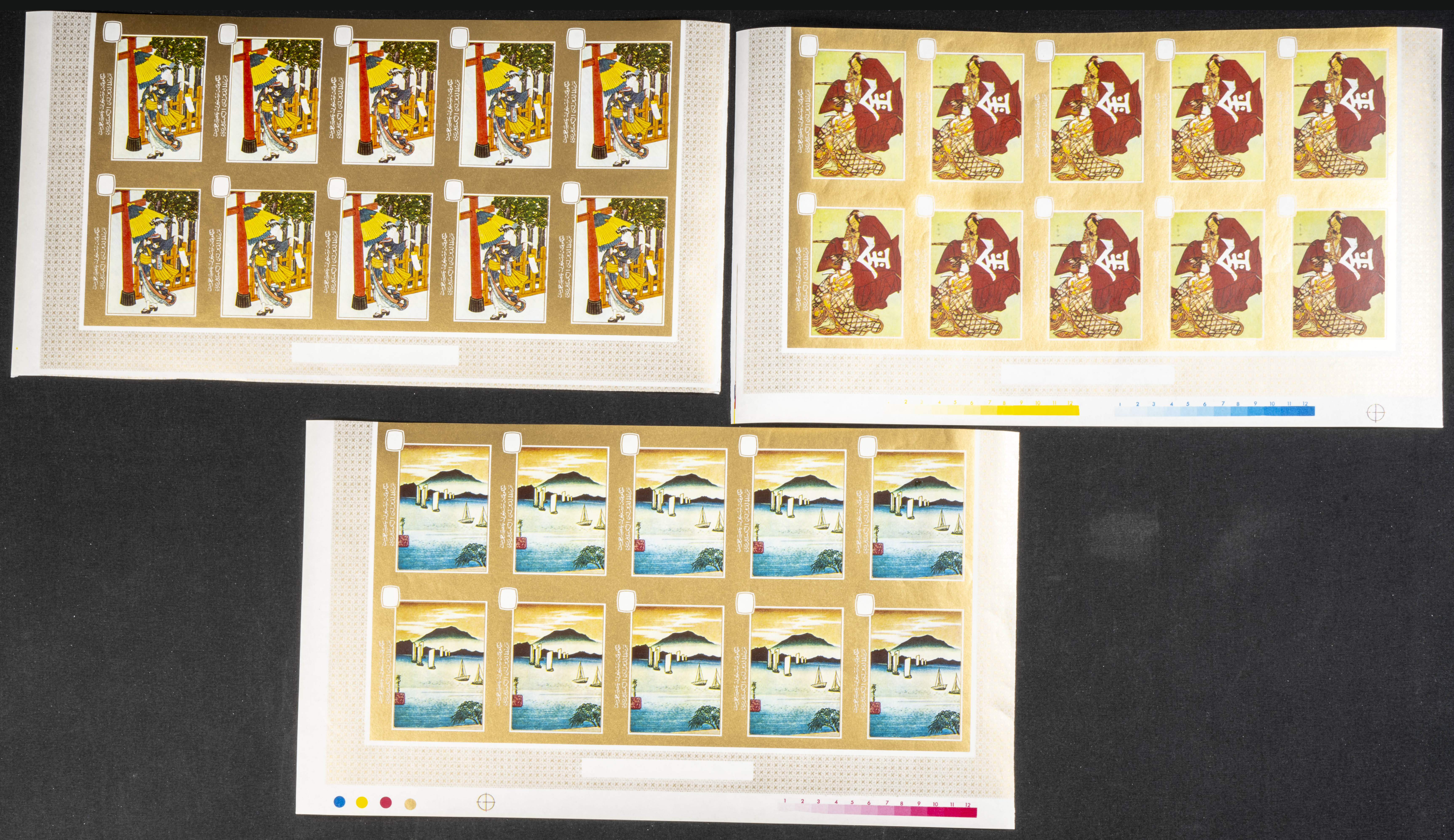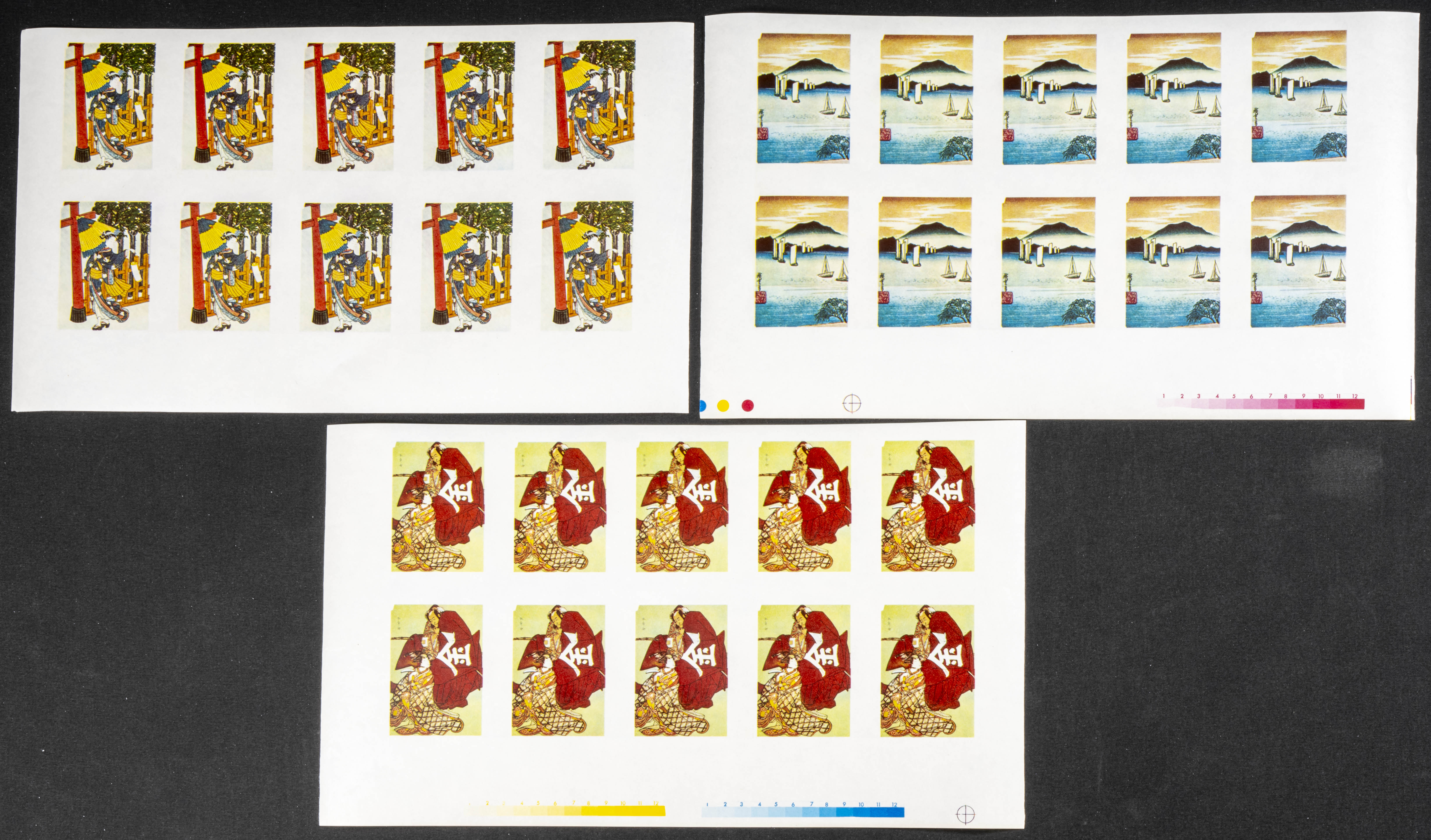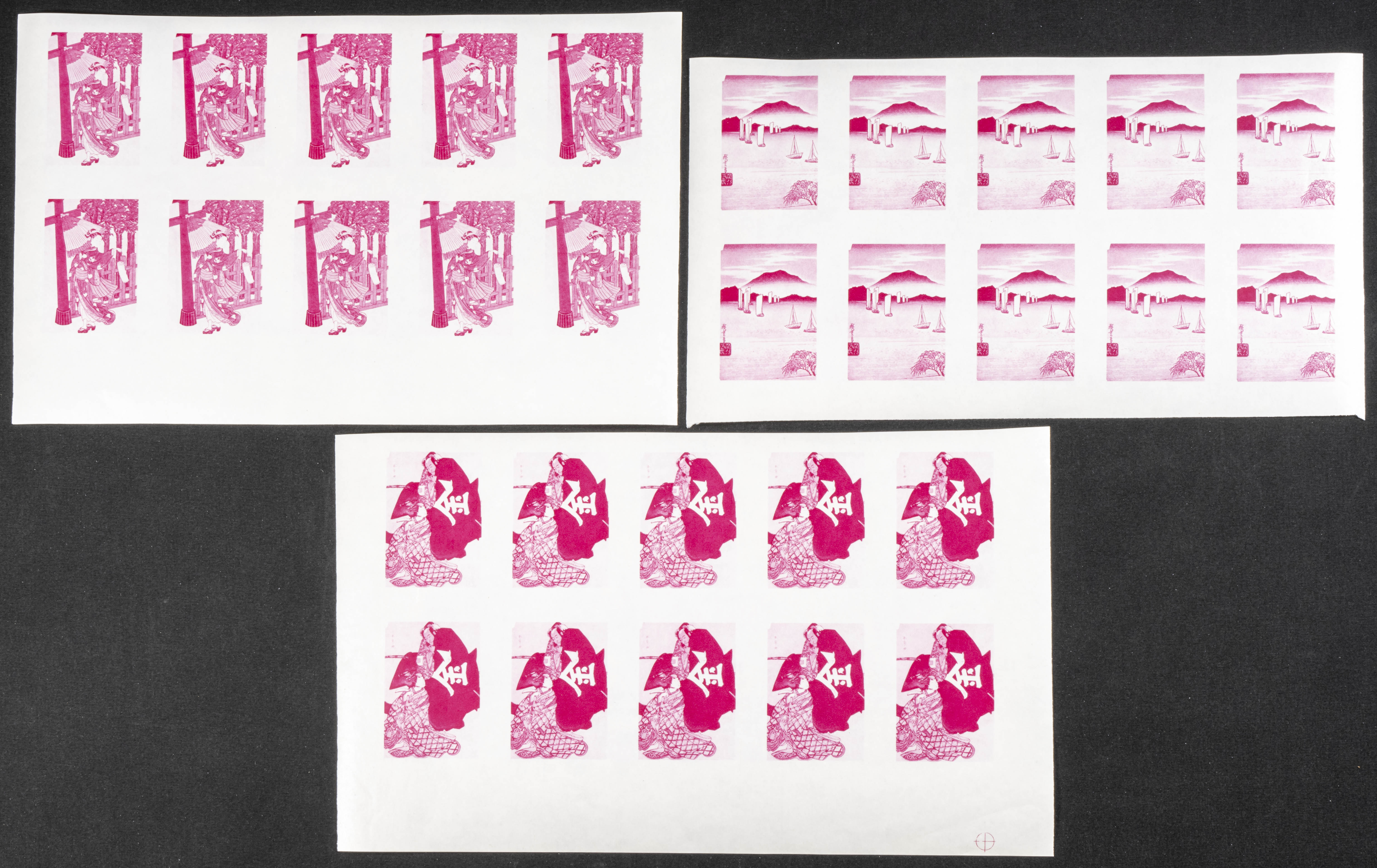 ★★1967. Japanese paintings. Group of progressive plate proofs of the set. (Michel: 157/59). TO EXAM.