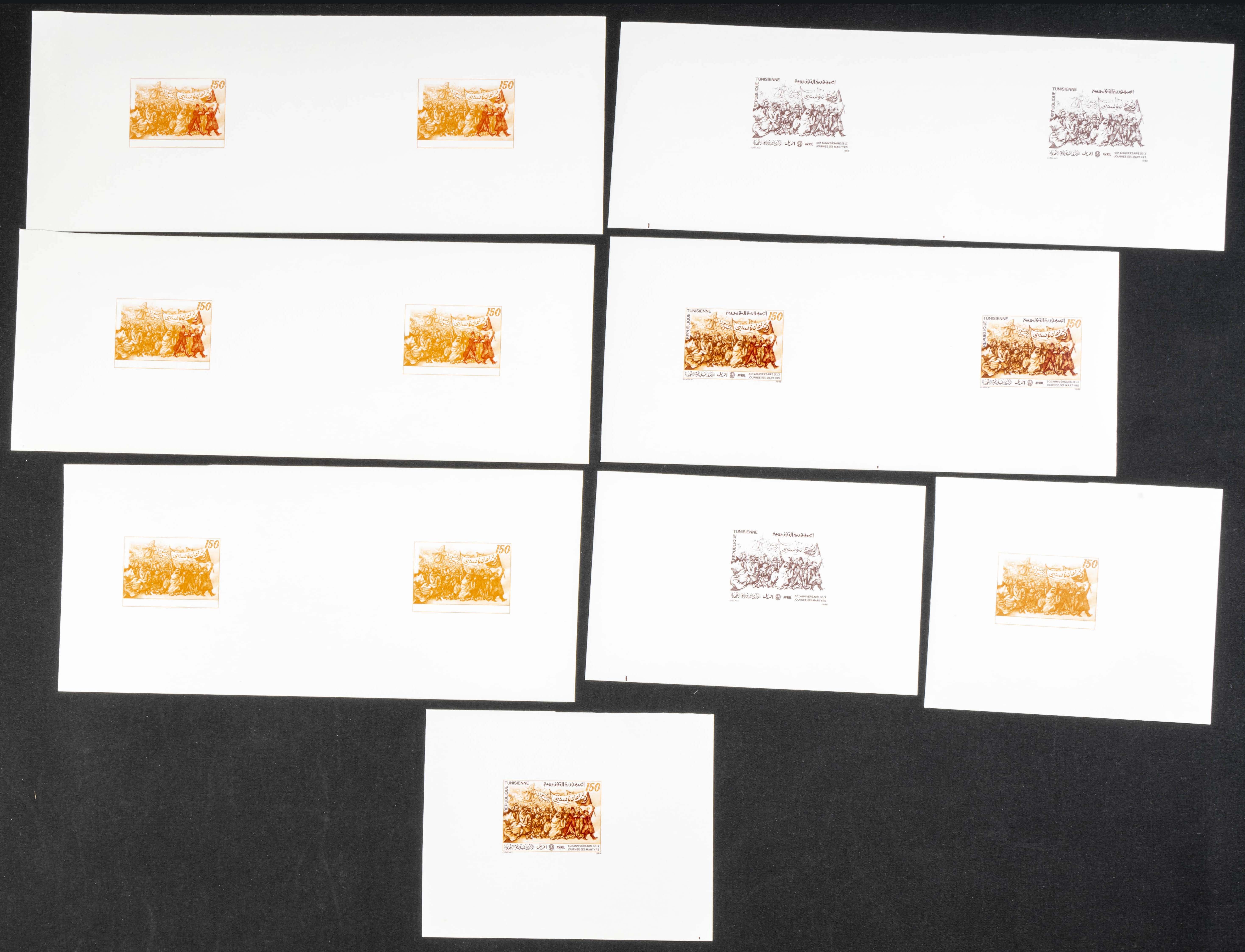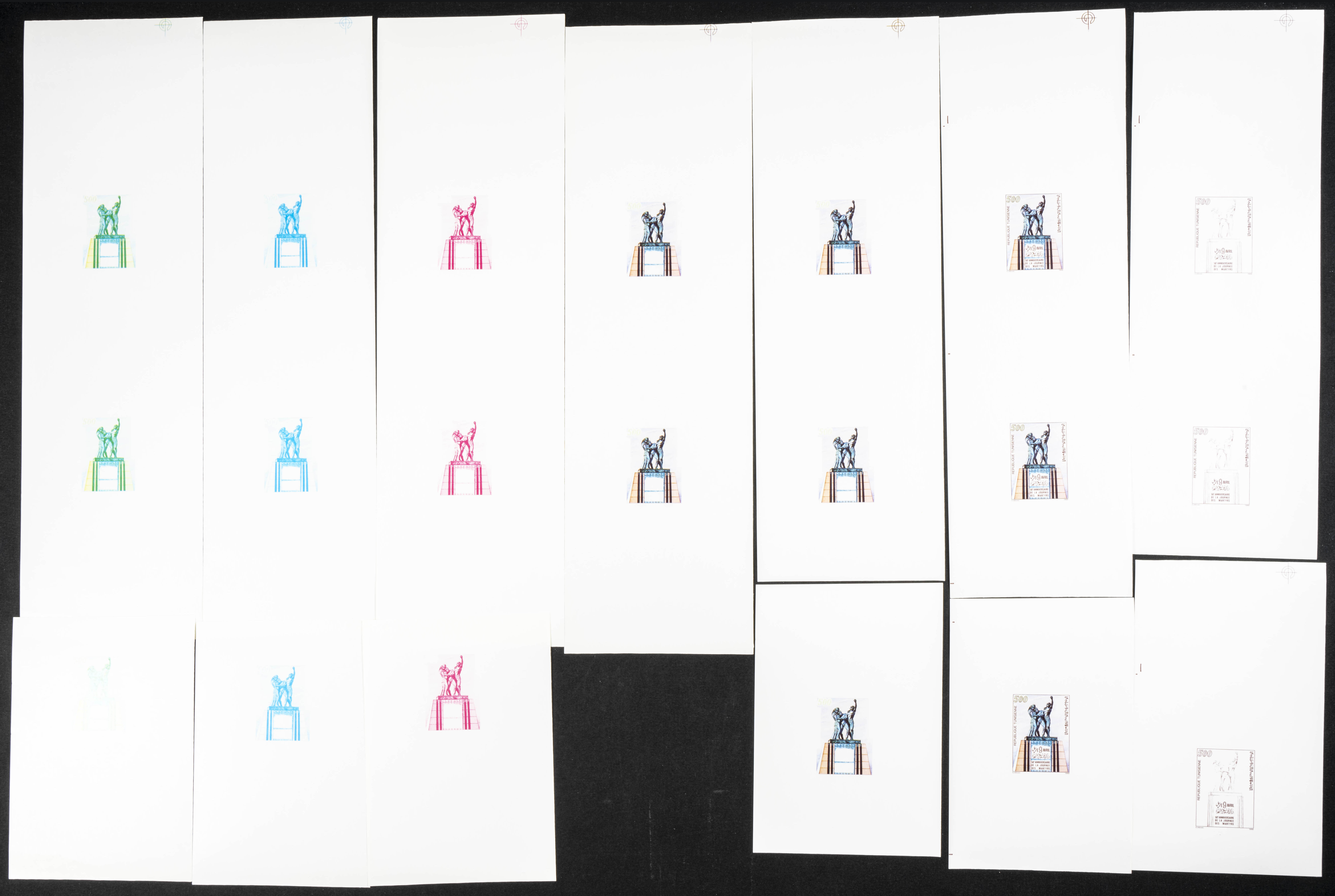 ★★Yvert 1107/08. 1988. 50th Anniversary of Martyrs Day. Group of progressive plate proofs of the set. TO EXAM.