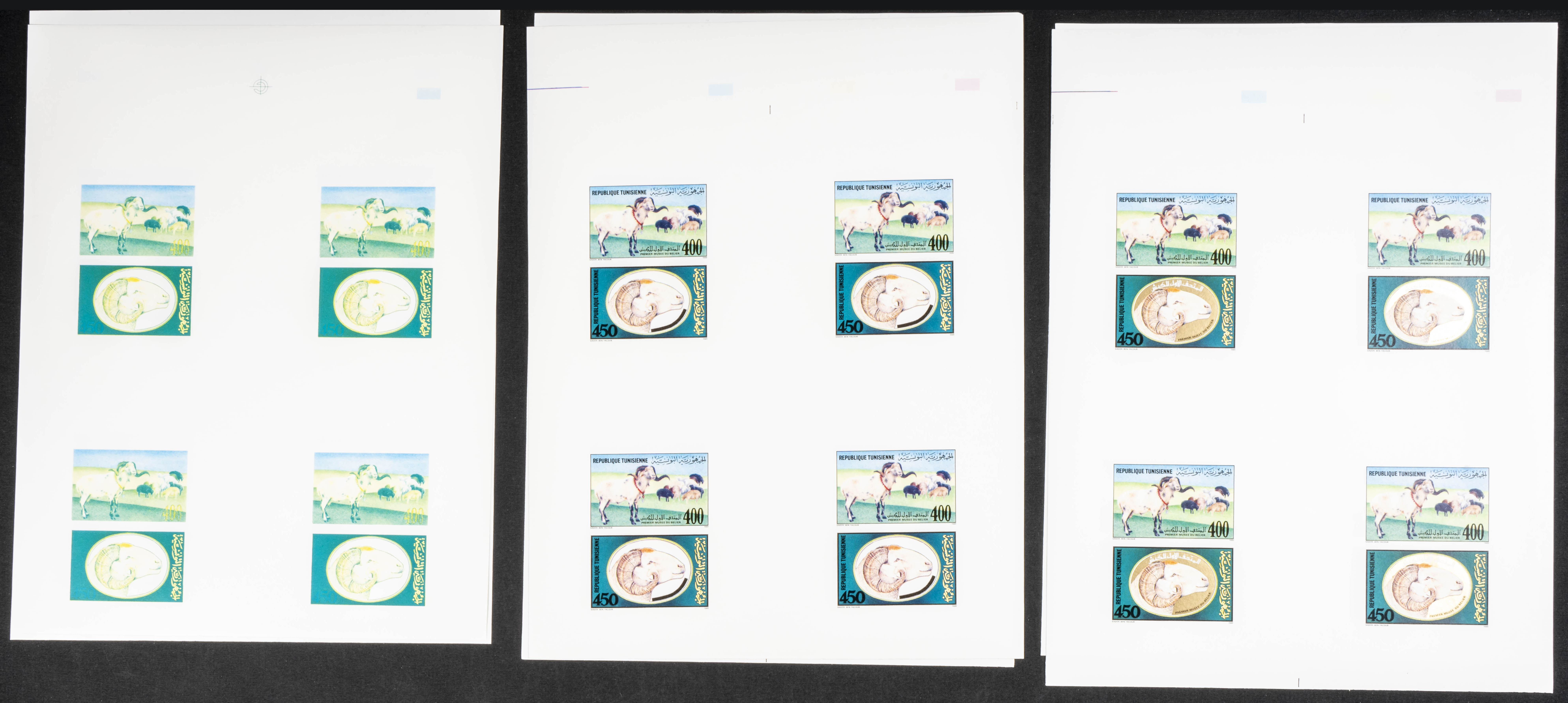 ★★Yvert B24. 1990. Museum of Sheep Farming. Group of progressive plate proofs of the set. TO EXAM.