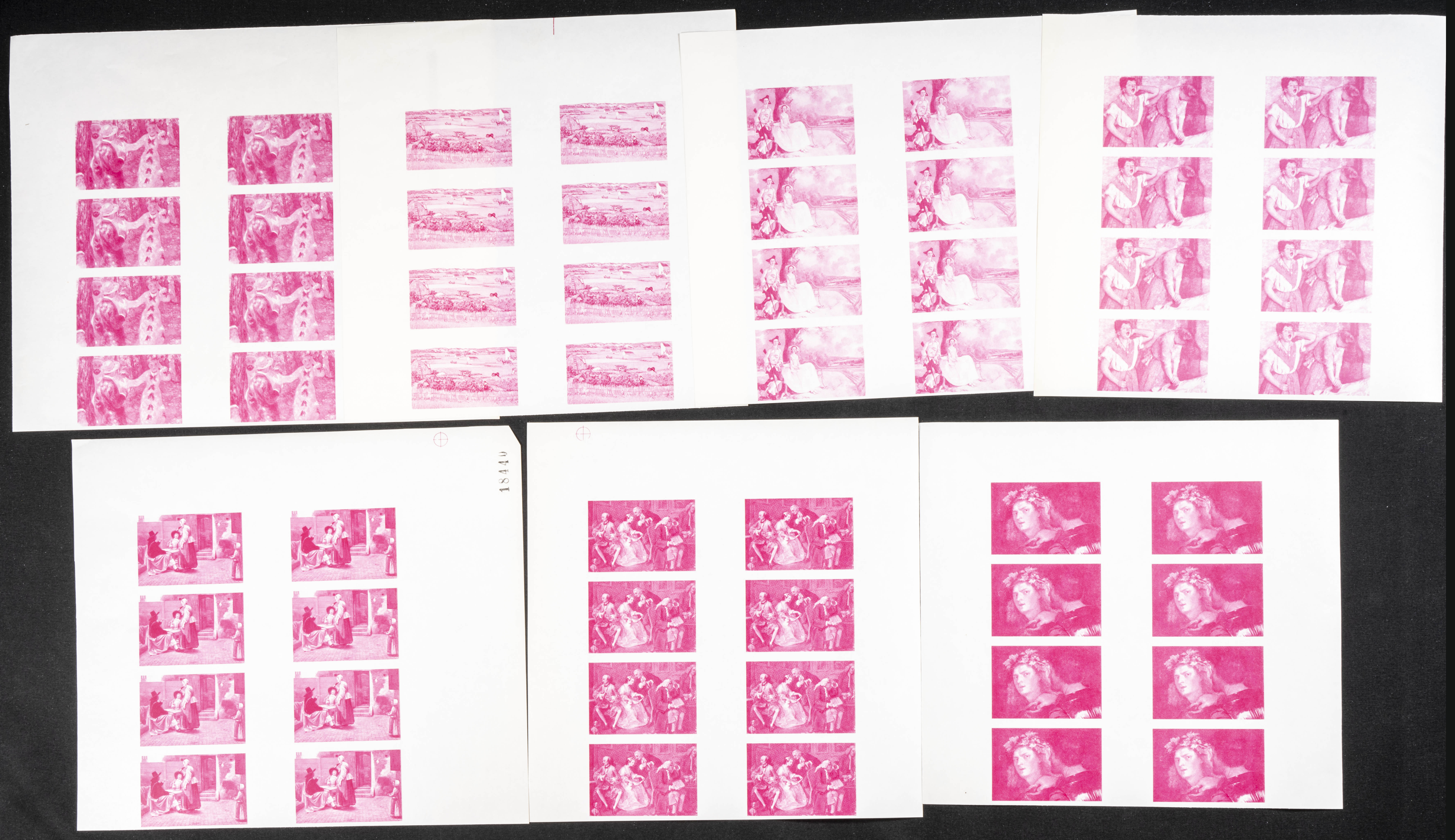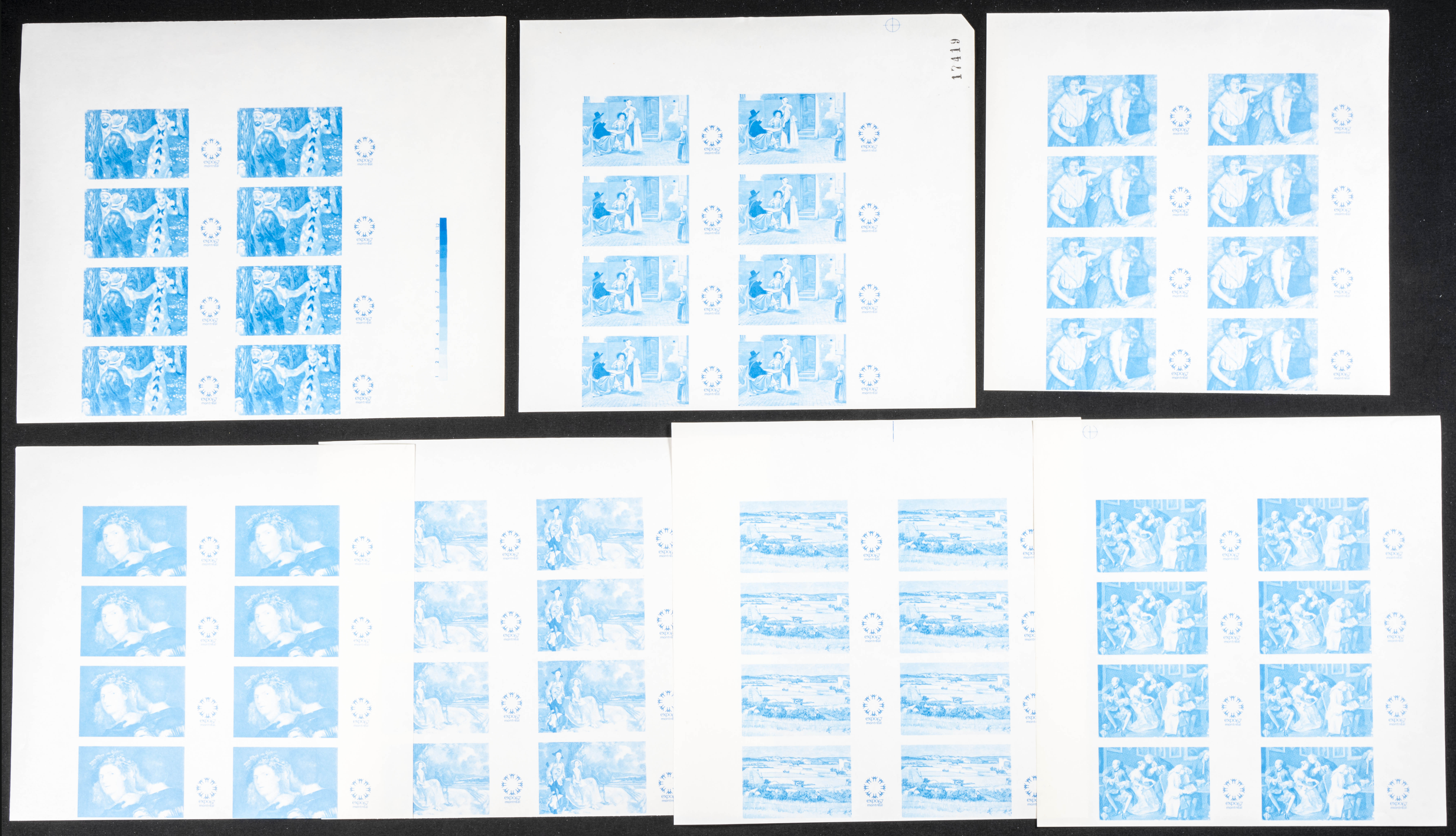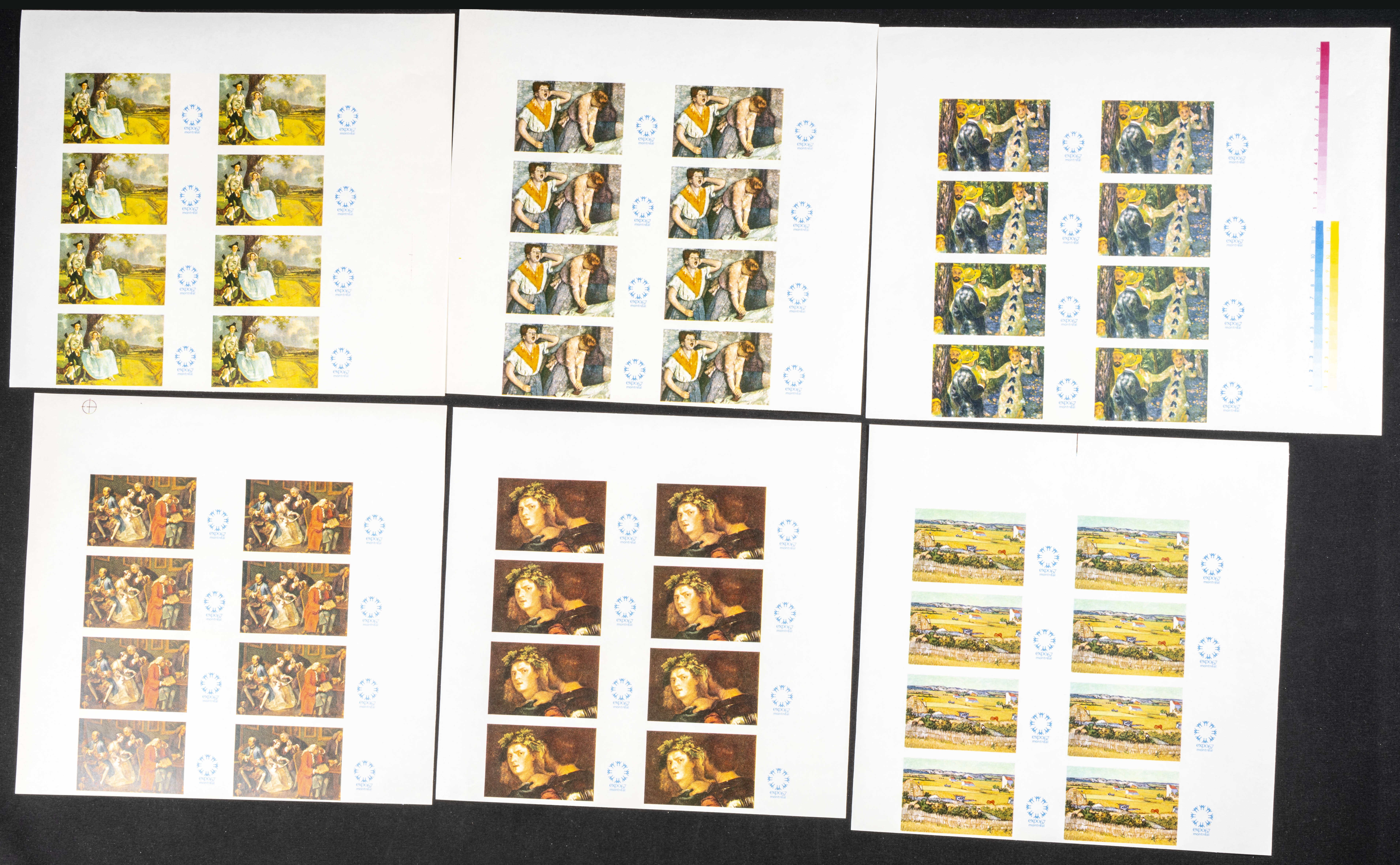 ★★1967. Paintings, expo. Group of progressive plate proofs of the set. (Michel: 218/24). TO EXAM.