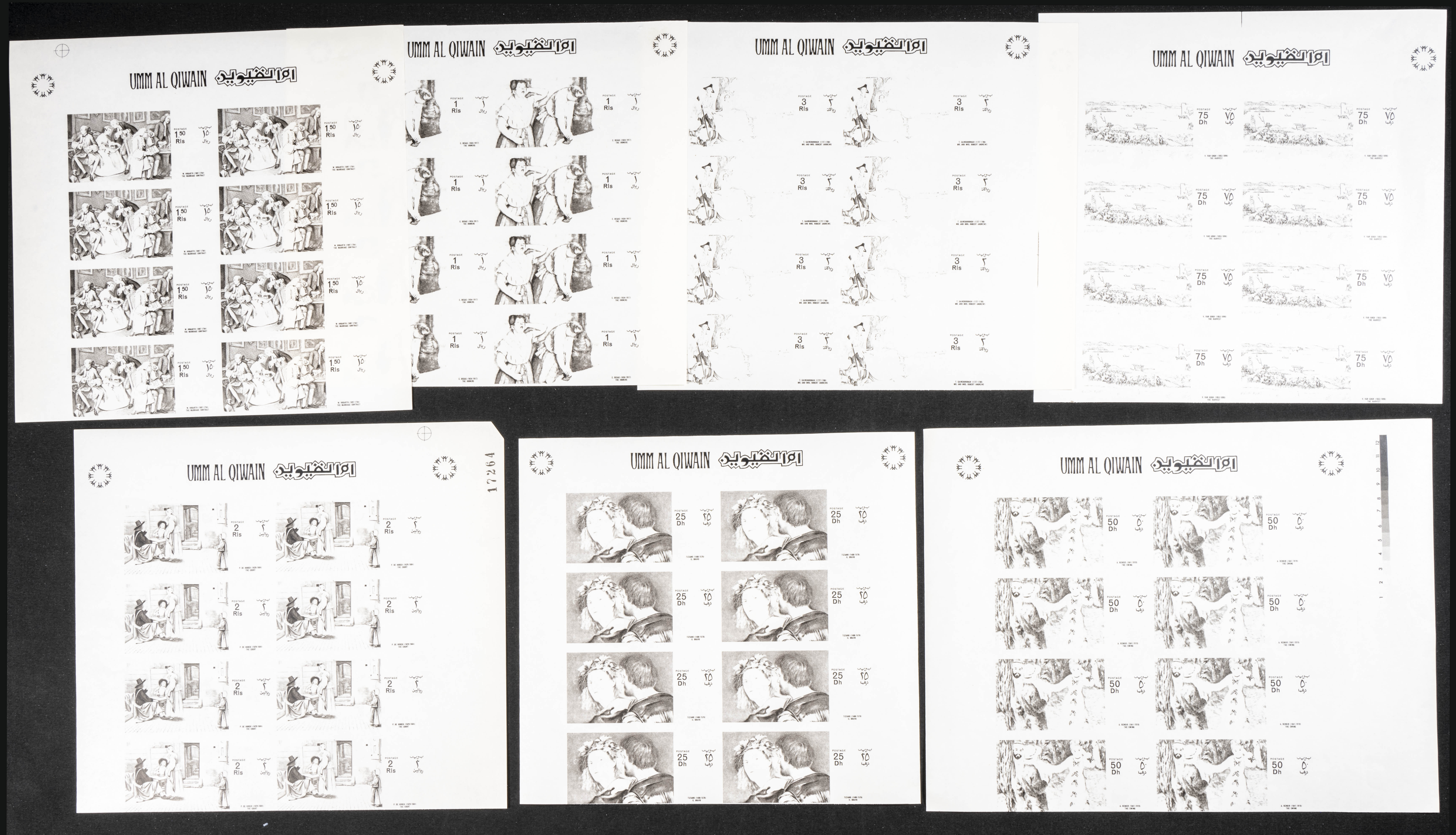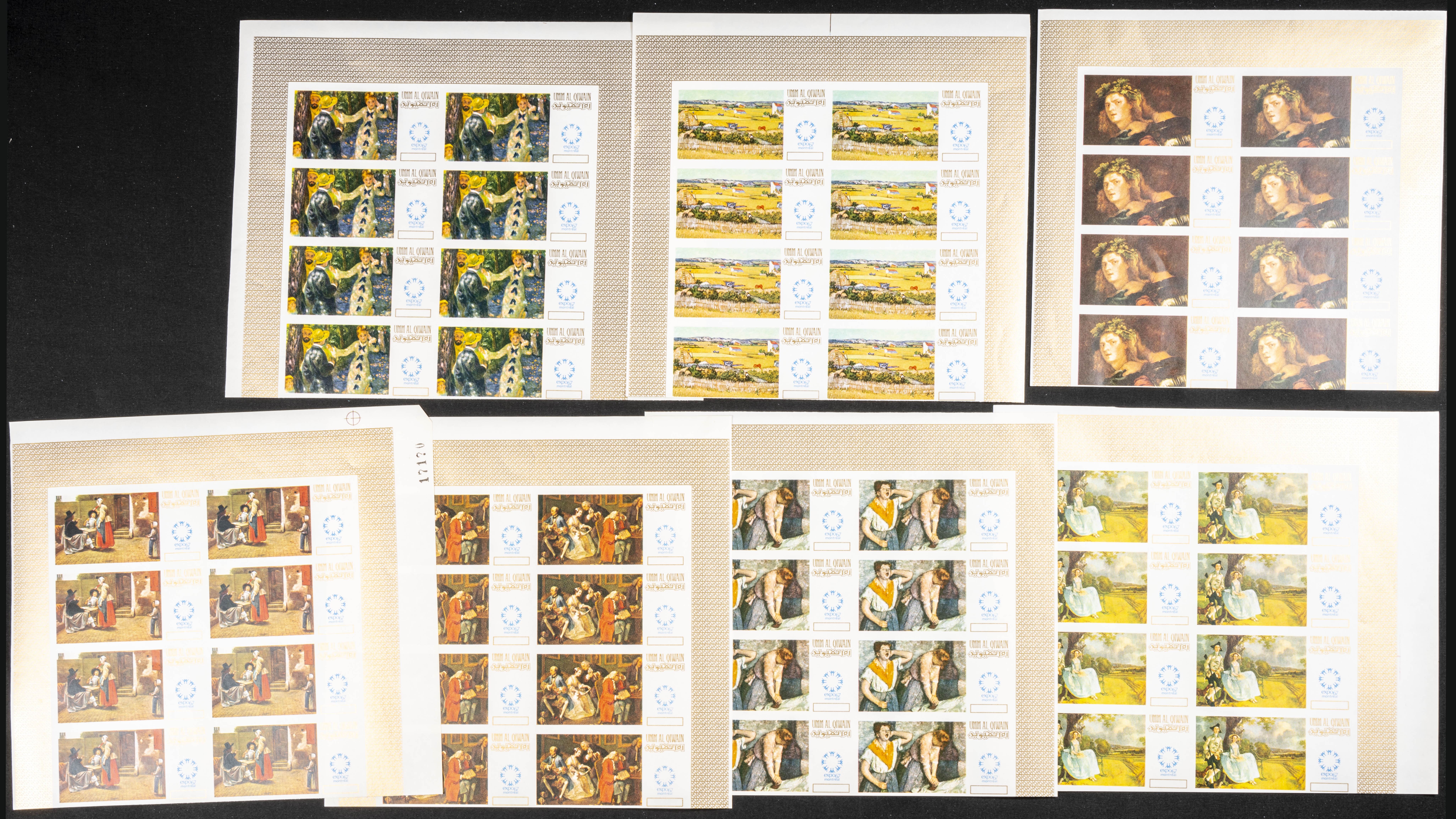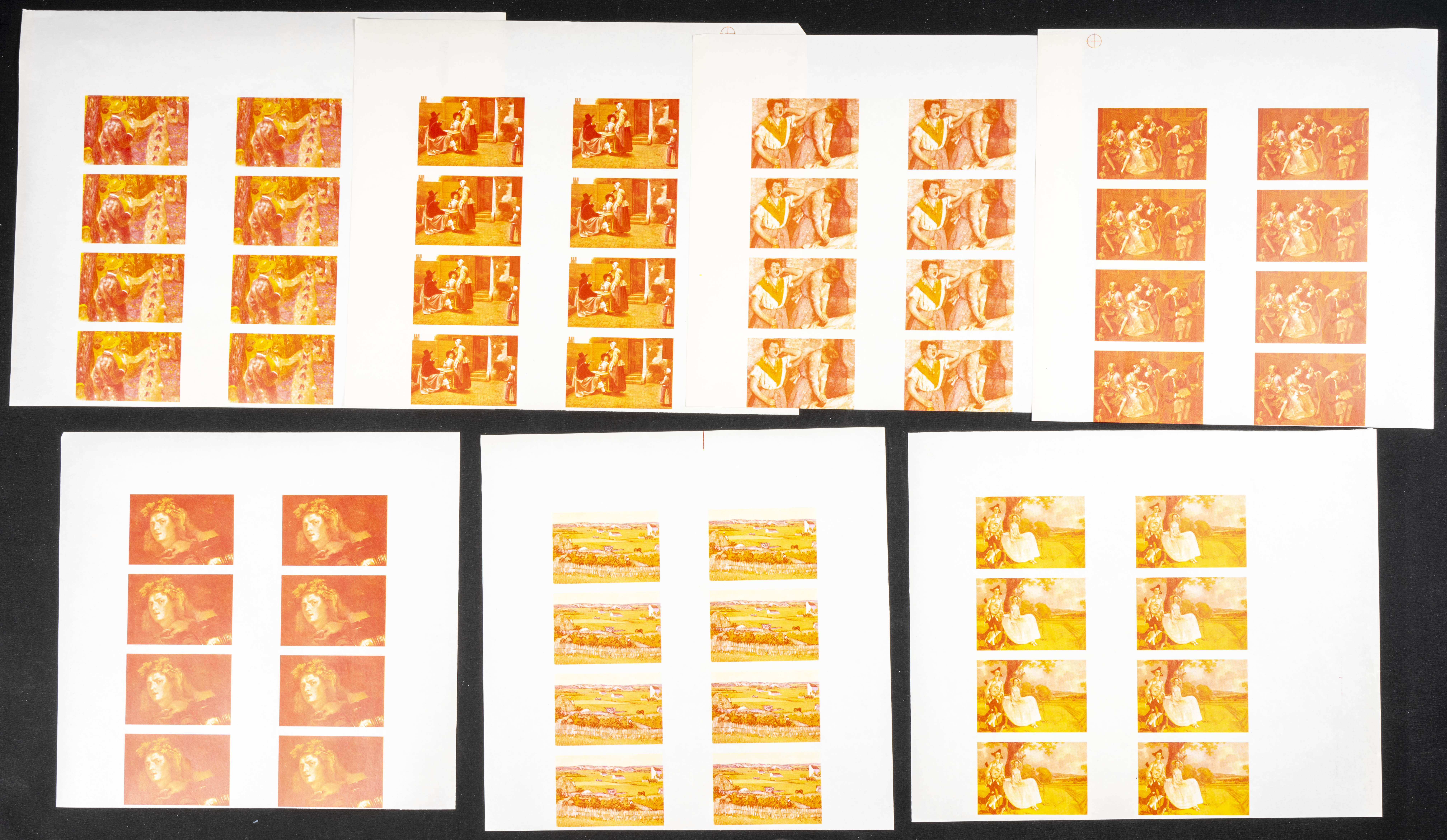 ★★1967. Paintings, expo. Group of progressive plate proofs of the set. (Michel: 218/24). TO EXAM.