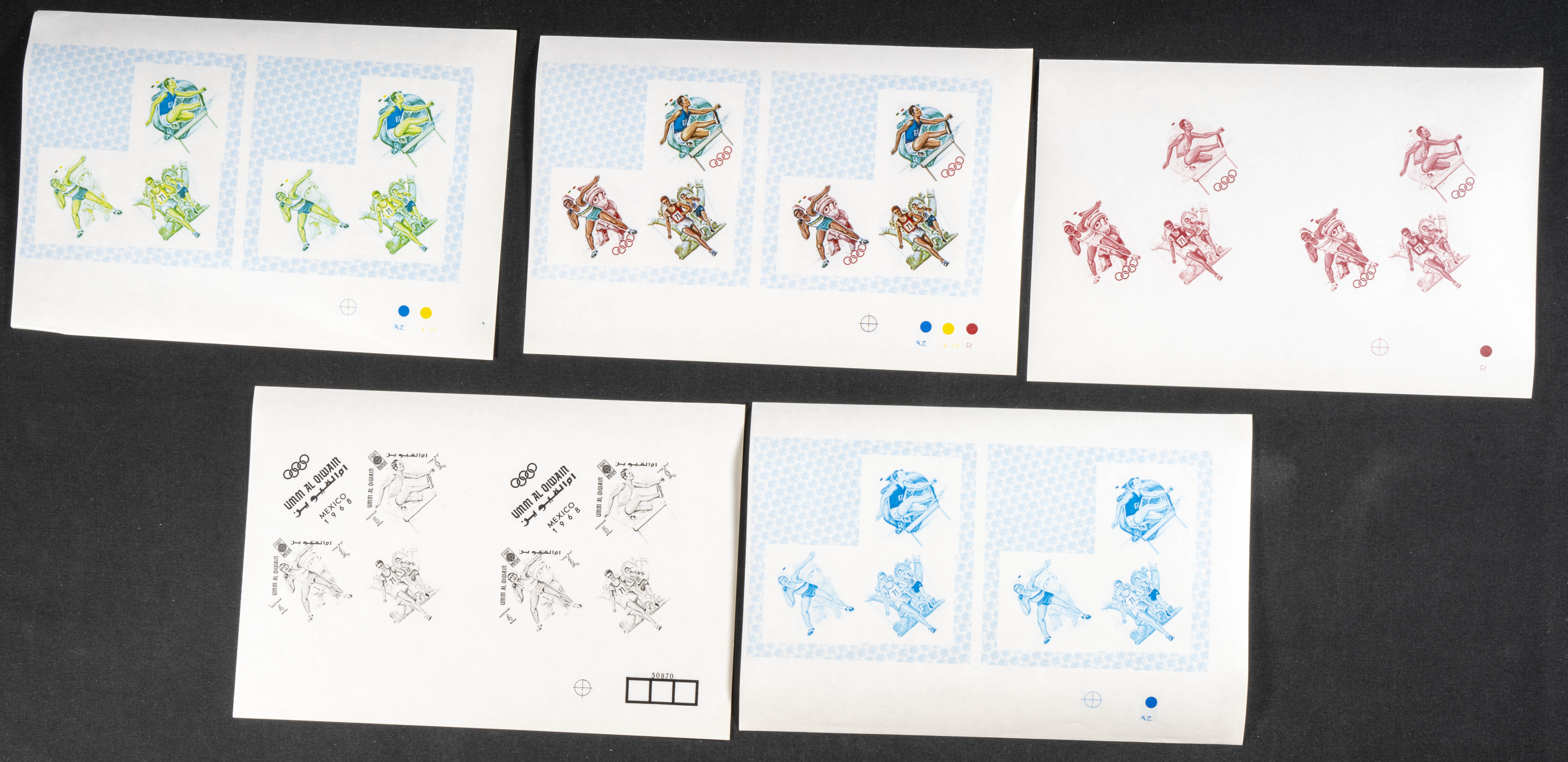 ★★1968. Olimpic games. Group of progressive plate proofs of the set. (Michel: B14). TO EXAM.